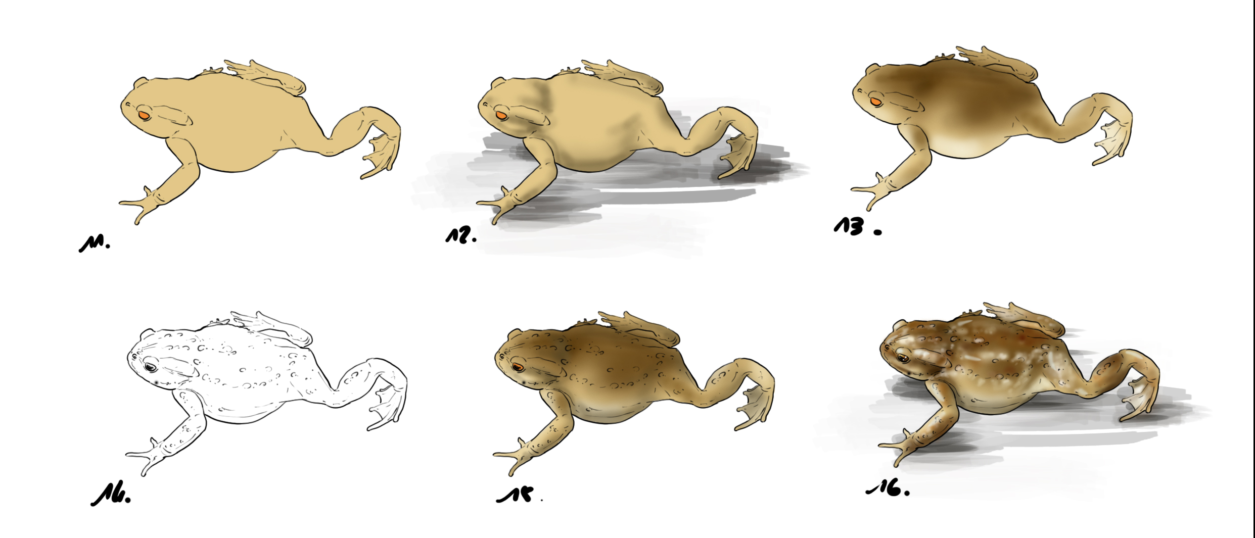 Normalement vous êtes tout à fait armés pour dessiner notre petit batracien sous toutes les coutures ! Nous sommes restés sur l'étude et l'observation du crapaud commun, mais je vous invite à faire quelques recherches et à découvrir d'autres espèces. Vous verrez, certains crapauds sont vraiment originaux !