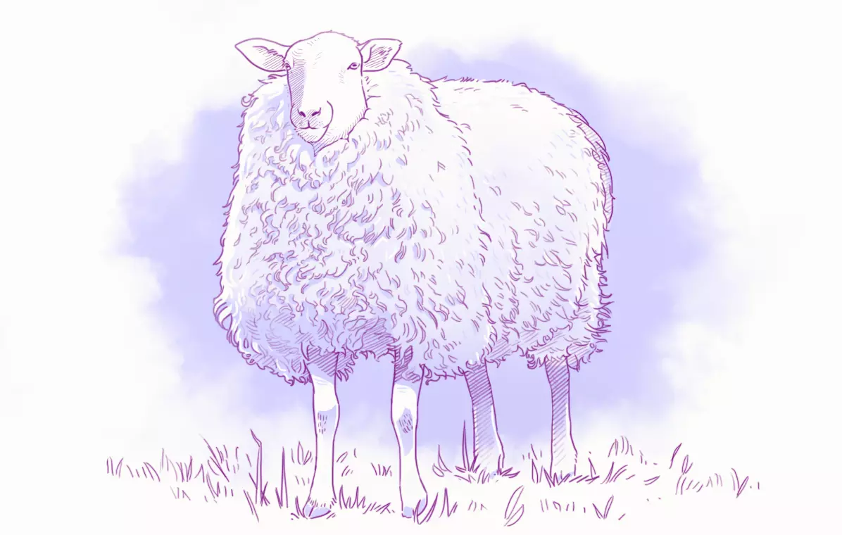 Les moutons se font tondre en général une fois par an. À ce moment-là, ils ont un aspect très rond et imposant de par leur pelage volumineux, alors, la structure de leur corps et de leur musculature n’est quasiment plus distinguable. Voyons maintenant comment le dessiner de face, avec une large toison.