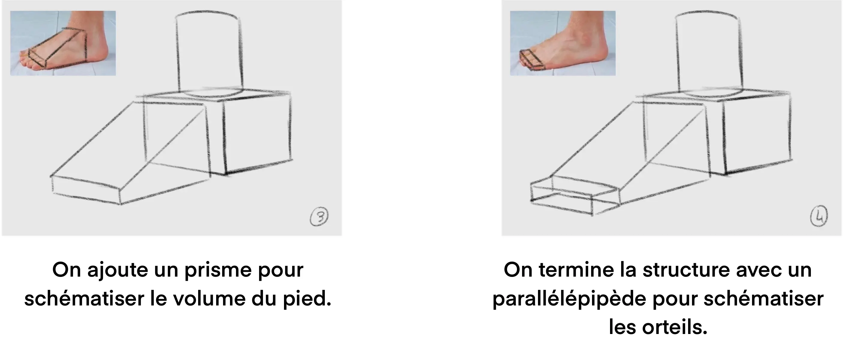 Nous allons commencer par voir comment dessiner des pieds de ¾. C’est l’une des positions les plus dessinées, mais c’est surtout celle qui permet de mieux se rendre compte du volume général du pied, ce qui facilite son intégration dans vos dessins.