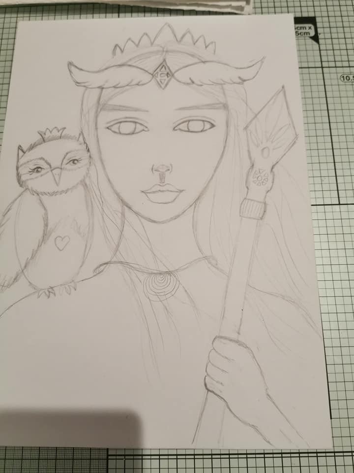 Diese Zeichnung wurde während eines Workshops mit gemischten Medien gemacht, wir mussten die Göttin Athena repräsentieren, wie wir uns vorgestellt hatten