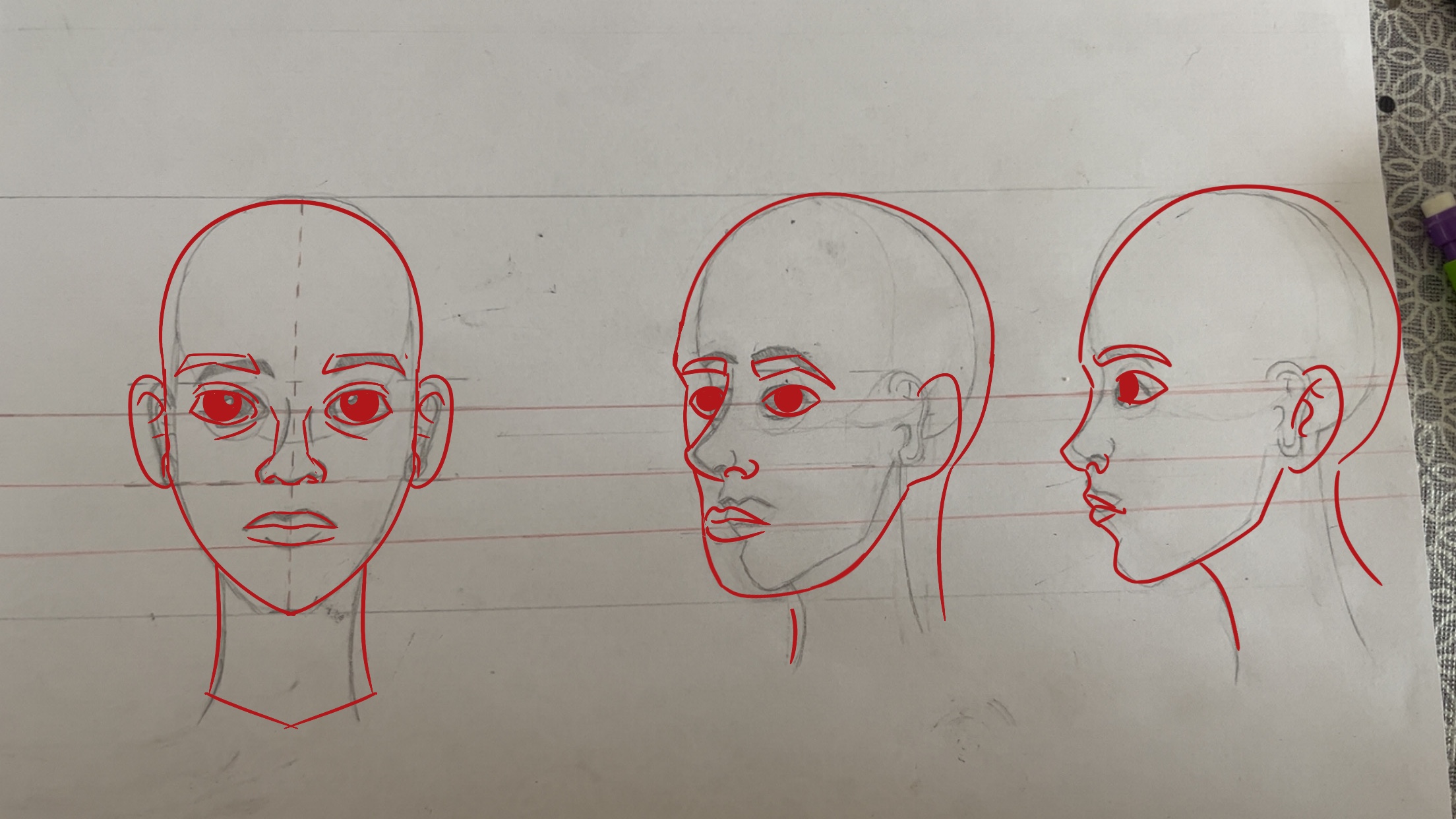 Je te partage quelques ajustements sur tes visages. En général, n'aie pas peur de faire le nez un peu plus large et les lèvres devraient se situer un peu plus haut.