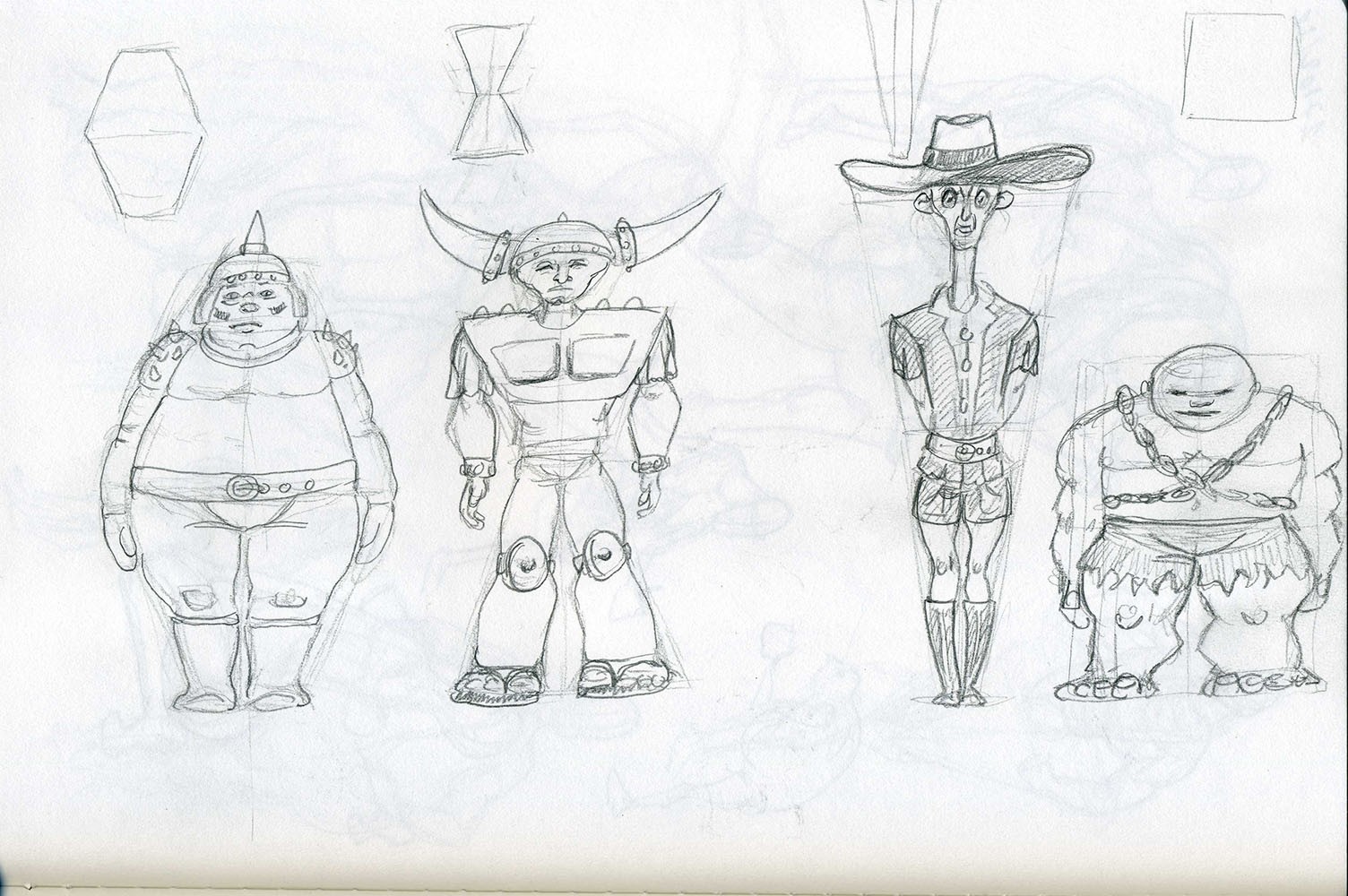 Merci pour cette galerie de joyeux lurons. Toutefois, ces dessins ne répondent pas à l'exercice proposé ! Il y a des personnages aux corpulences très variées : un bon exercice serait de prendre l'un de ces personnages et de faire quelques variations sur sa corpulence, ses courbes, etc.