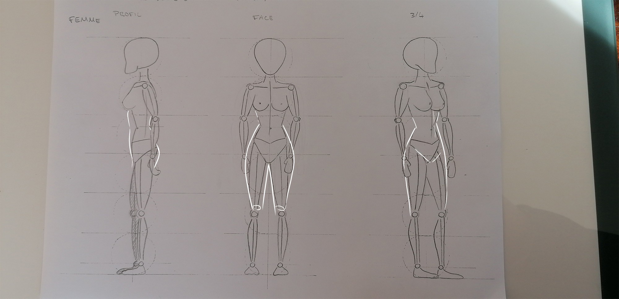 les essais sont très réussis ! Il faut toutefois faire attention à la taille qui a un côté un peu anguleux. Les hanches peuvent être légèrement élargies également. Je vous mets une petite correction en image pour illustrer.