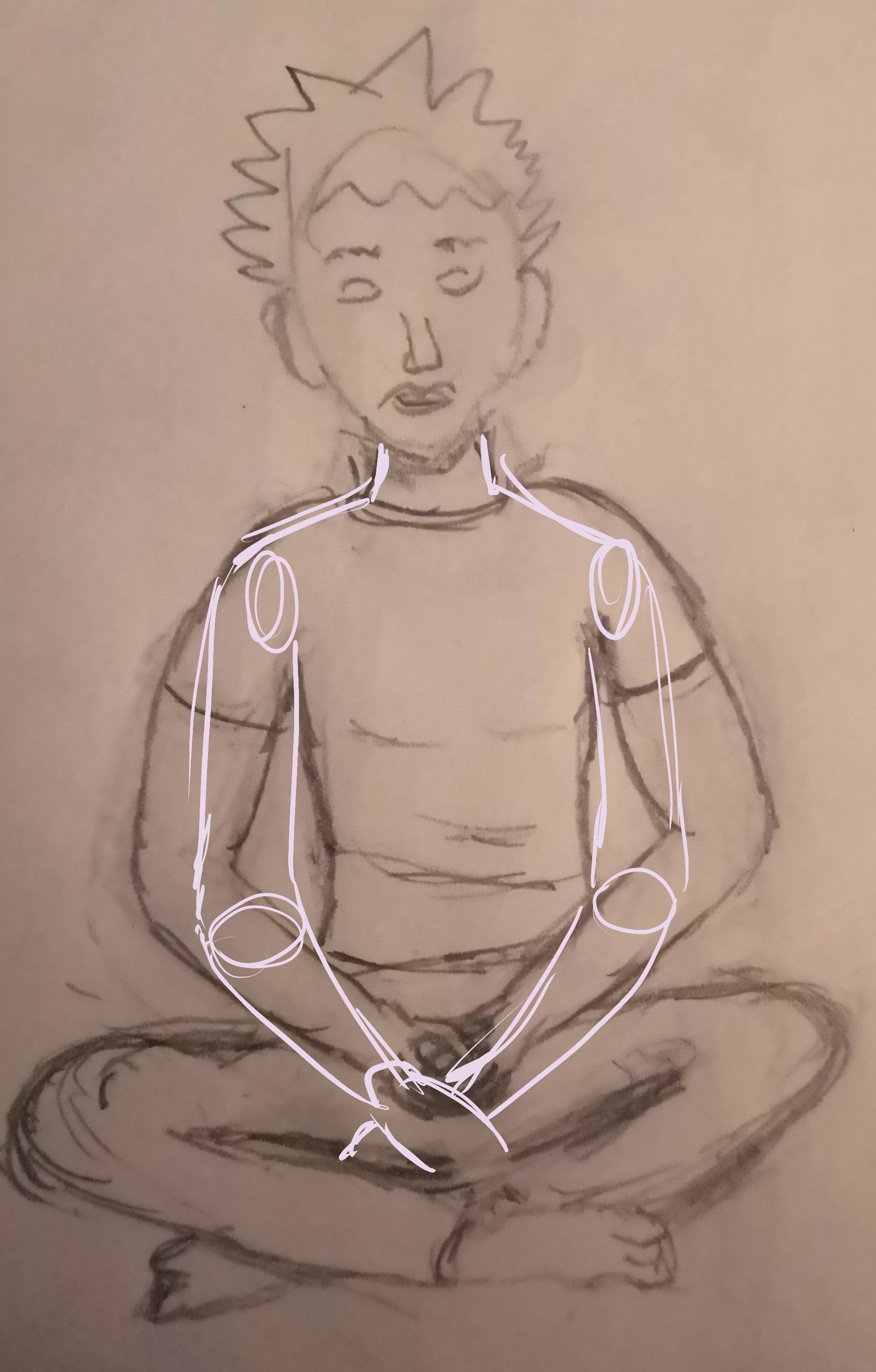 C'est pas mal, déjà ! On pourrait imaginer une position plus détendue des bras, pour la posture en tailleur. Voici un petit exemple pour vous guider.