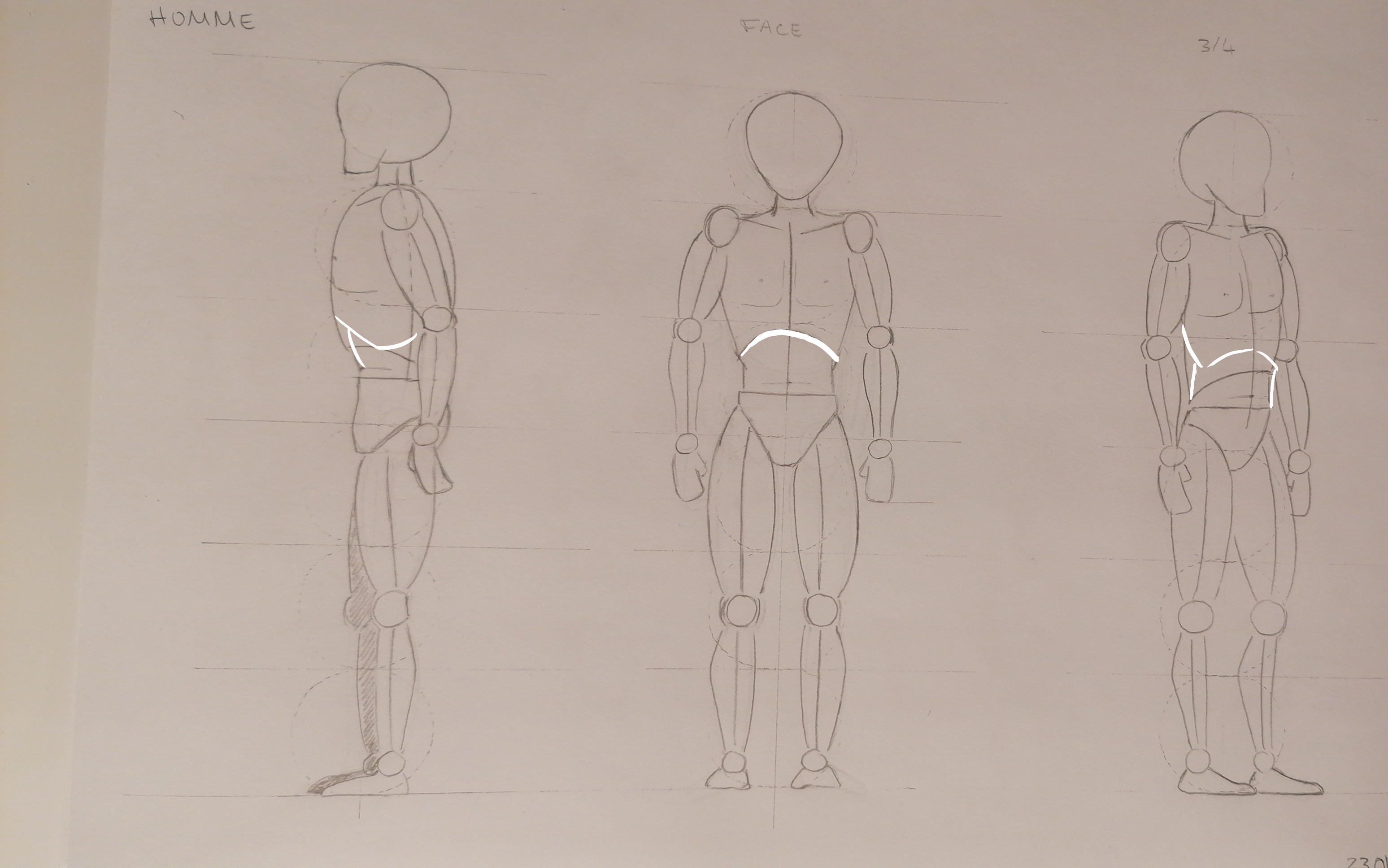 Très bon départ ! Une remarque à propos des épaules : il ne faut pas oublier qu'elles sont mobiles et se déplacent de haut en bas et d'avant en arrière en fonction du mouvement. Bouger un peu les épaules selon la posture permettra notamment un rendu moins rigide des personnages.