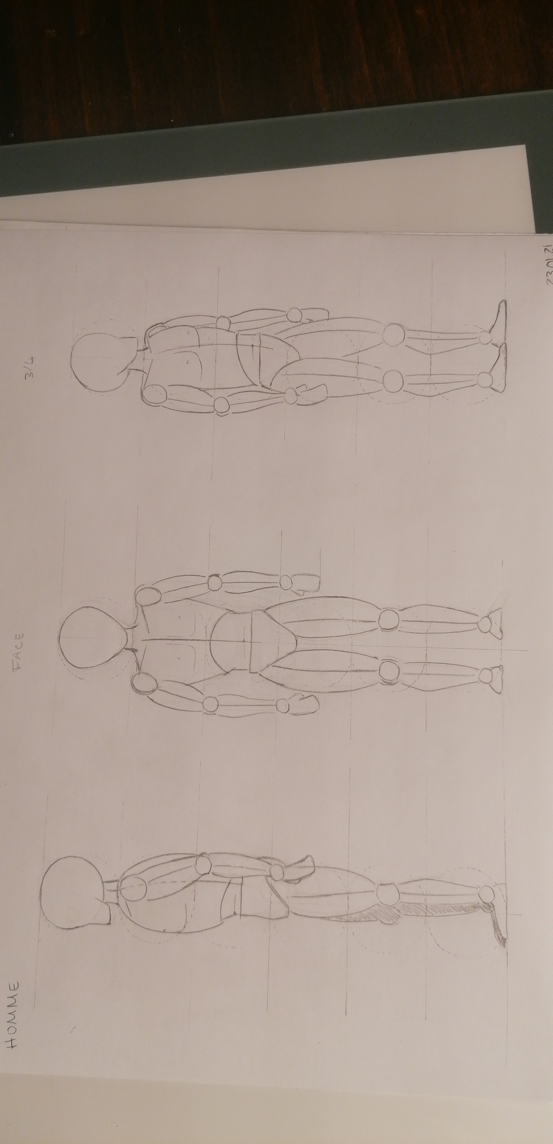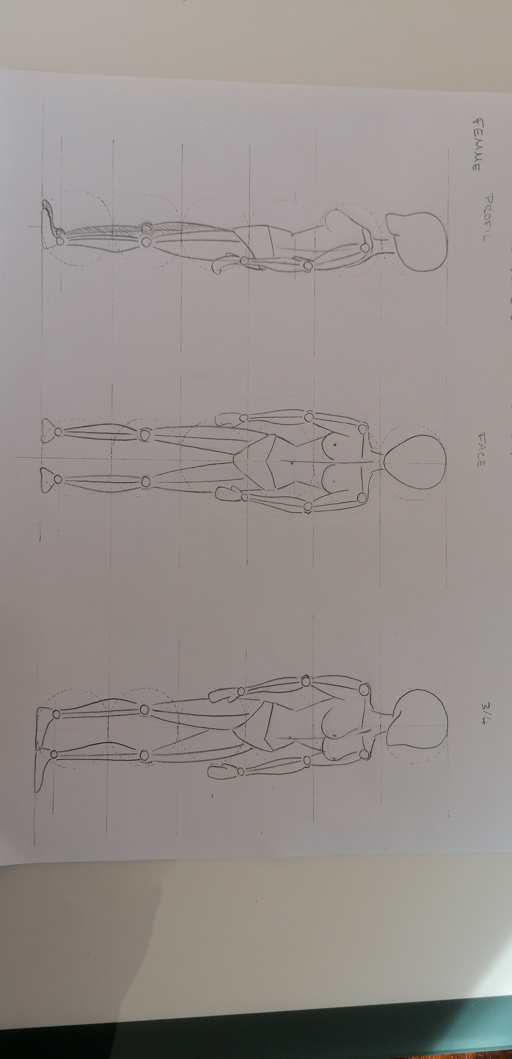 c'est déjà très bon dans l'ensemble. Il y a un petit problème à la cage thoracique, qui n'est pas au même niveau sur les face / profil et trois quart. Je joins une petite image de correction rapide.
