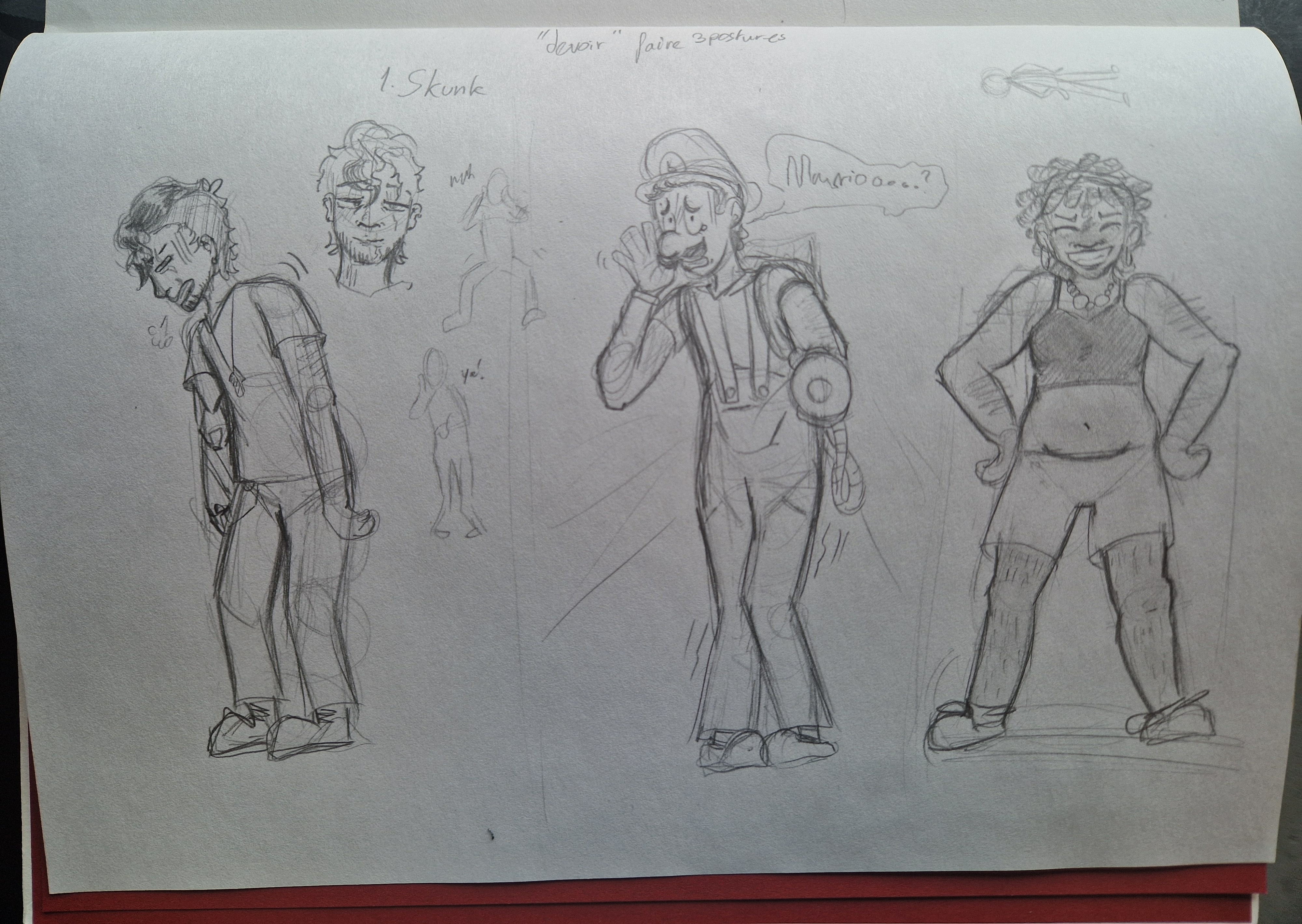 In Bezug auf die erste Pose ist es wahrscheinlich, dass ich es ungeschickt gemacht habe, aber tatsächlich wollte ich, dass mein Charakter sich auf seine Hüfte lehnt und nicht nur die beiden Beine auseinander stehst
