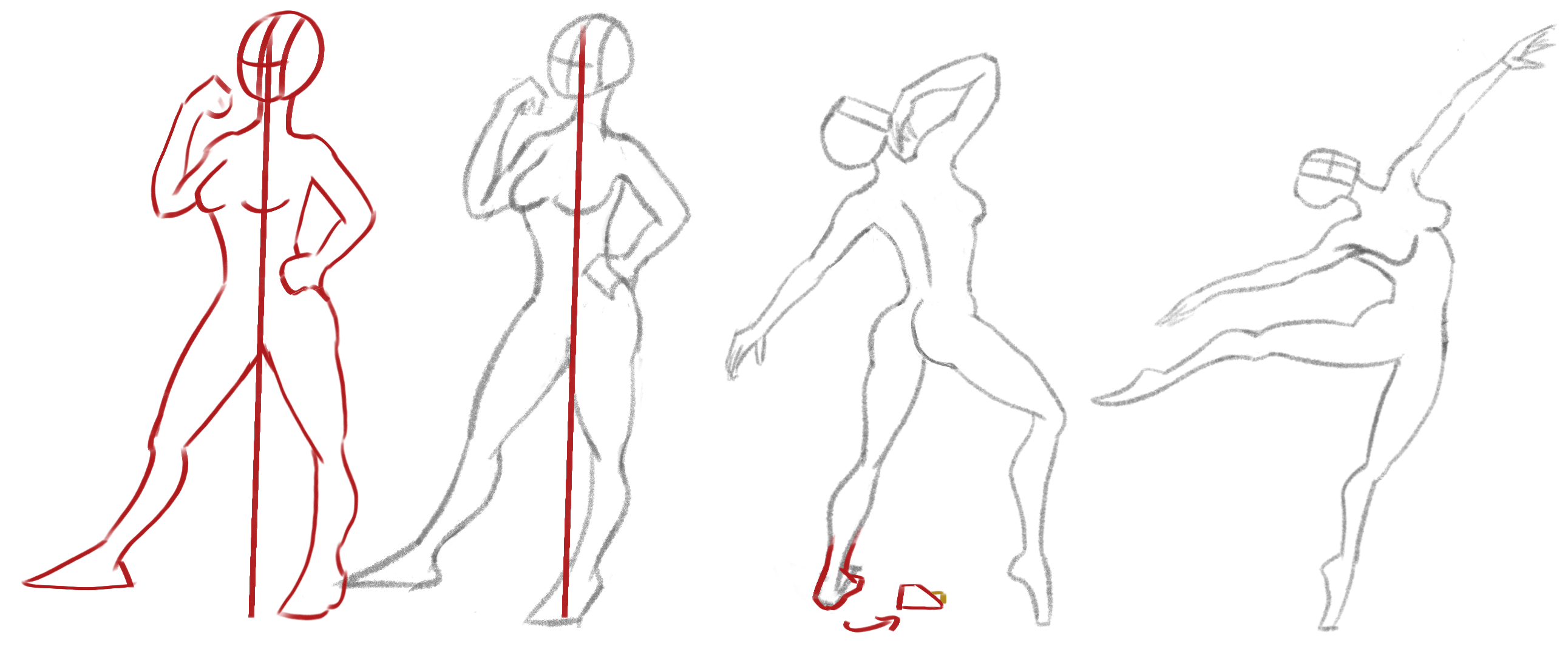 Es geht ihnen wirklich gut, diese Posen! Dinamycs und Flüssigkeiten, wir verstehen die Bewegung gut, oben !! Achten Sie nur darauf, die Applomb -Linie gut zu setzen, um sicherzustellen, dass Ihre Charaktere aufstehen. Dies ist beispielsweise nicht der Fall, was zum Beispiel etwas zu dessekilibus war. und ein kleiner Rat, die Füße von hinten zu zeichnen, denken Sie an eine mehr oder weniger Trizngular -Form (die die Füße dadurch diagramm) und fügt ein Rechteck am Ende hinzu (das zum Schematisieren der Zehen kommt) ein wenig mehr Volumes :)