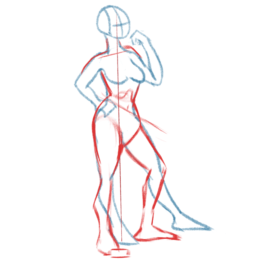 Ah ! Effectivement c'est pas la même pose du coup. Pour cela il aurait fallu que tu accentue le côté désaxée des hanches, la partie sur laquelle ton personnage s'appuie doit être bien plus haute que la deuxième jambe. Si tu veux rendre la position encore plus dynamique tu peux egalement surrrleve légèrement l.epaule a droite, cela crée une belle opposition épaule/hanche parfaite pour le mouvement :)