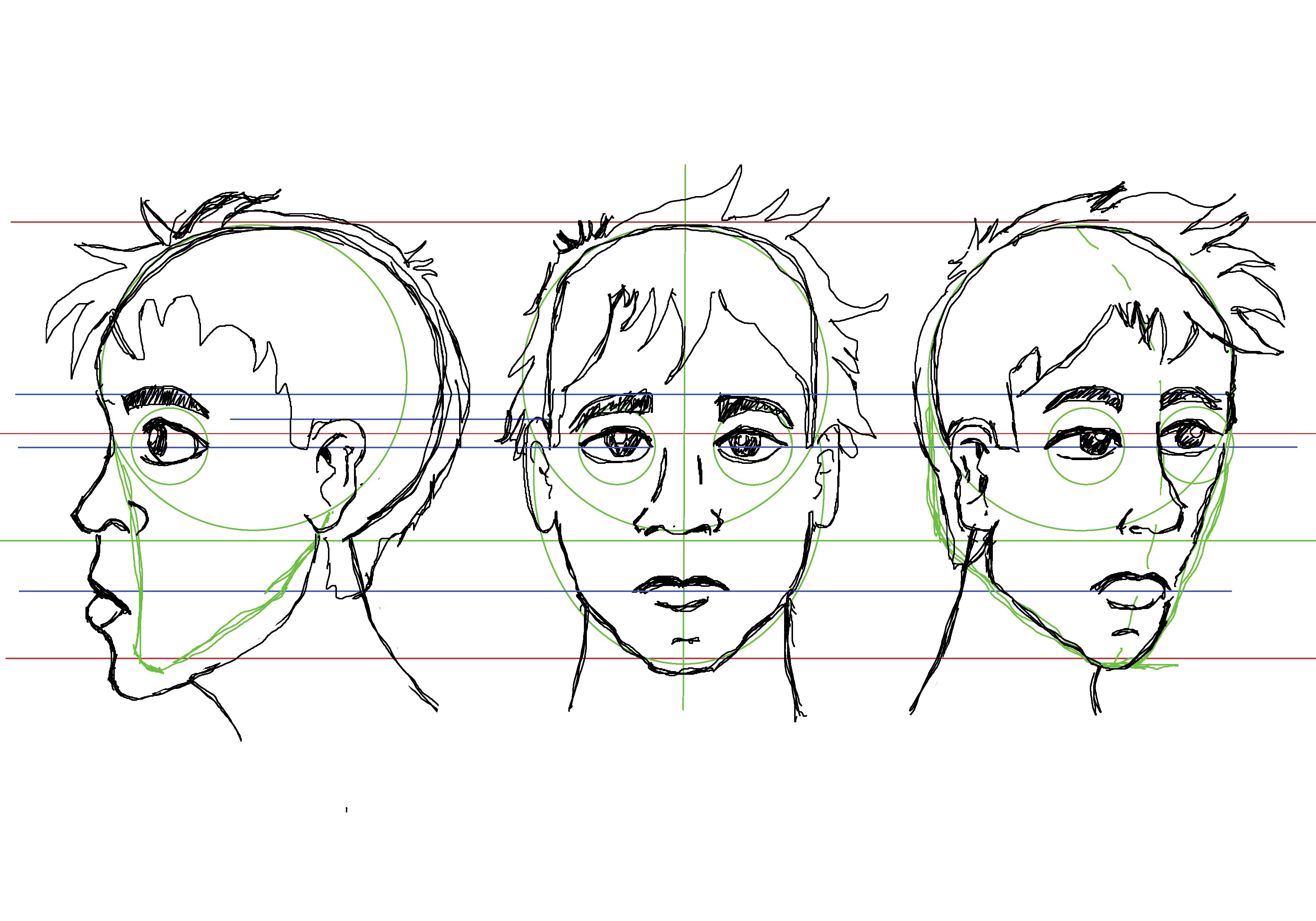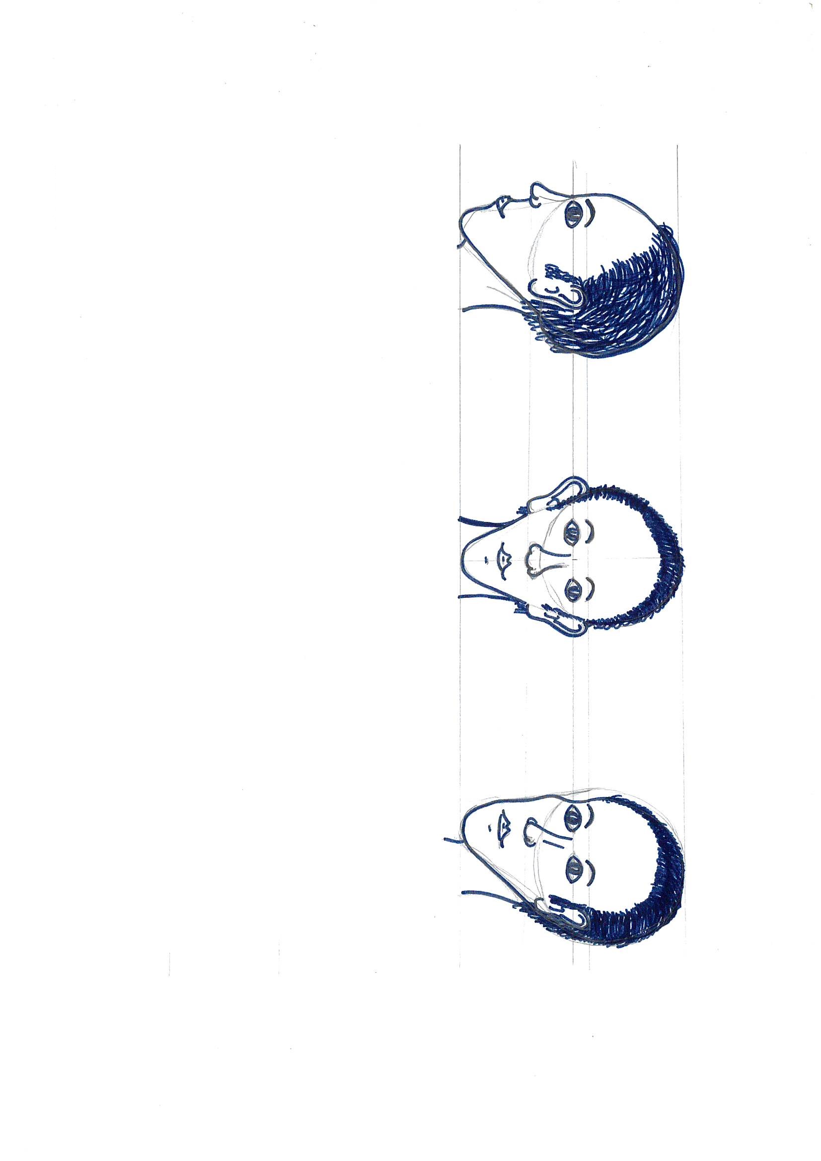 Le trait est fluide et le dessin clair ! il y a peut-être un problème de positionnement du bas du visage sur le profil. Je te joins une petite correction pour illustrer ça. Pour le visage de 3/4, je pense que le nez peut remonter légèrement. Sinon, c'est bien parti !