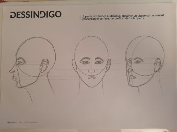 Voici mon exercice sur les proportions du visage.
