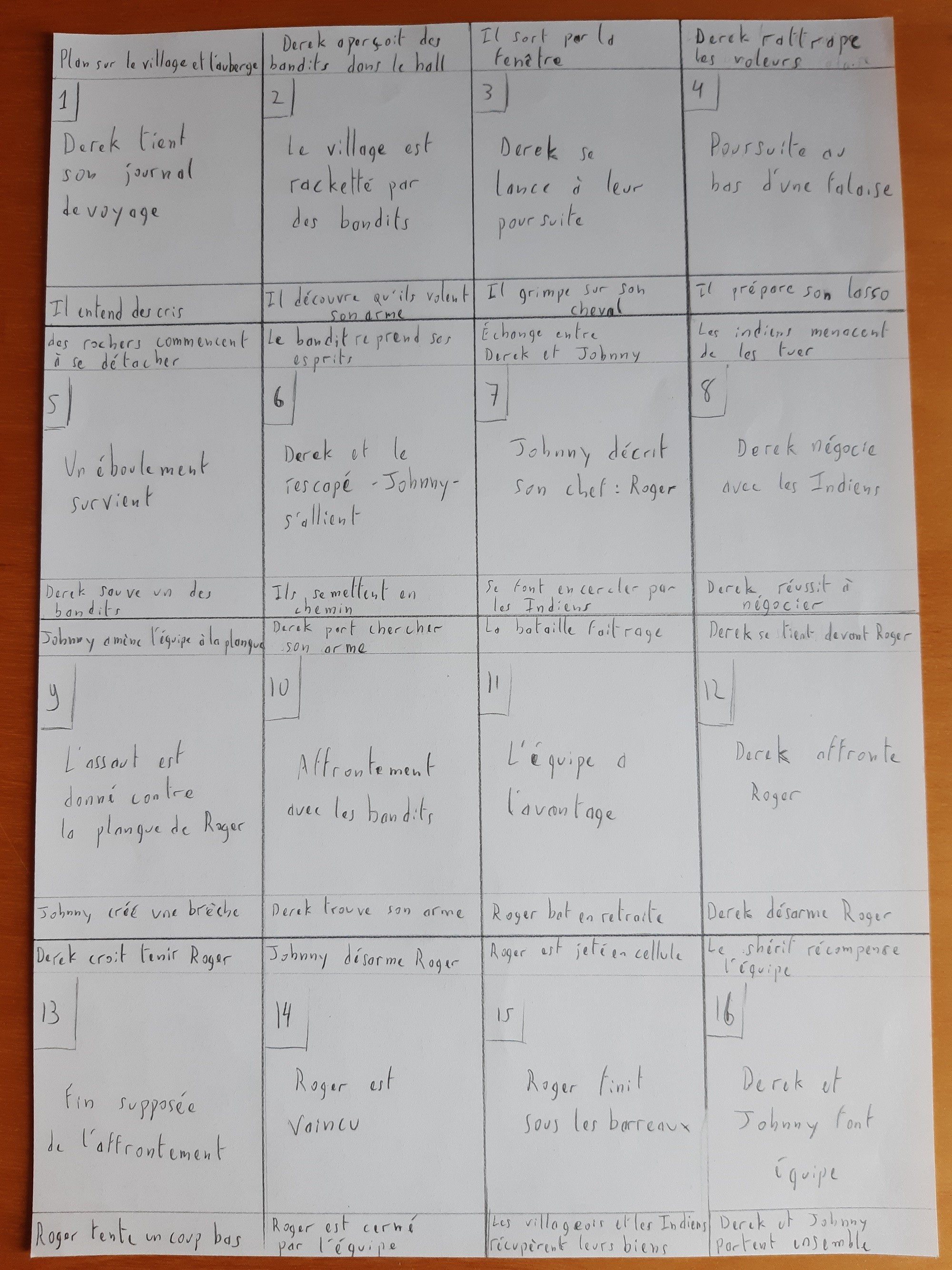 Hier ist mein Szenario -Schnitt. Ich modifiziere ein wenig im Vergleich zum ersten. Ich dachte auch in Bezug auf den Dialog, der mir hilft, den Verlauf des Szenarios zu sehen. Nichts ist natürlich eingefroren. Ich hoffe du kannst mich lesen ...