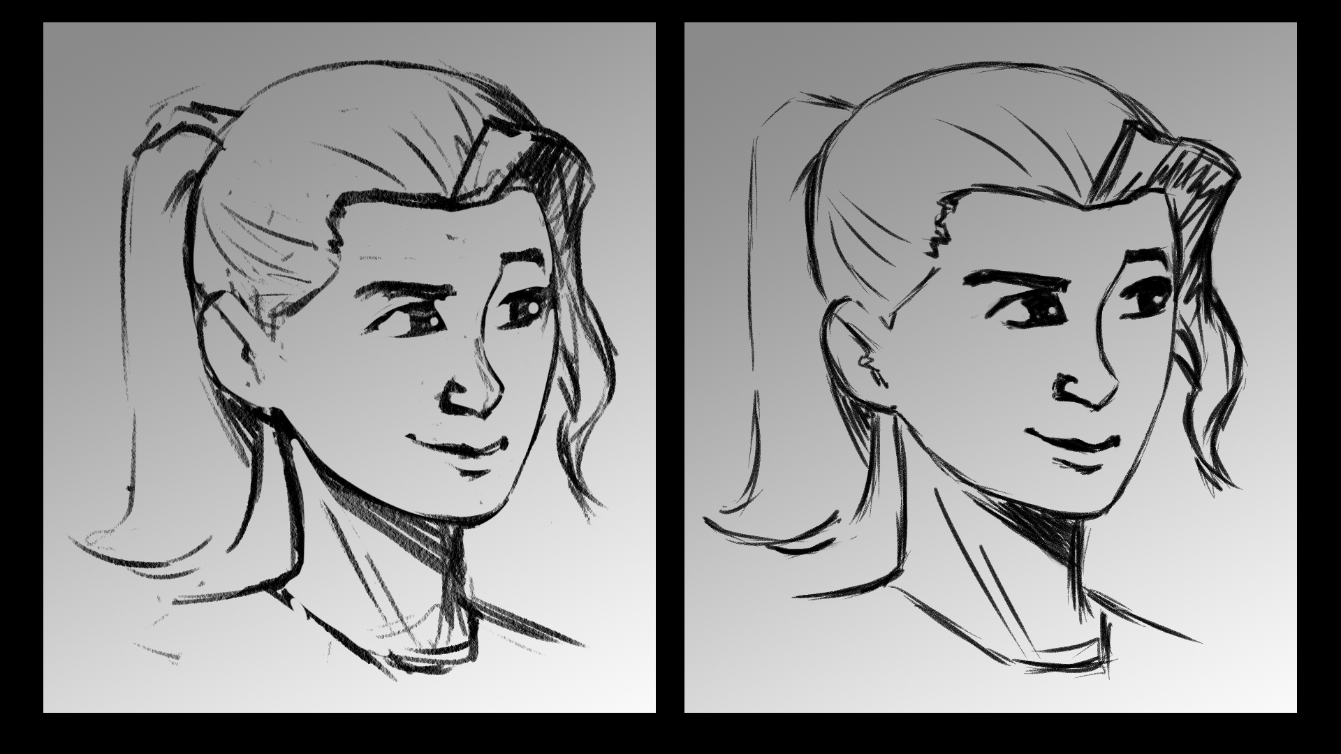 Bien entendu, celà ne doit pas t'empêcher de dessiner des hommes avec des charactéristiques "féminines" ou vice-versa, ce sont juste des codes visuels basé sur ce qui est le plus commun. Il y a des femmes avec une mâchoîre anguleuse, et/ou un menton large et/ouun front carré et/ou beaucoup de muscles, mais plus les caractéristiques genrées convergent du même côté et plus on va interpréter le genre de ton personnage de façon claire.