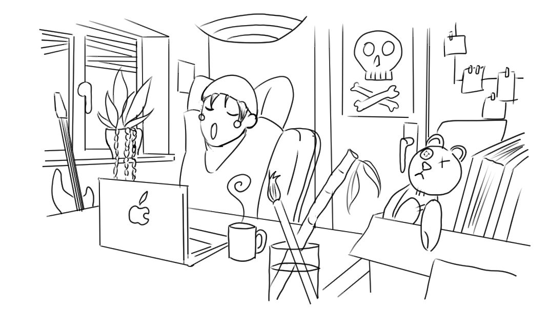 Voici mon crayonné sur Krita avec ma petite wacom intuos, je ne m'habitue pas encore très bien à l'utilisation et à la surface glissante de la tablette, ça me prend encore du temps (pour comprendre le logiciel) et beaucoup de correction mais je sens quand même que le tracé s'améliore à force de pratiquer.