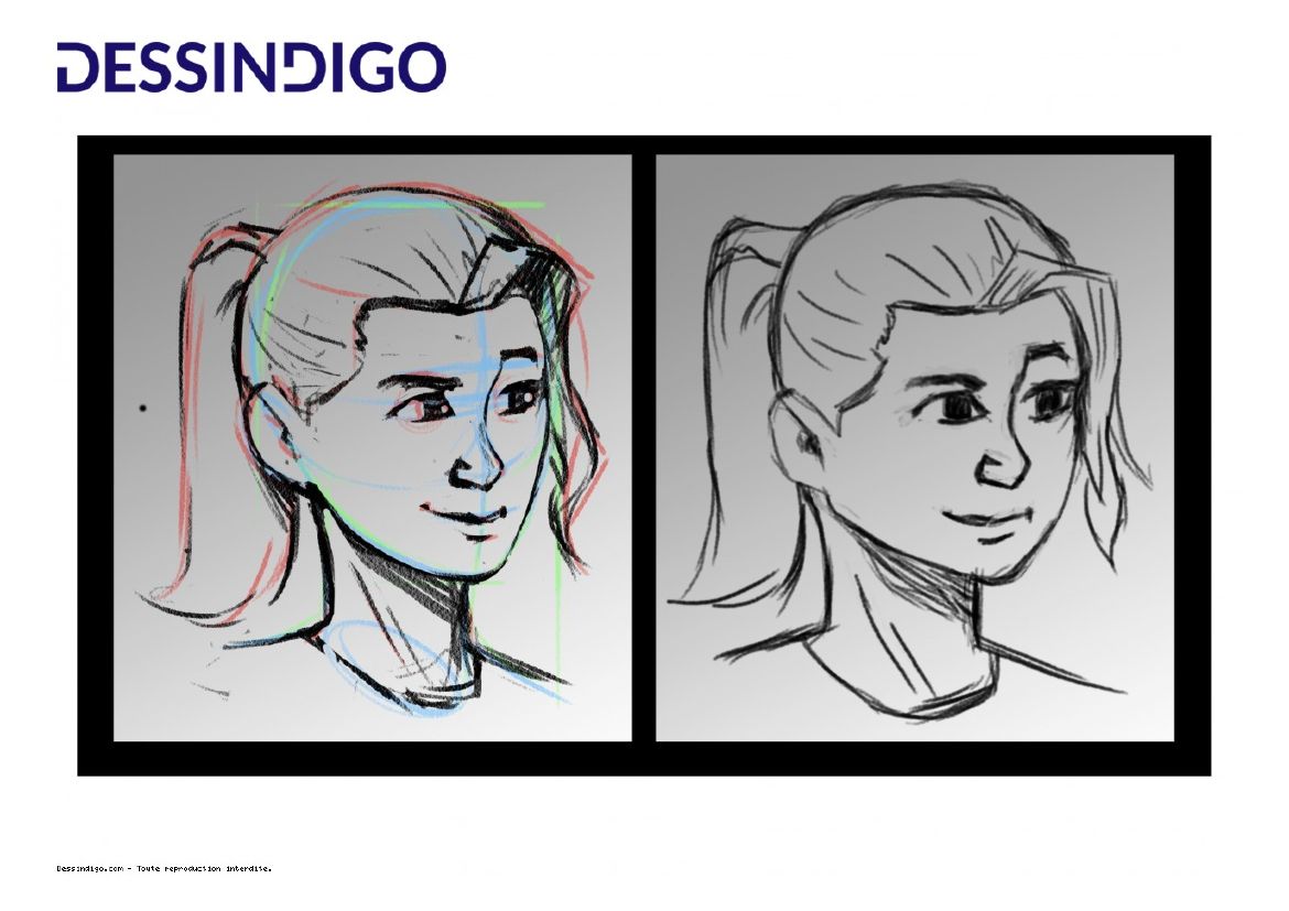 In Bezug auf Ihren Bleistift sind die Ohren etwas zu niedrig (immer in der gleichen Höhe wie die Nase: Der Pavillon befindet sich am Hoch der Augenbrauen, der Wahnungslappen zum Nasenbasis) und die Leinen des Nackens niedrig, um der Pose etwas dynamischer zu machen und den Hals leicht feiner und weiblicher zu machen. Der Rest ist einwandfrei, der Ausdruck und die Anatomie werden gehalten.