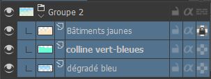 Für die EDRETING -Masken unterscheidet es sich etwas von Photosop: möchte in einer Gruppe sein. Für die Schichten, die Sie überfliegen möchten, müssen Sie nach rechts auf das Feld klicken, um ihr Alpha zu deaktivieren. Es wird sein, dass die Schicht den Konturen der Schichten folgt, in denen ihr Alpha immer aktiviert ist. Der Unterschied zu Photoshop besteht darin, dass Sie die Ebenen in der gewünschten Reihenfolge einfügen und mehrere Ebenen als Maske in derselben Ebenegruppe verwenden können.