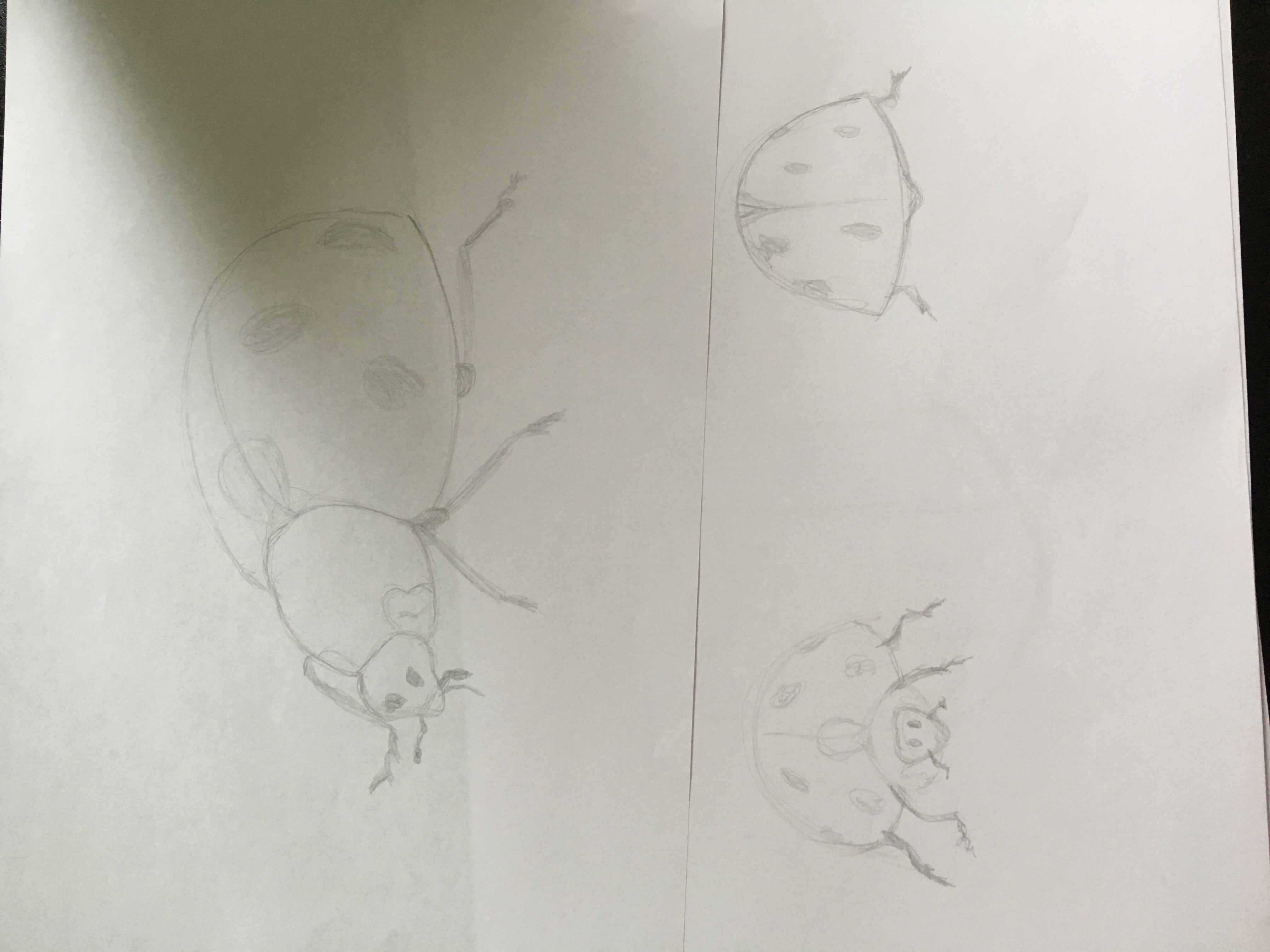Ich machte den Marienkäfer und sah dann die Korrekturen. Anstatt die Korrekturen zu kopieren, zog ich es vor, andere Objekte zu nehmen. Also hier ist: Ladybug, Smartphone, Eisen und Kolbenkaffeemaschine.
