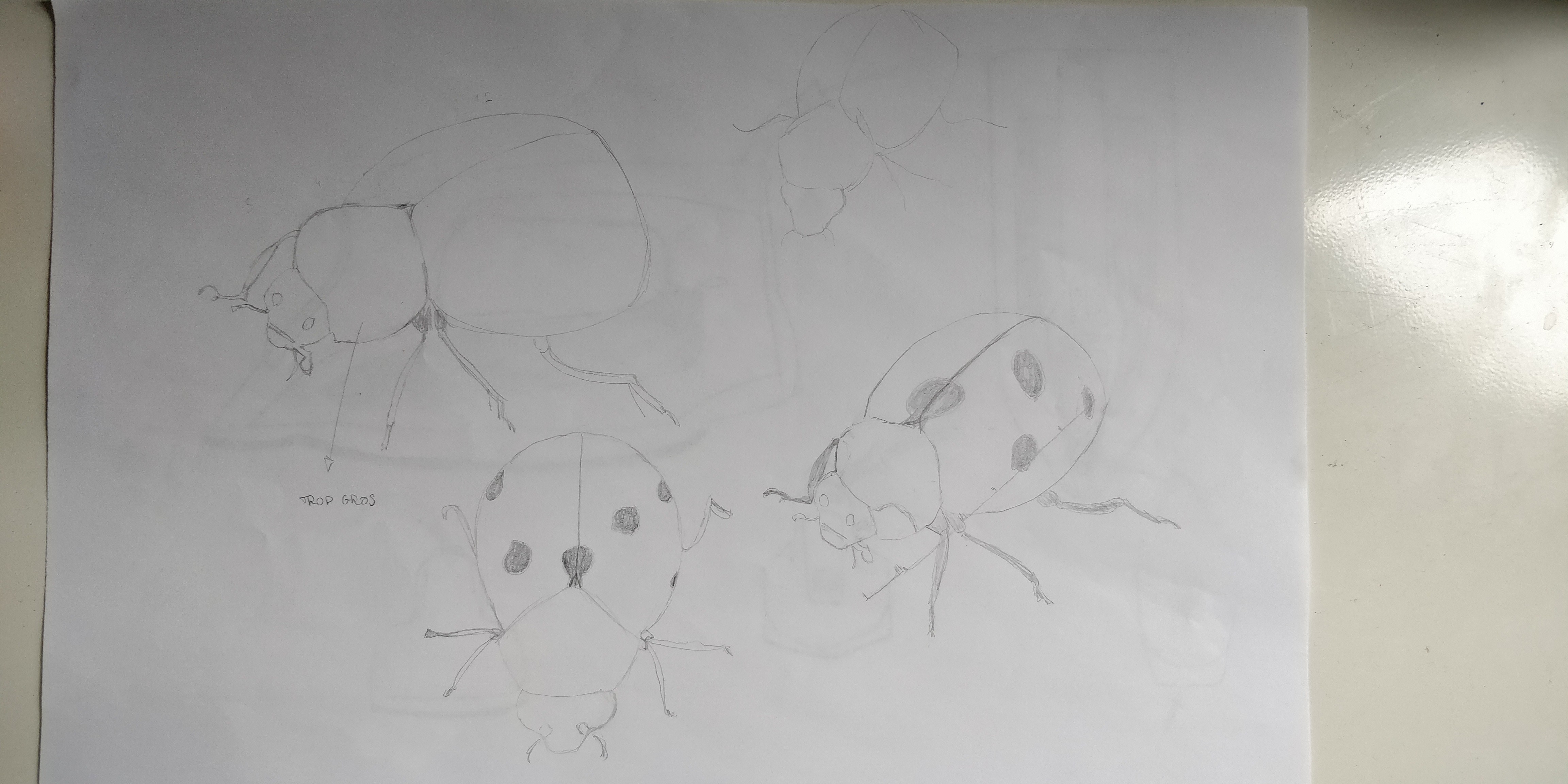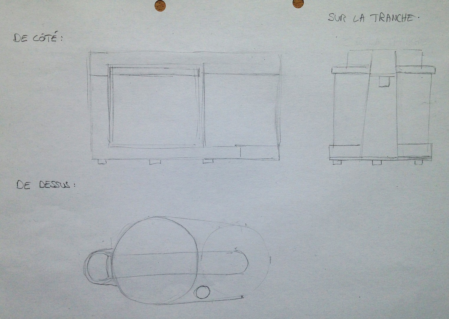 Mais surtout, ne t'attardes pas trop sur les détails pour ce travail là : l'objectif est de s'entraîner à pouvoir recréer les différentes faces d'un objet, et le visualiser sous plusieurs angles de vue.