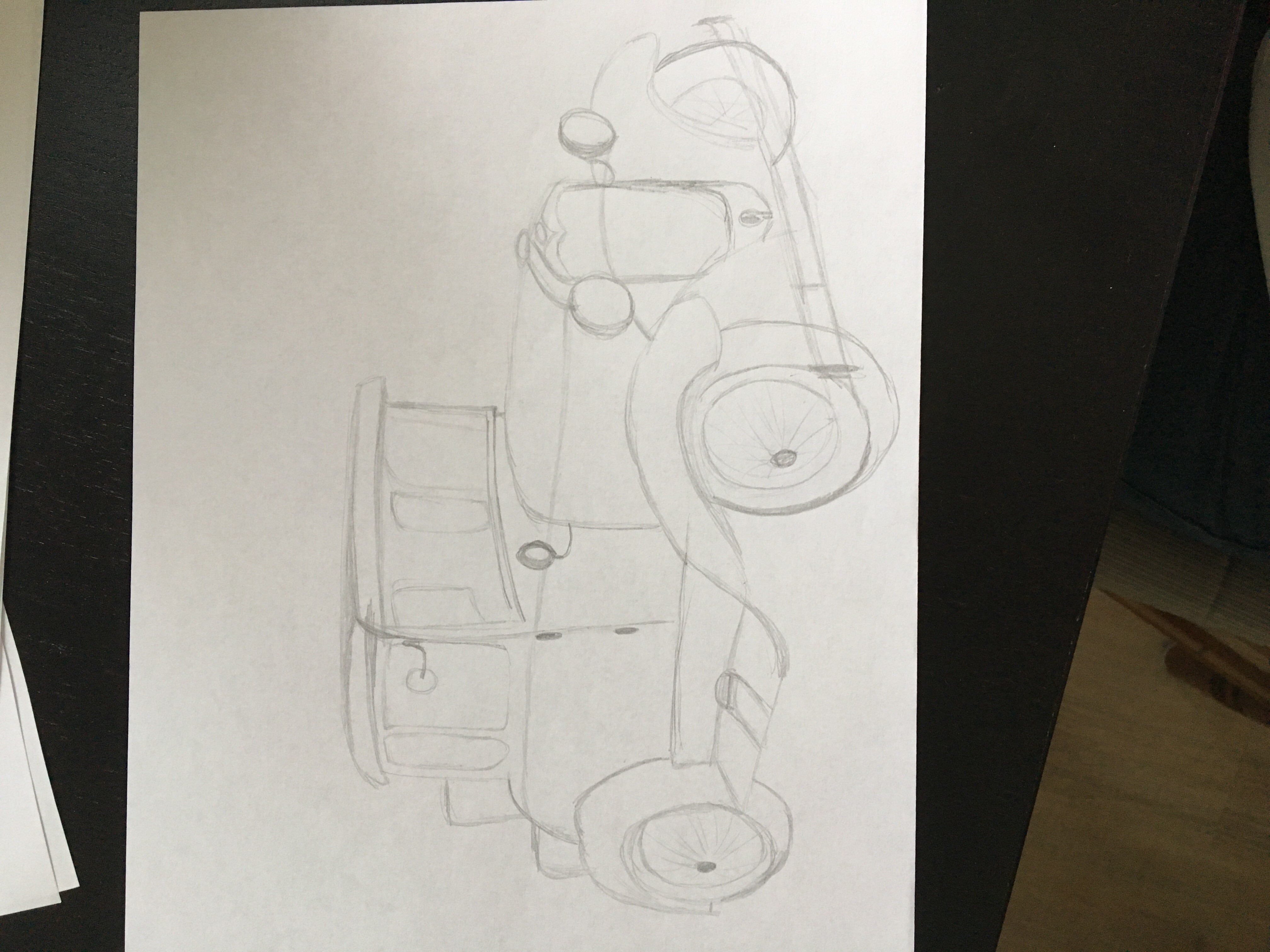 C'est pas très juste ni très propre, je vois plein d'erreurs et J'ai l'impression que je mélange les angles de vue, et je me demandais aussi si on pouvait utiliser par exemple un rectangle en volume pour y placer notre dessin (surtout pour les rotations pas la suite) ? ou alors j'ai peut être mal comprips la consigne ?
