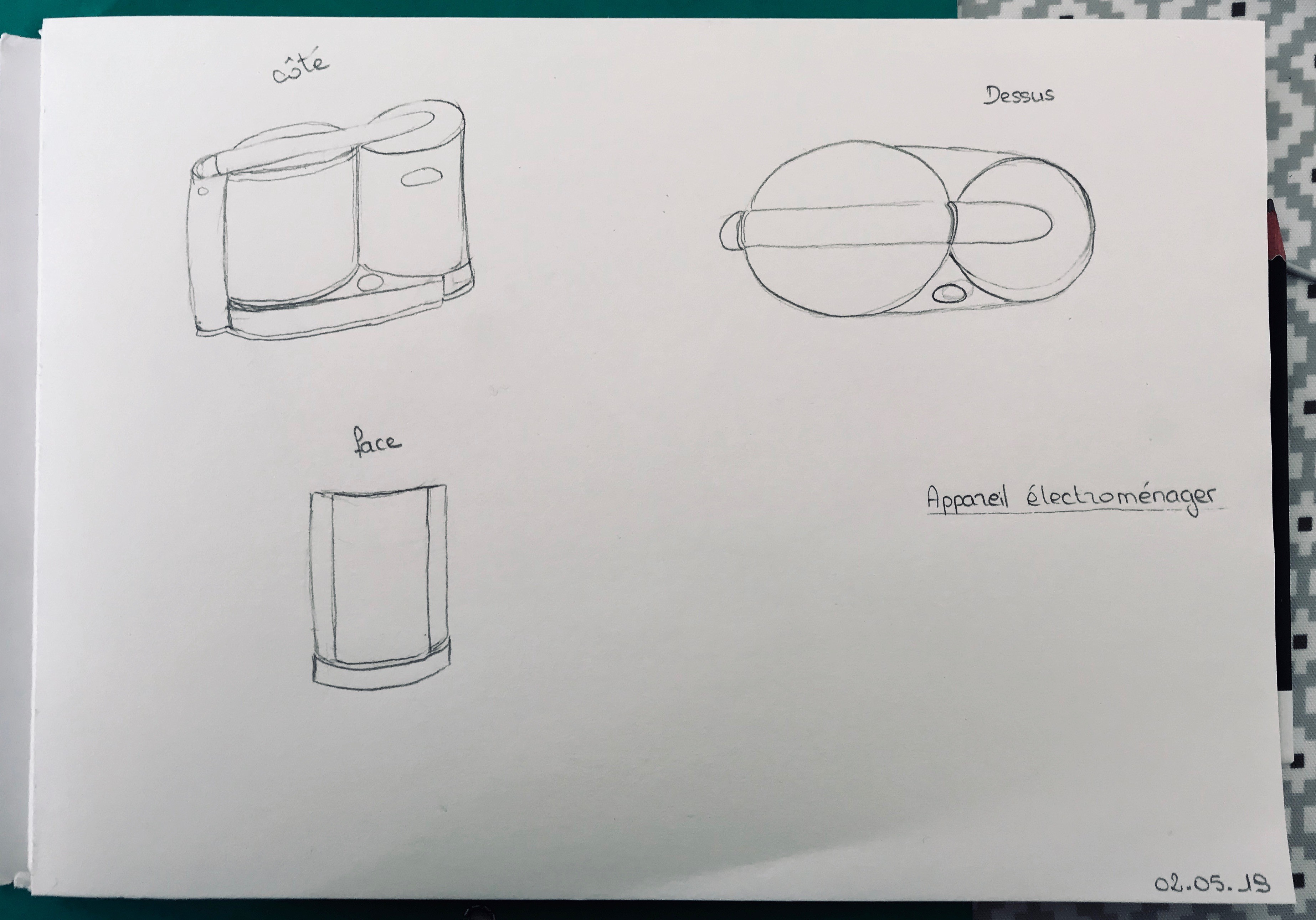 Voici mon essai pour le croquis de l'appareil électroménager.