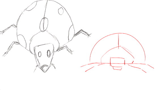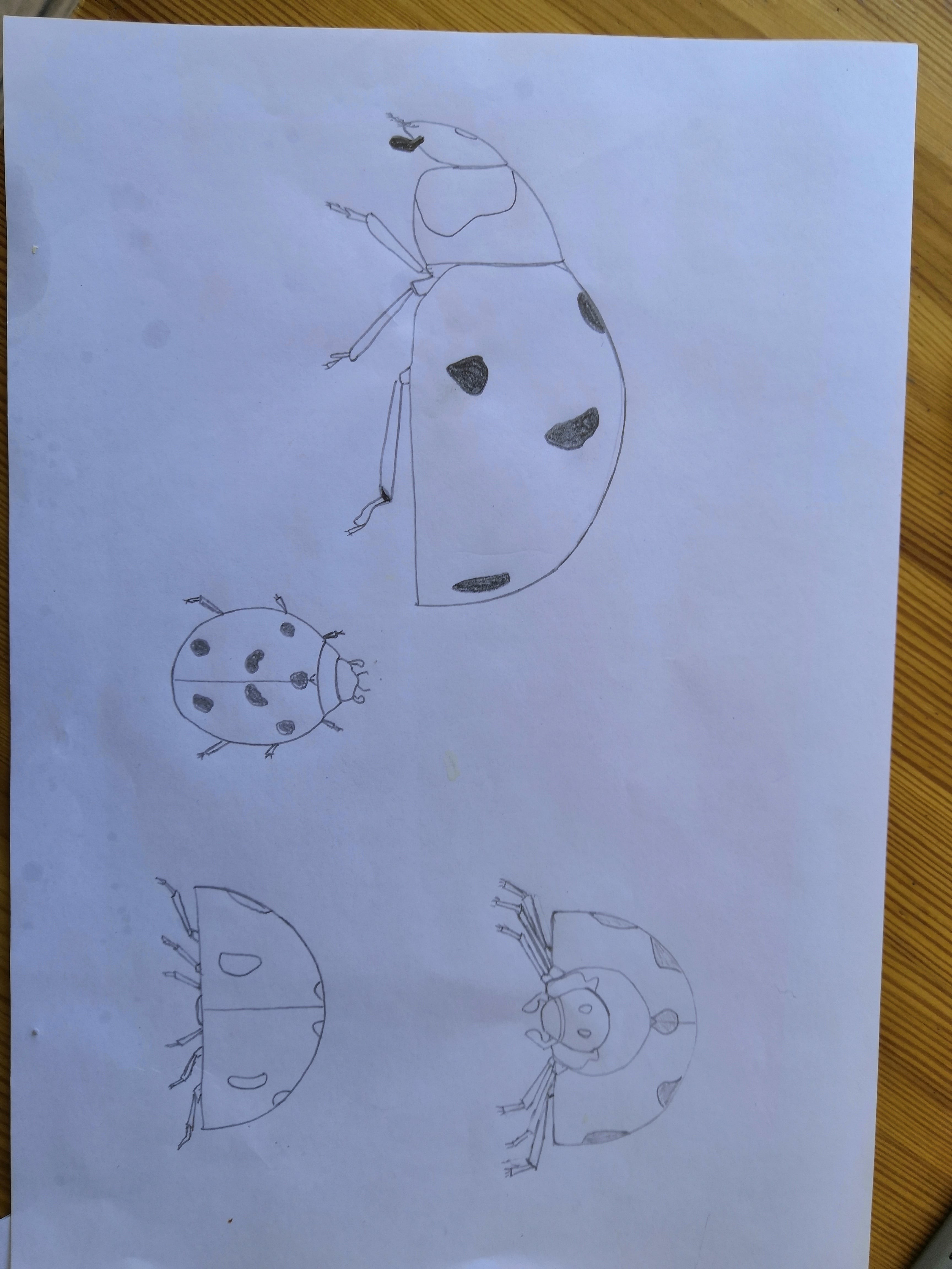 Hier ist meine Arbeit an der Zeichnung des Marienkäfers.