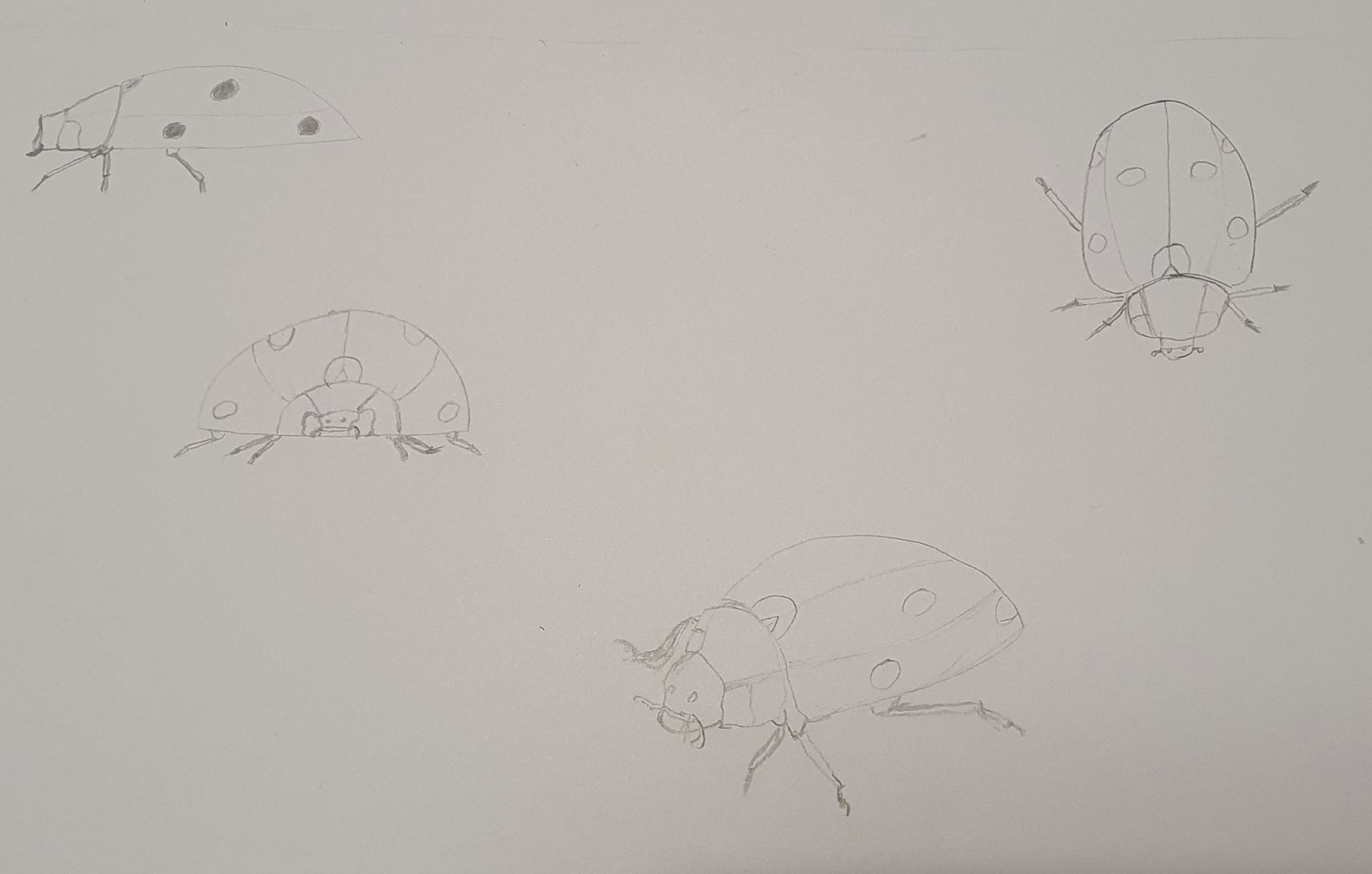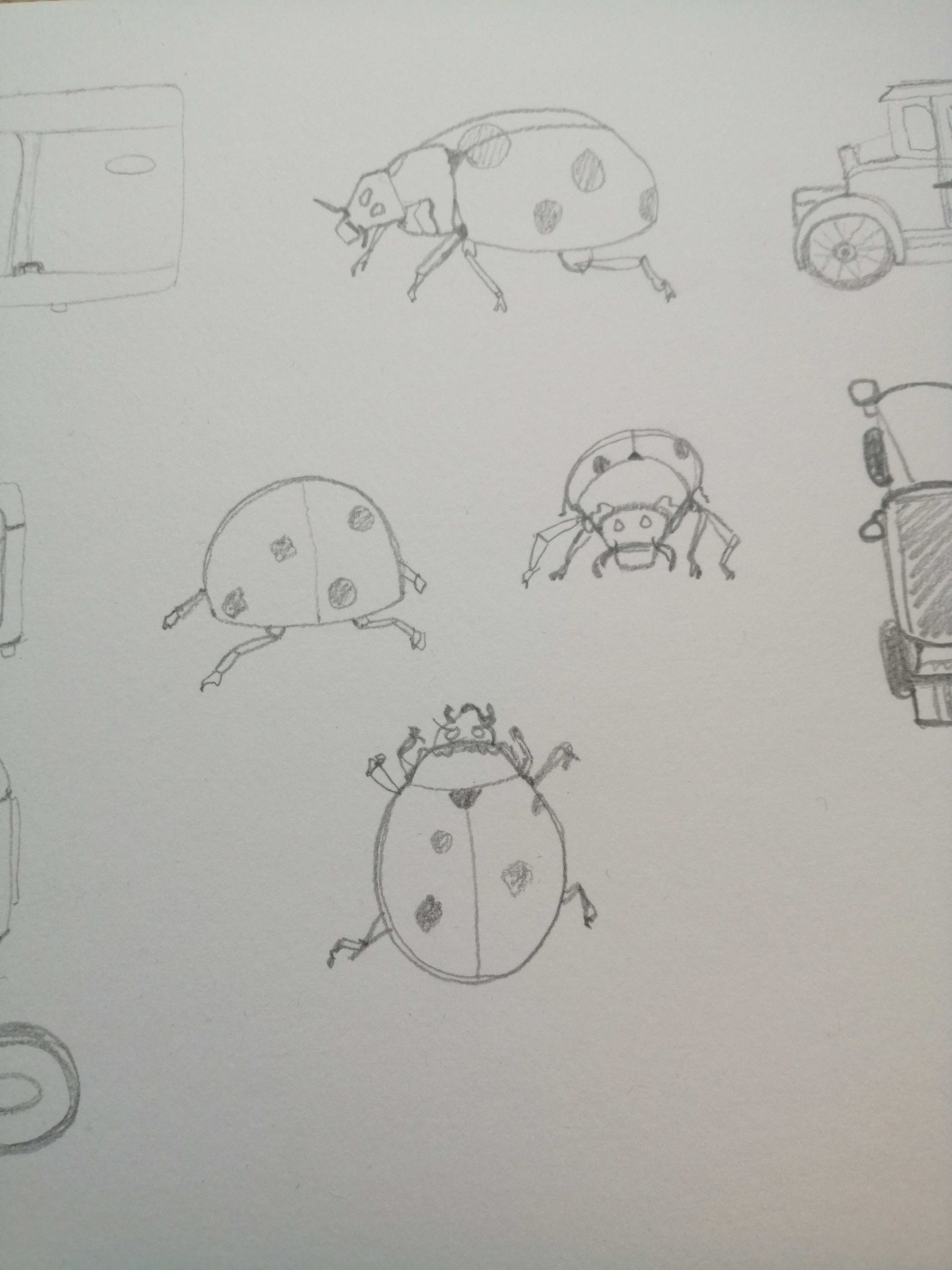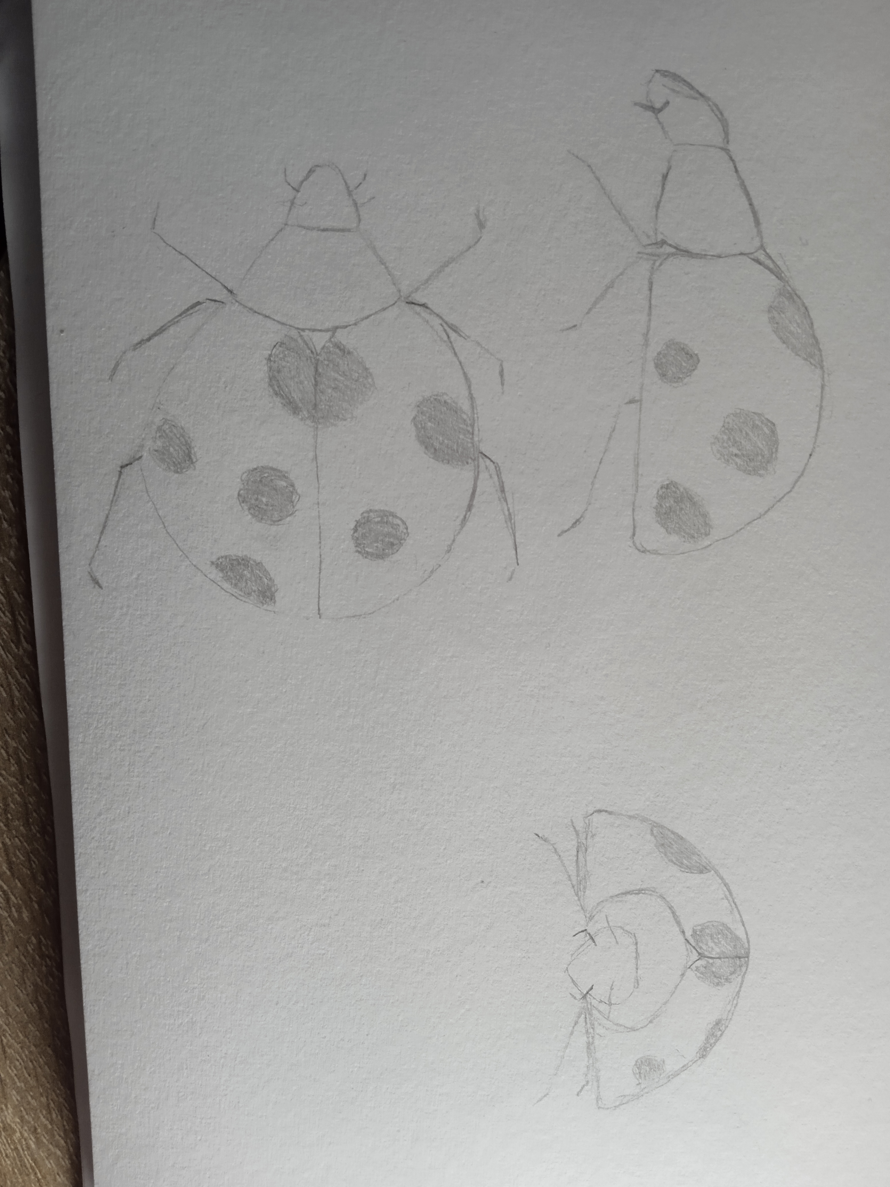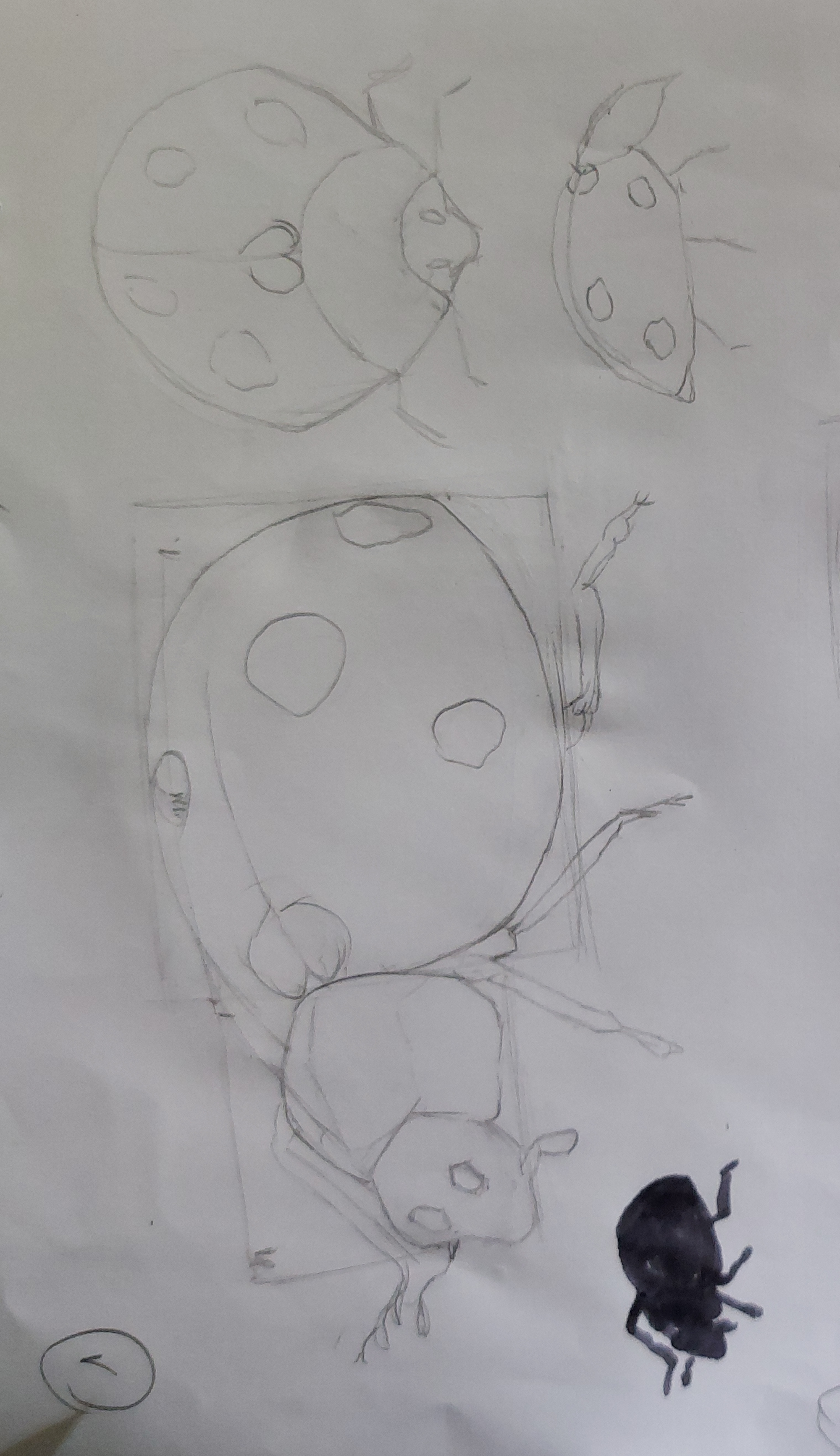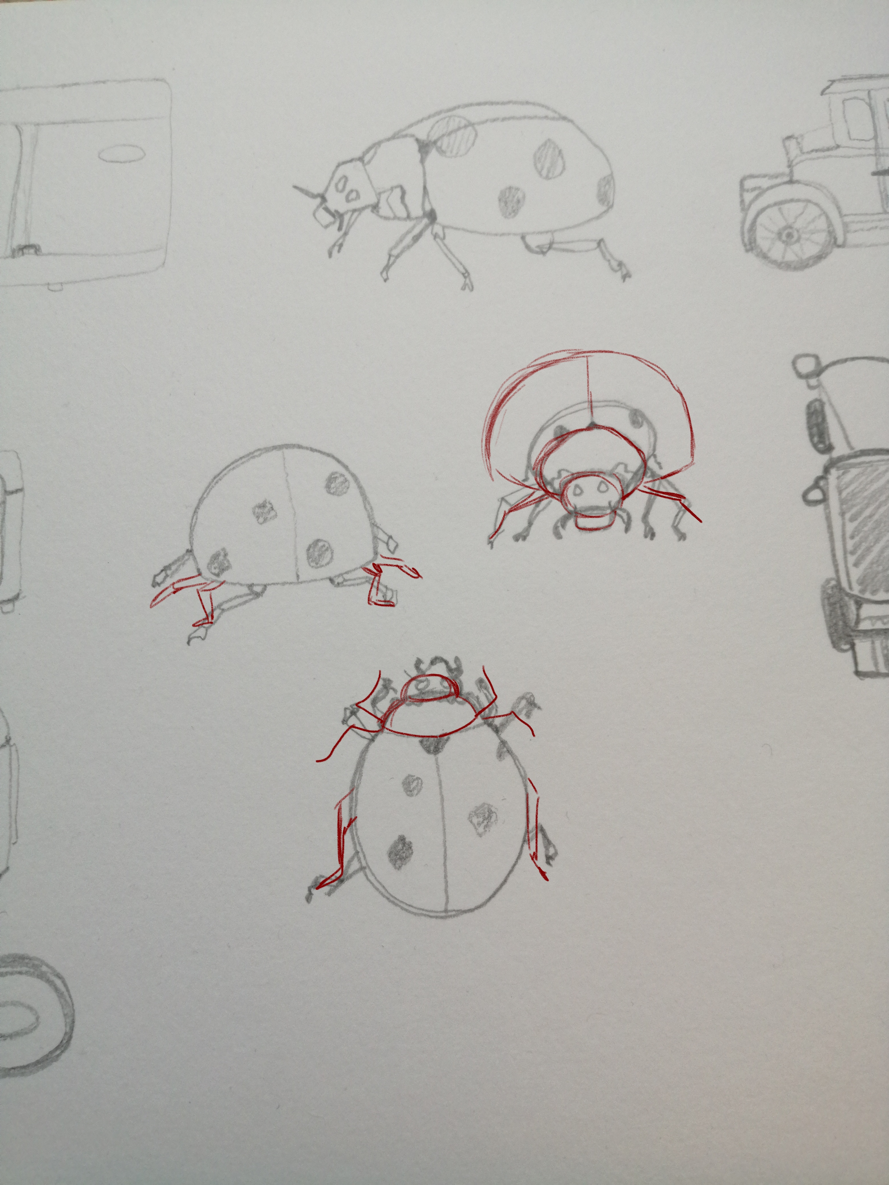 Super, on voit que tu t'es beaucoup amusé à étudier l'anatomie de la coccinelle! Là encore fais attention au volume de l'abdomen.