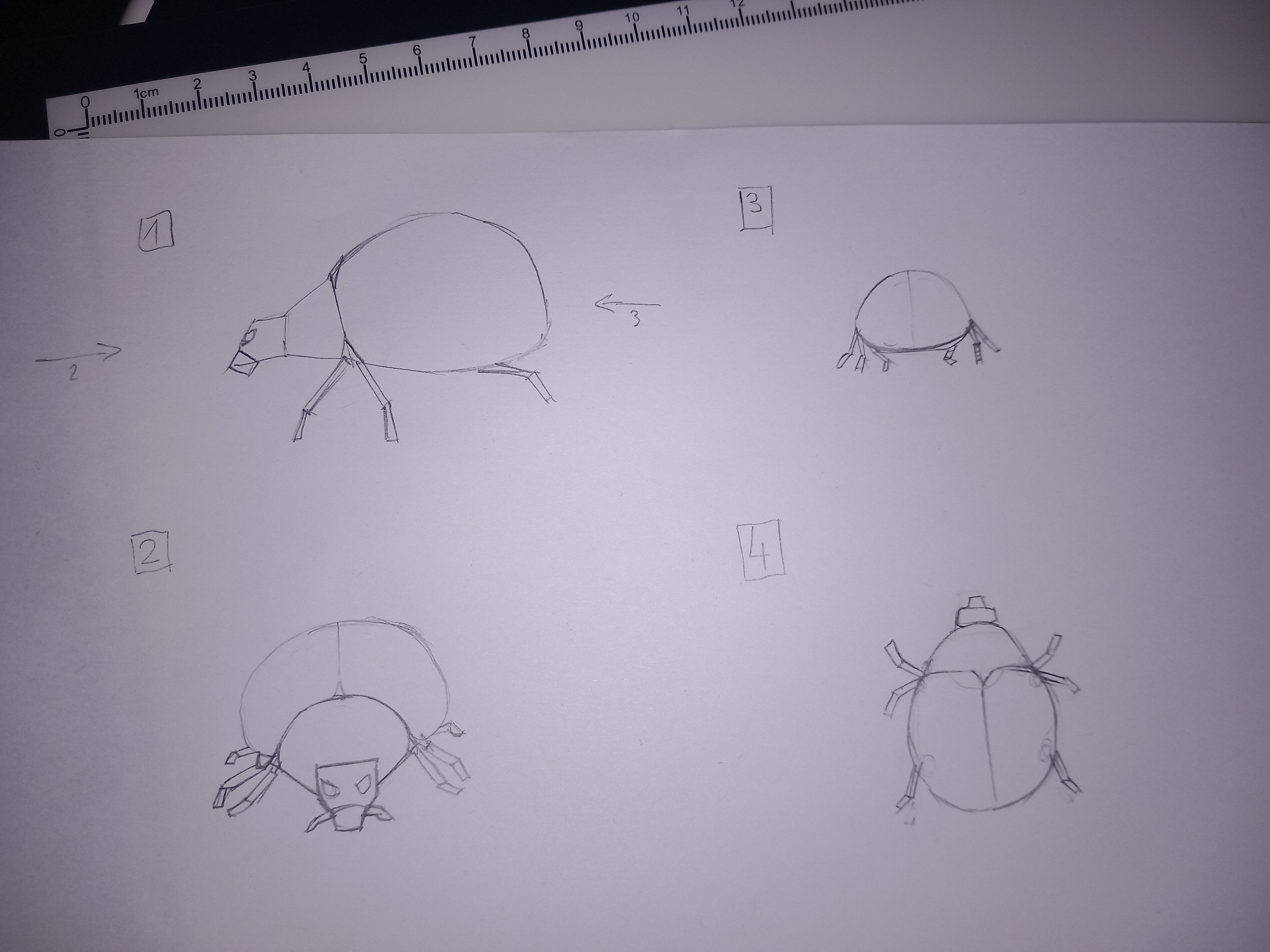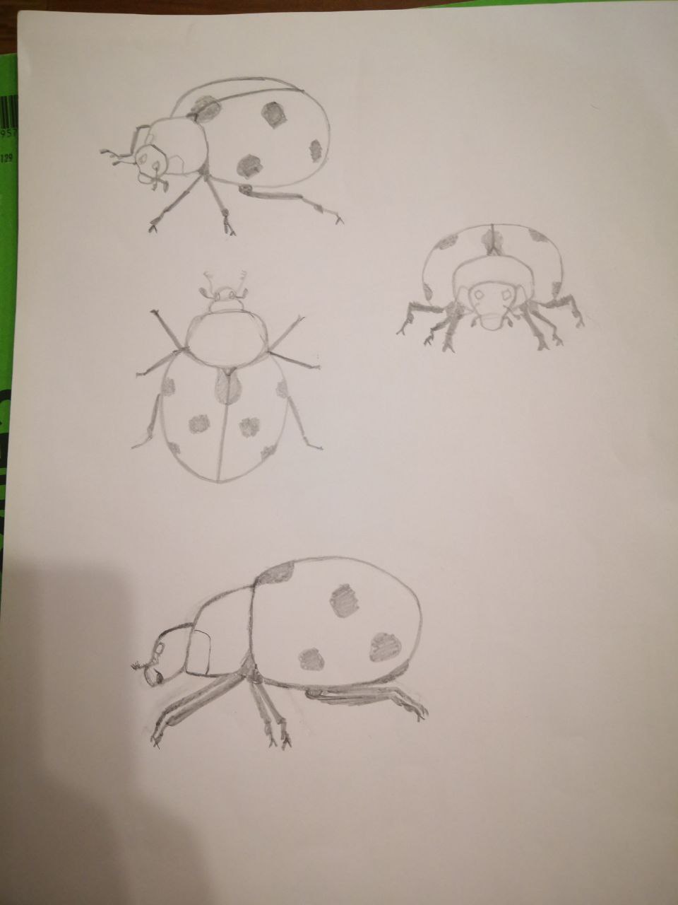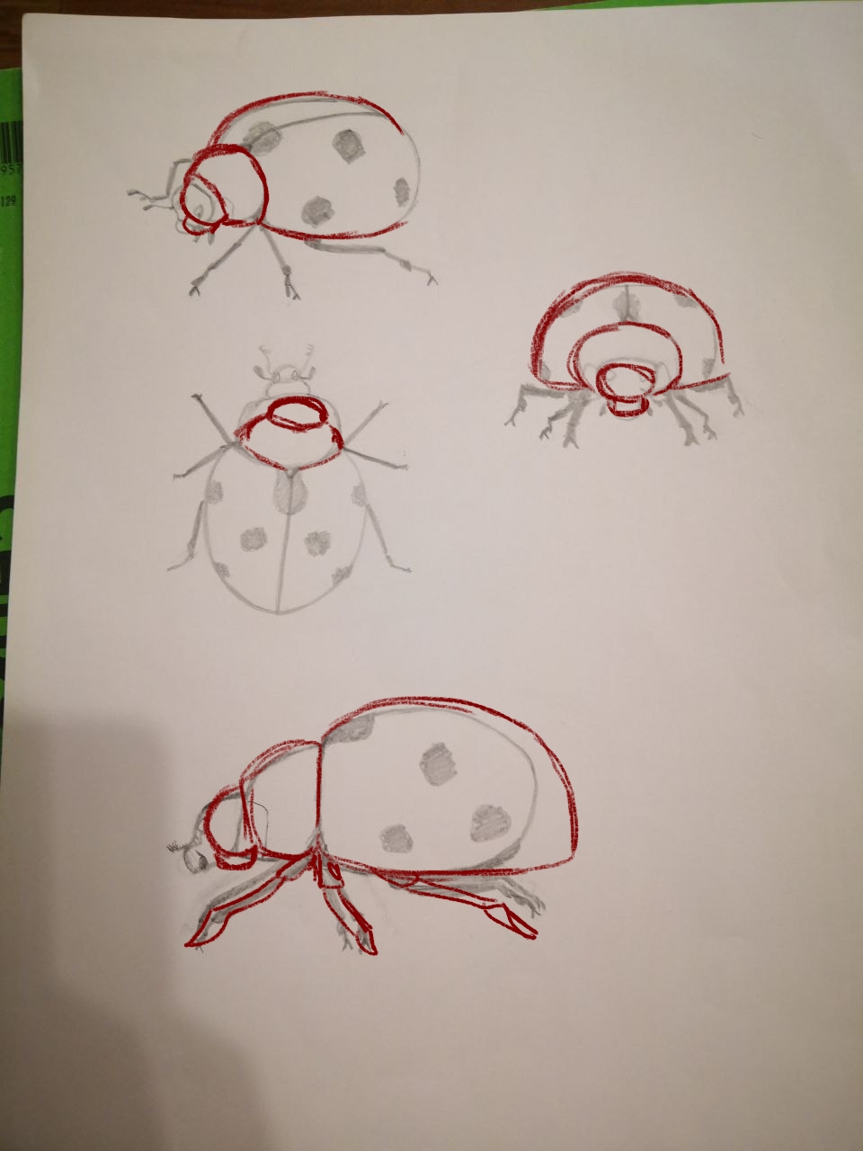 Hallo, hier ist mein Marienkäfer aus verschiedenen Blickwinkeln! Sehr interessante Übung, aber nicht einfach! Ich hoffe ich habe verstanden, was gefragt wurde!