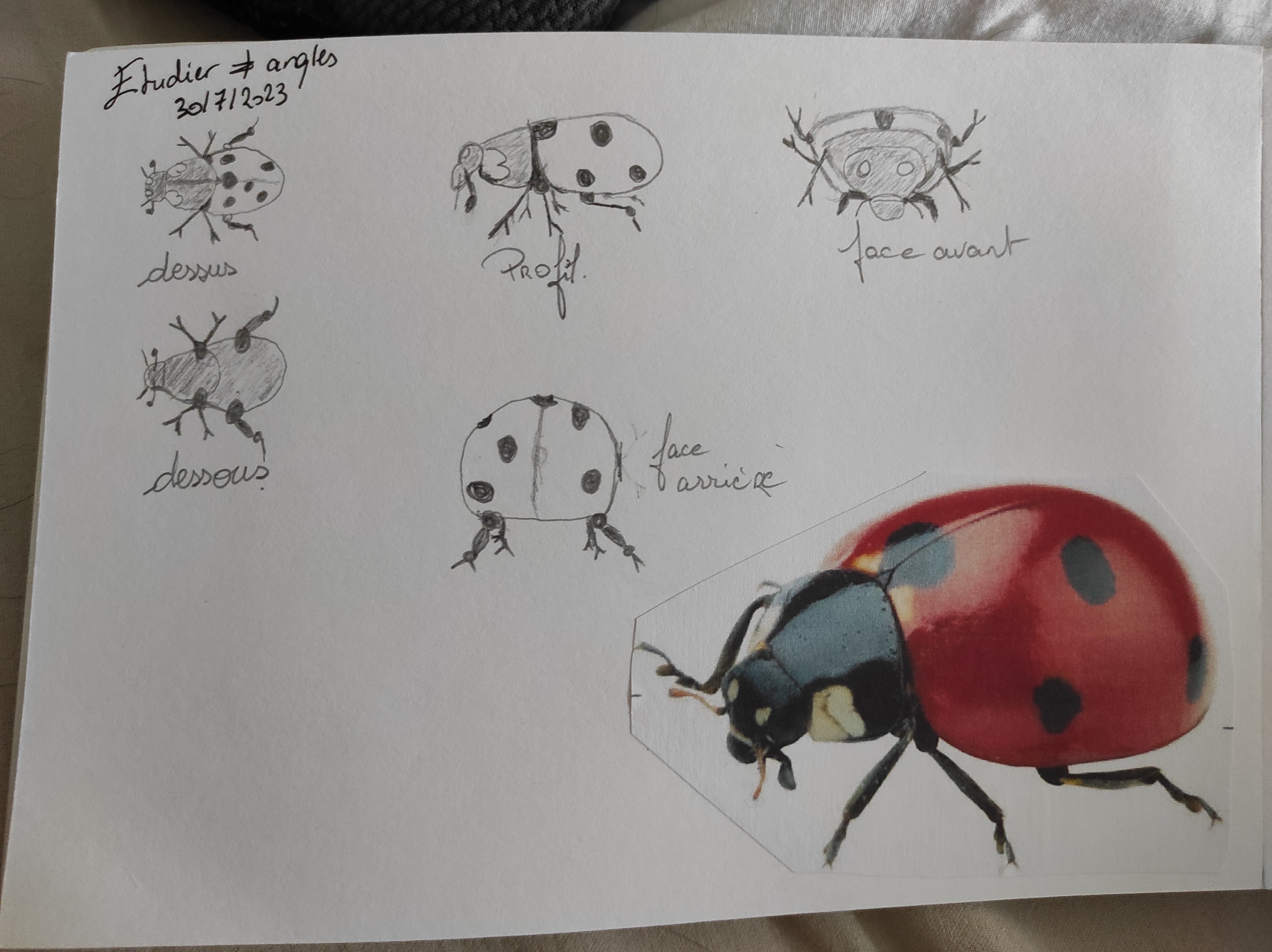 Merci pour l'exercice 1 sur l'appareil. J'ai fait la vue du dessus que je n'avais pas fait. Je vous envoie la ou les coccinelle🐞.
