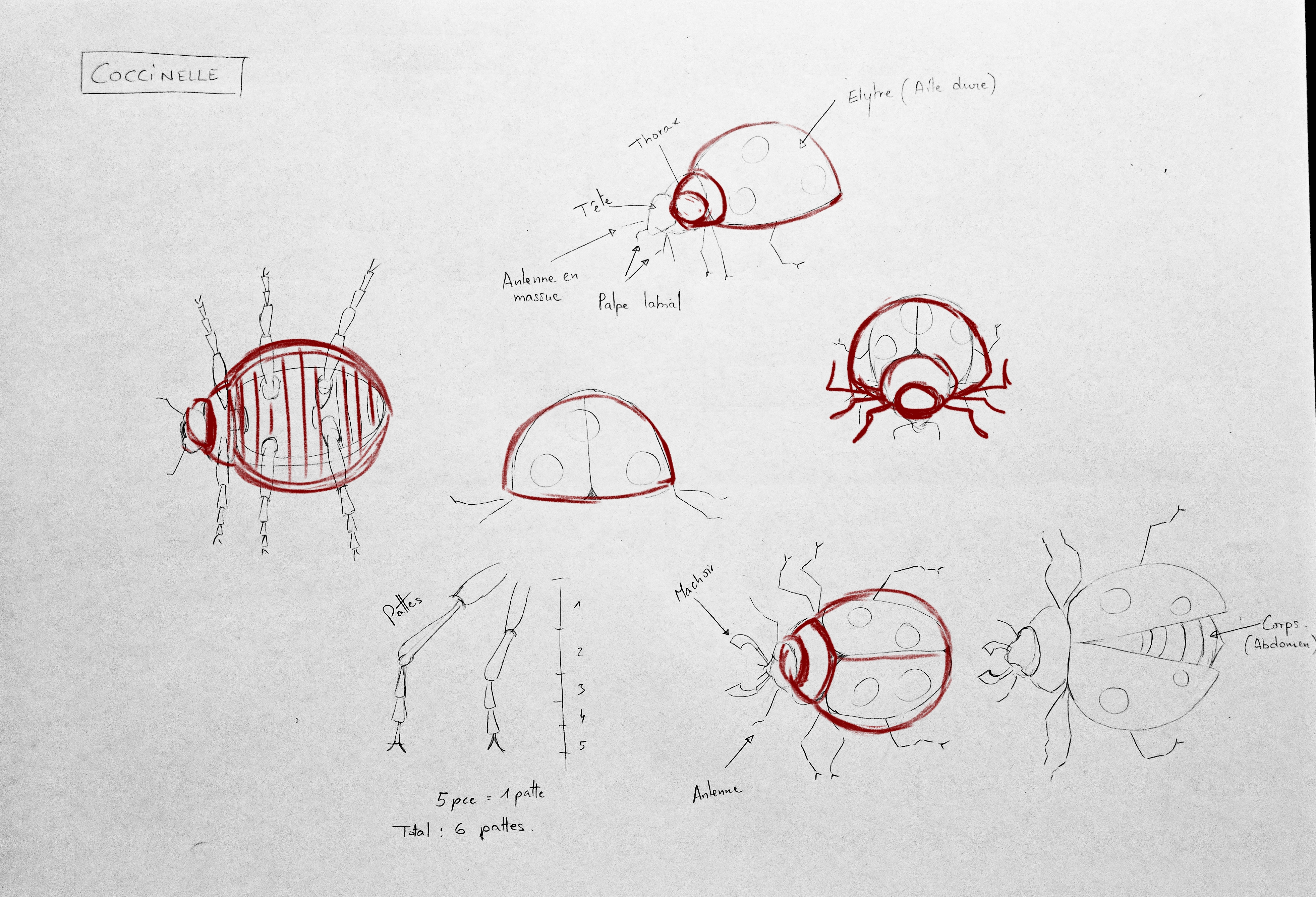 Voici mon essai sur la coccinelle. Si jamais, c est tête, thorax, abdomen 🤣