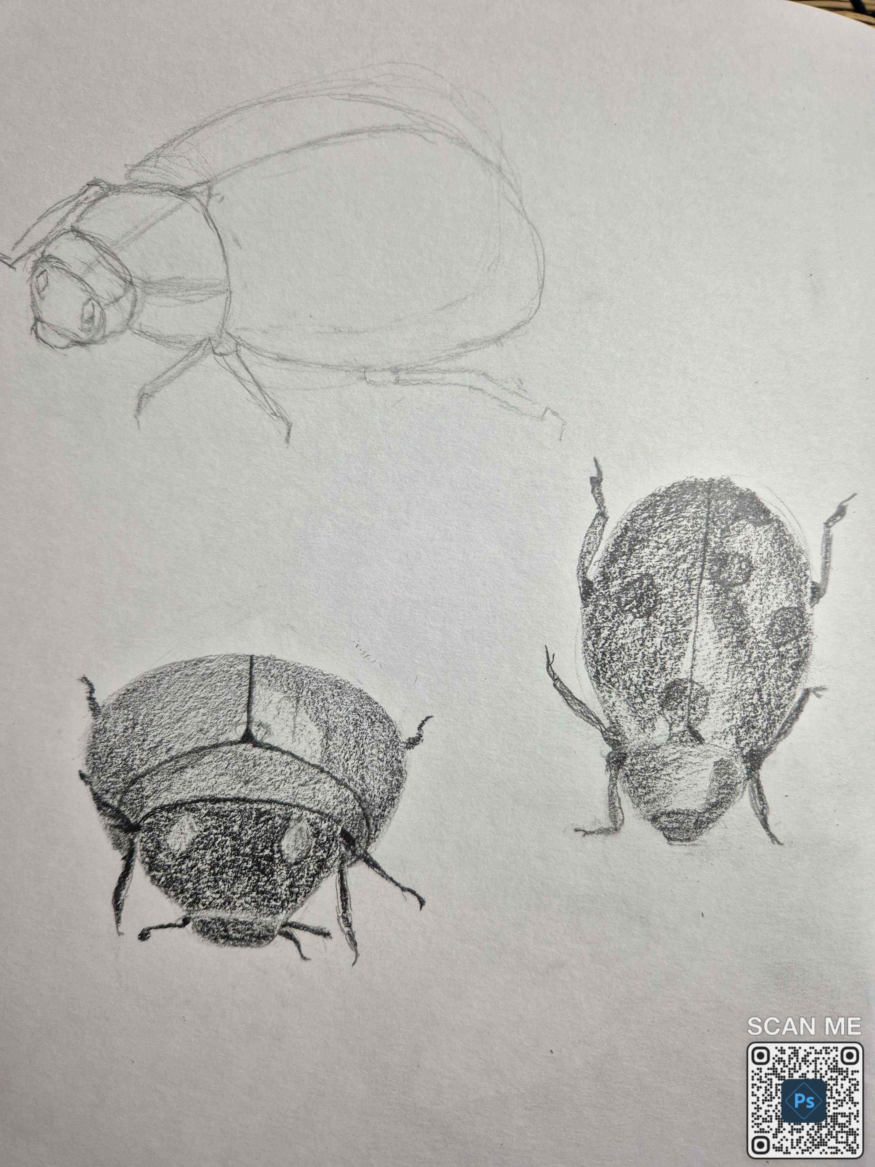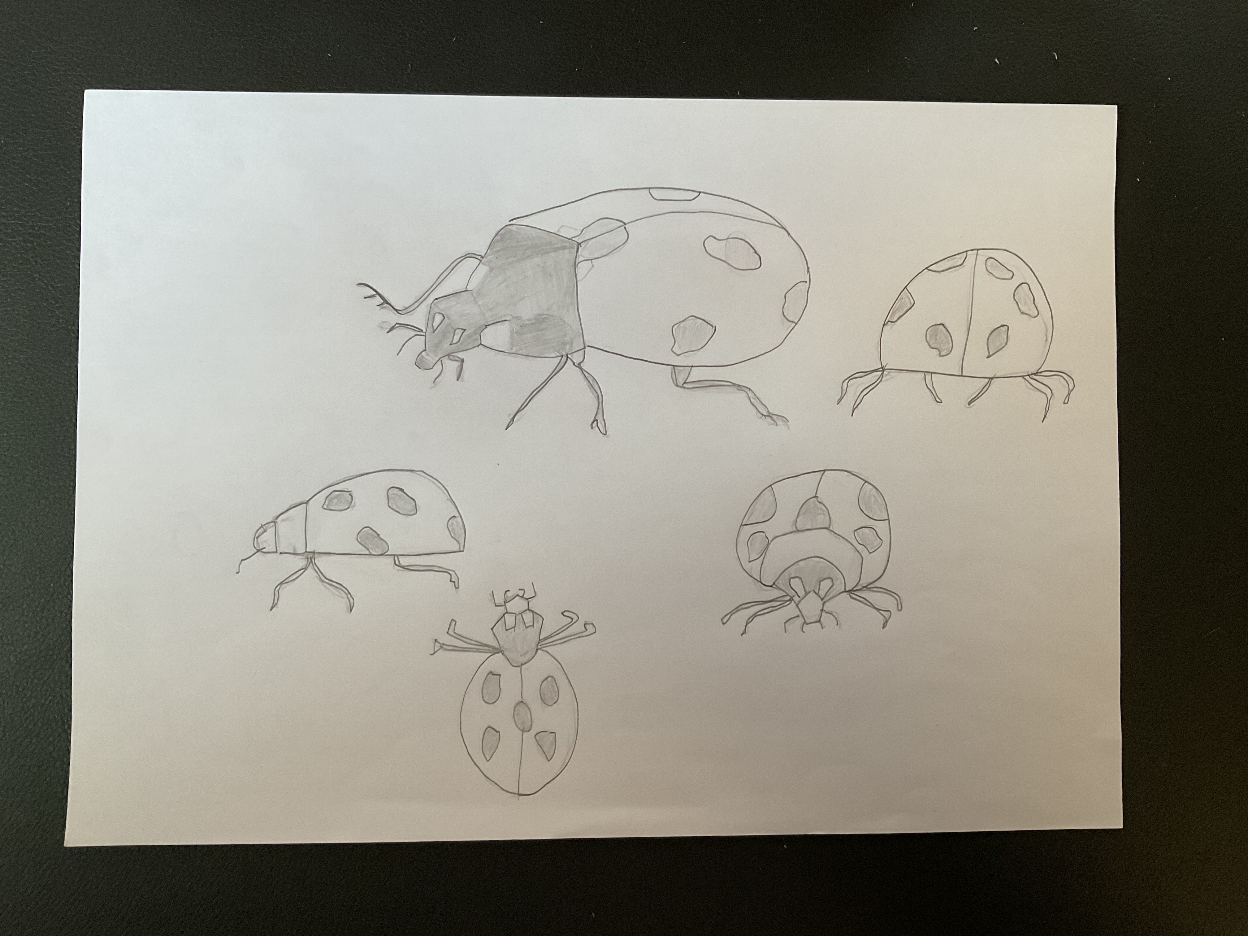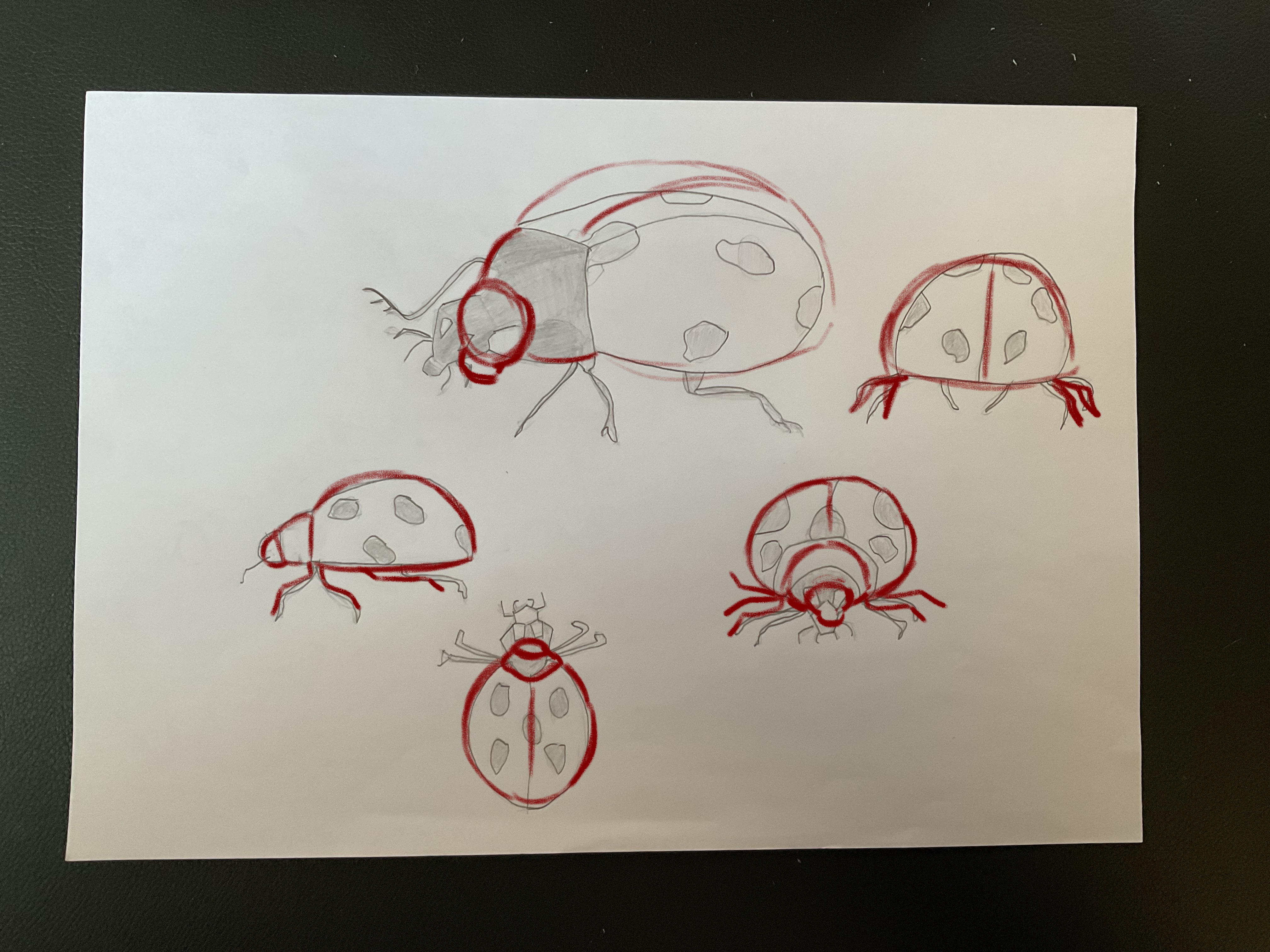 Hier ist meine Beobachtung für den Marienkäfer. Freuen Sie sich darauf, die Korrektur und Ihr Feedback zu sehen!