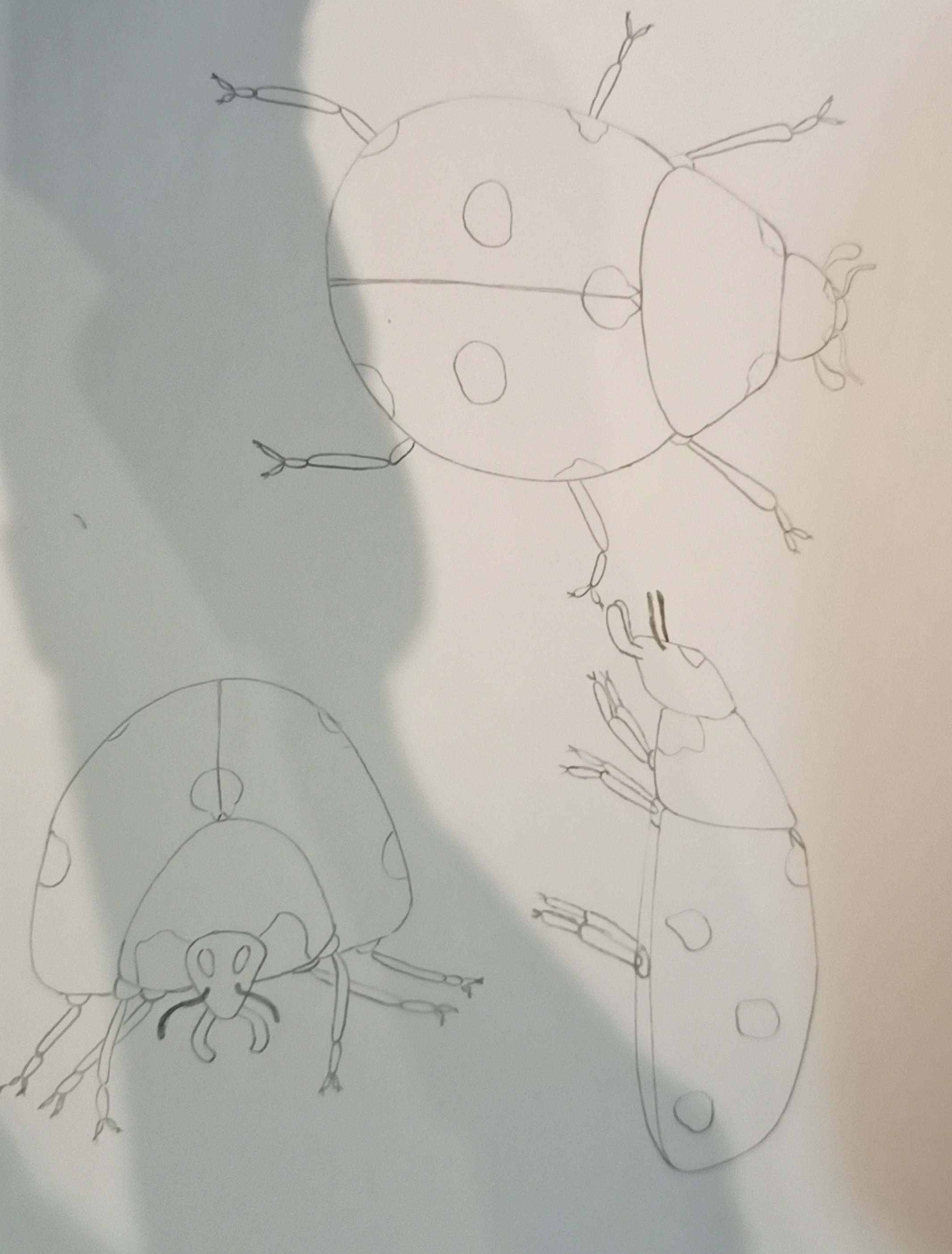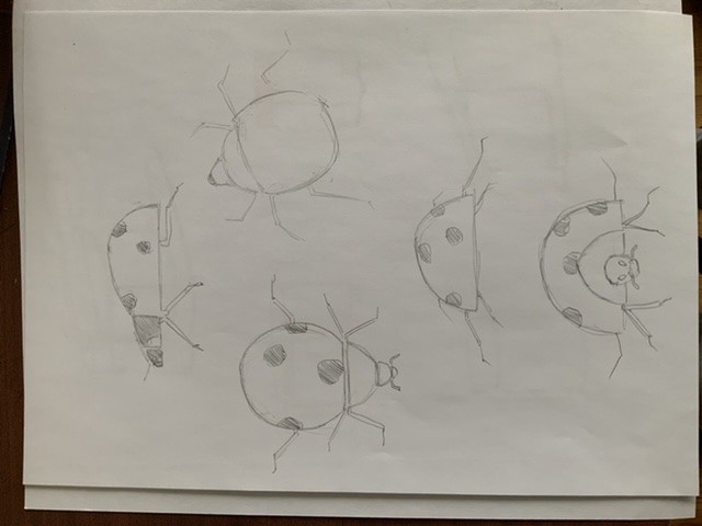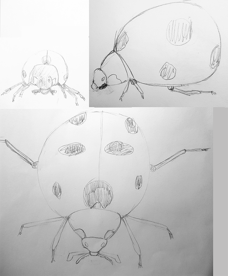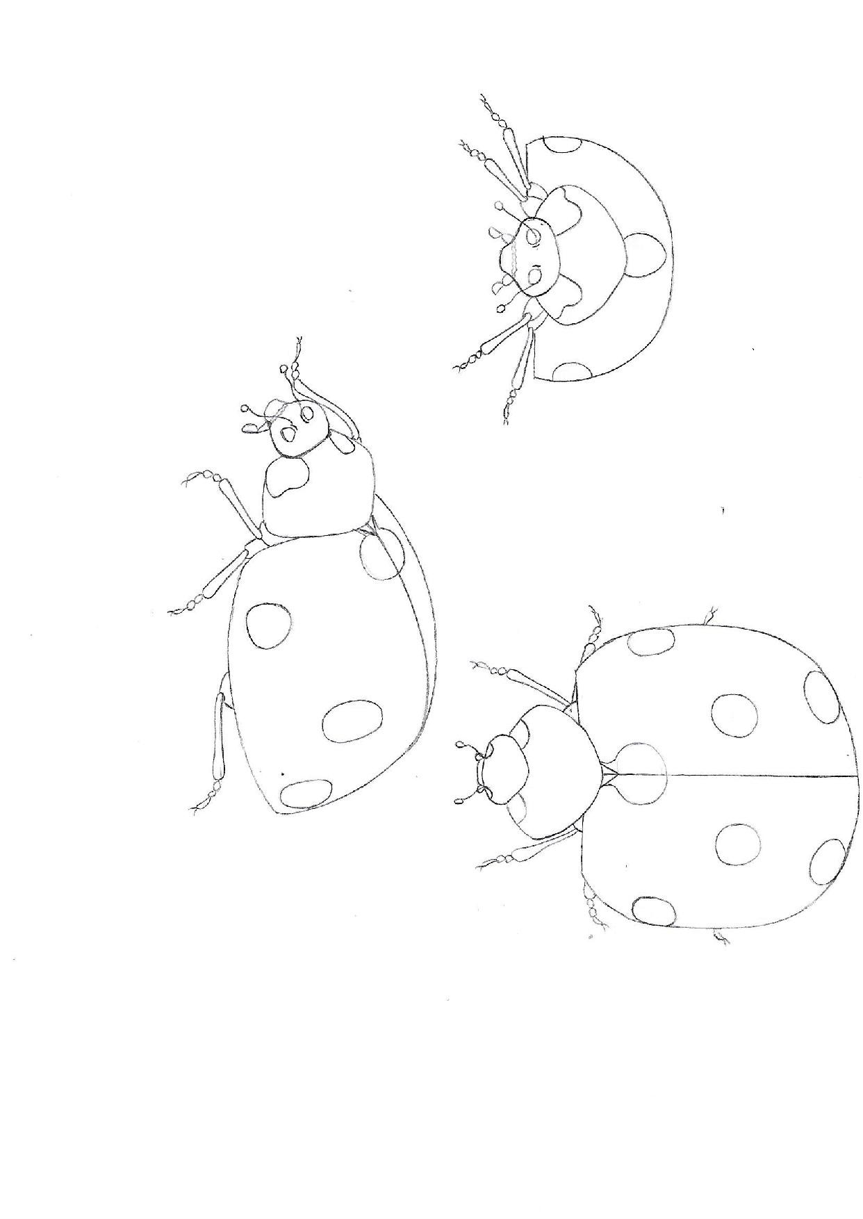 Hier sind meine Marienkäfer, ich weiß nicht, ob ich im Finish meiner Zeichnungen weiter gehen sollte.