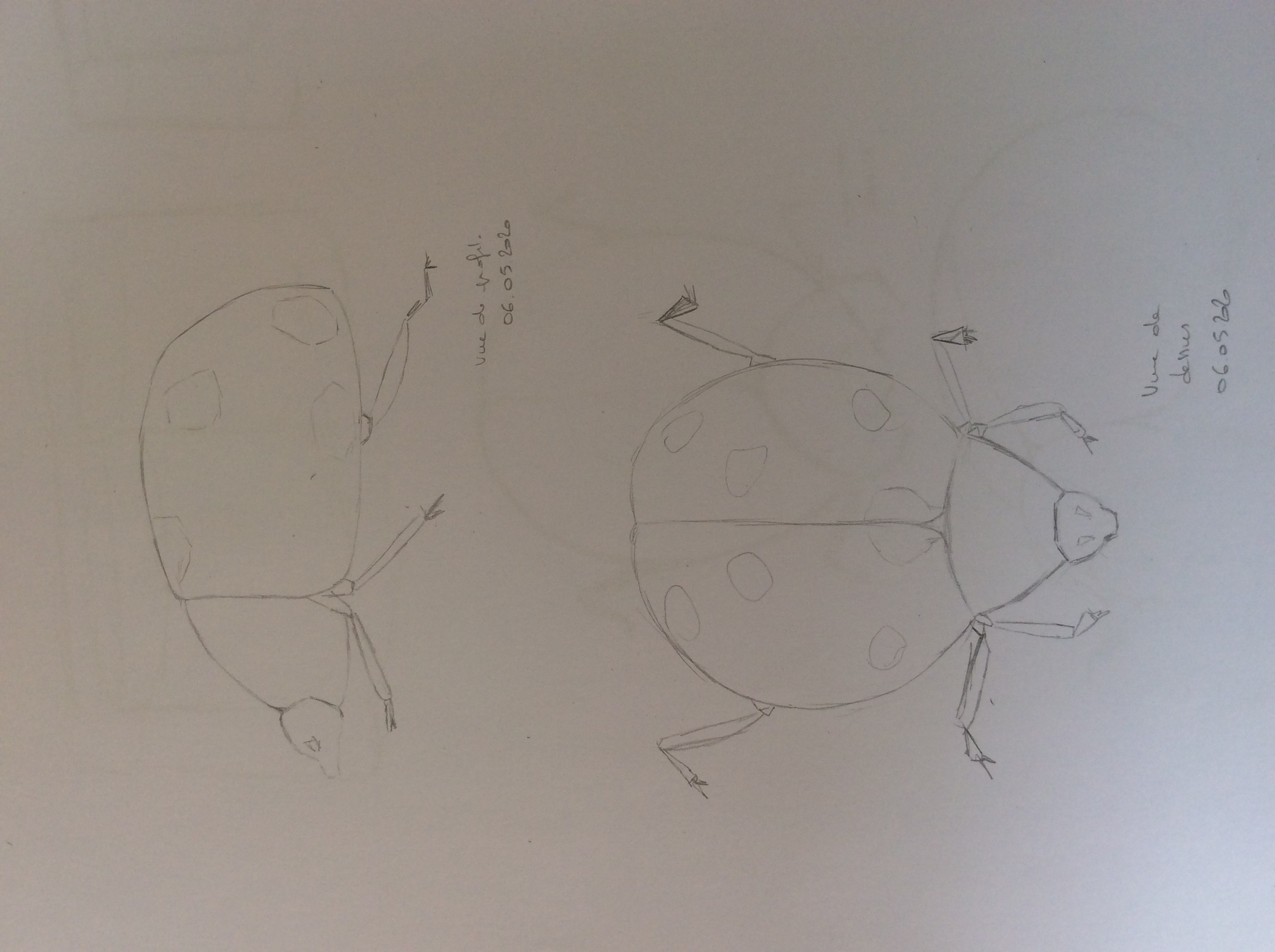Pas mal du tout! Tu as juste oublié de dessiner les pattes arrières sur ta coccinelle vue aérienne 😉 Mais sinon c'est très bien, tu peux passer au prochain objet!
