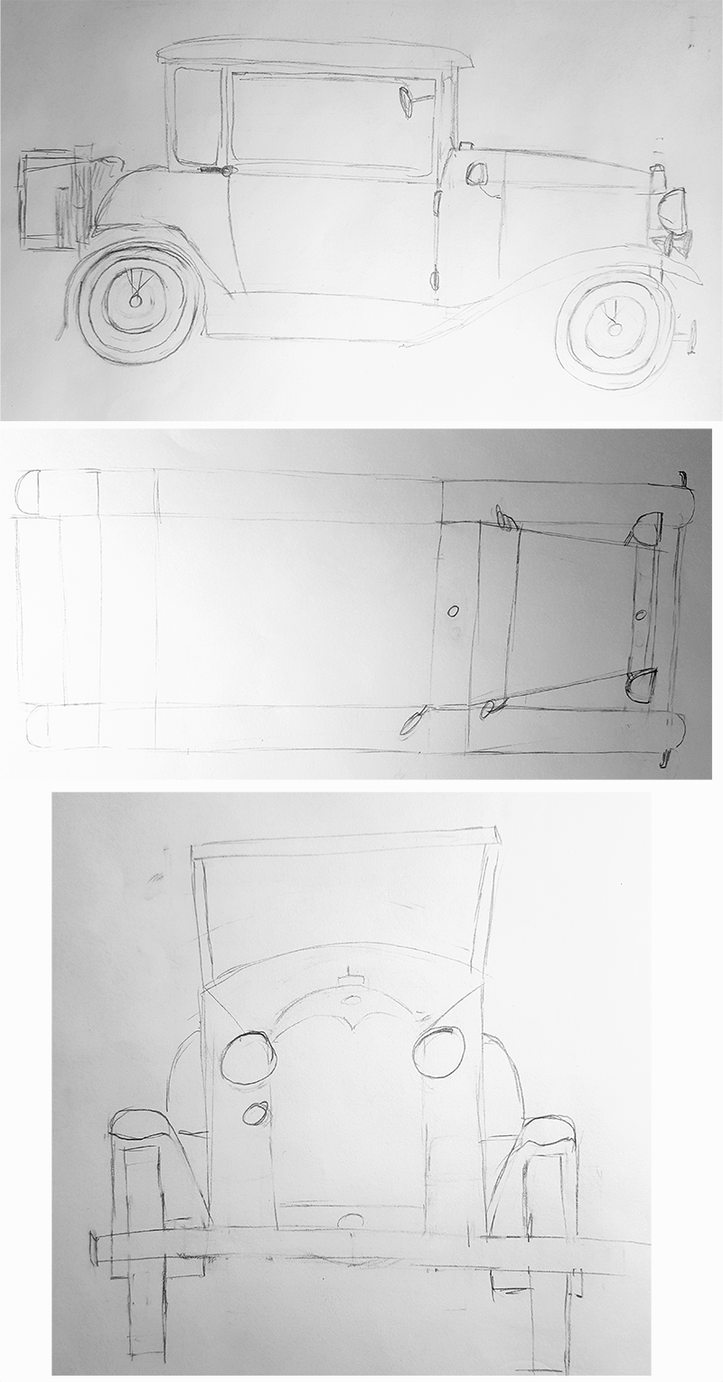 C'est bien! Juste pour la vue de dessus, le corps est un poil trop gros, et au final le corps et le cou doivent se "relier", ici je trouve que l'espace entre les deux est un peu trop important! Mais continue comme ça, parce que c'est pas mal du tout! Tu peux passer à la voiture maintenant! 😇