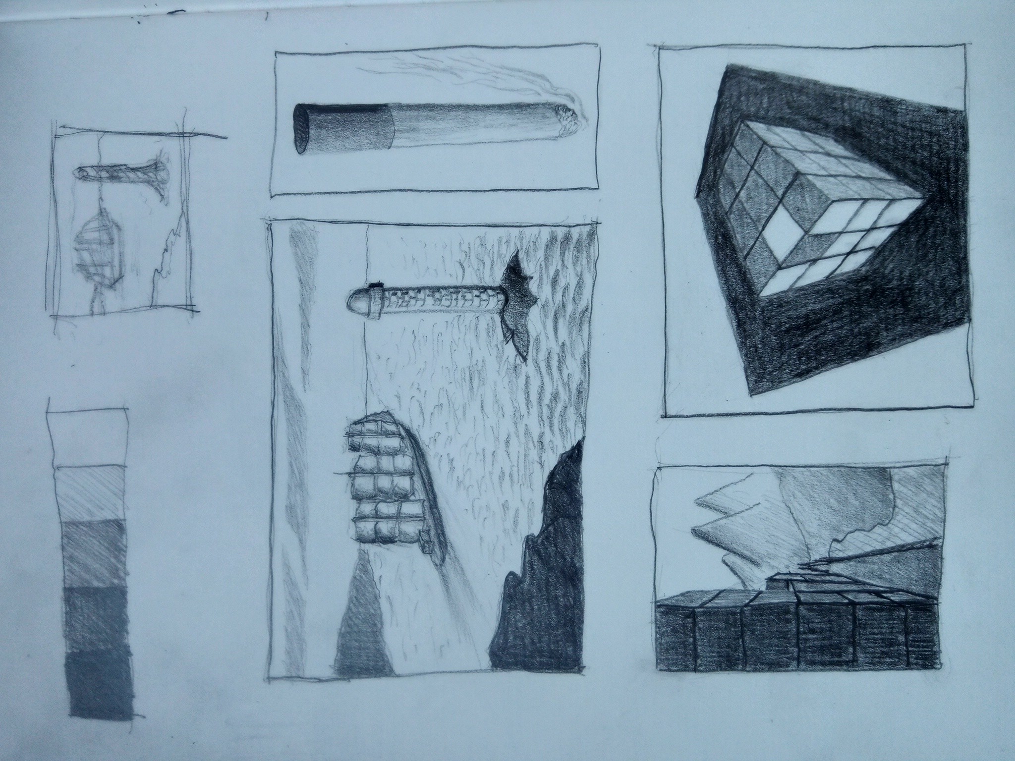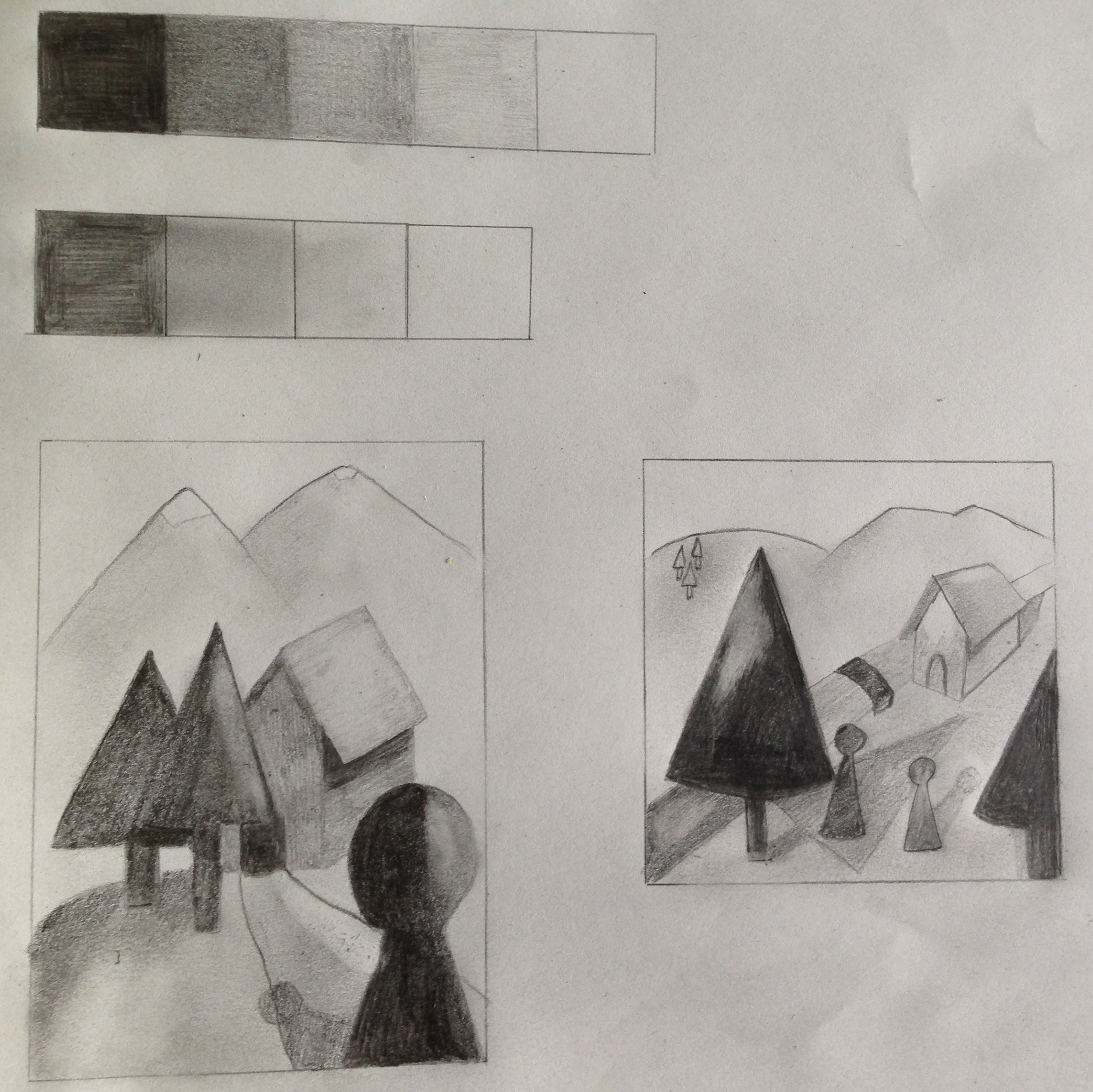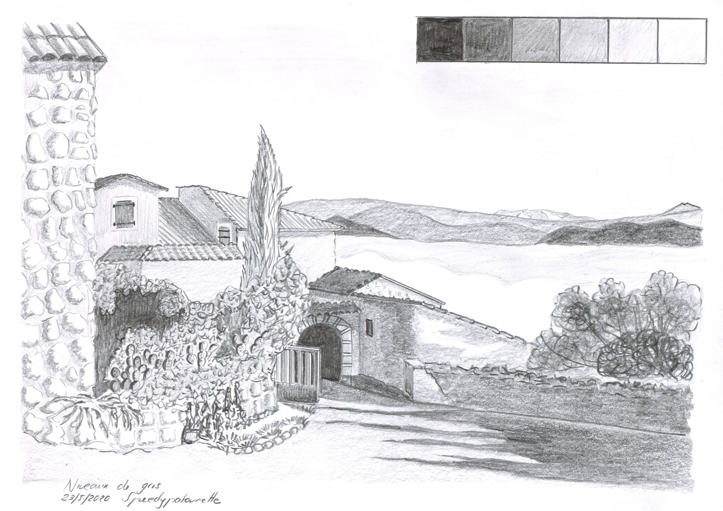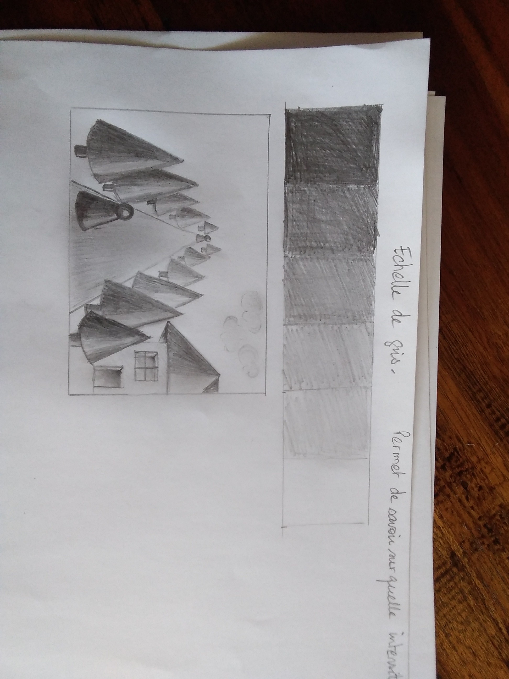 J'ai mixé travail en perspective, niveau de gris... Valeur de trait...