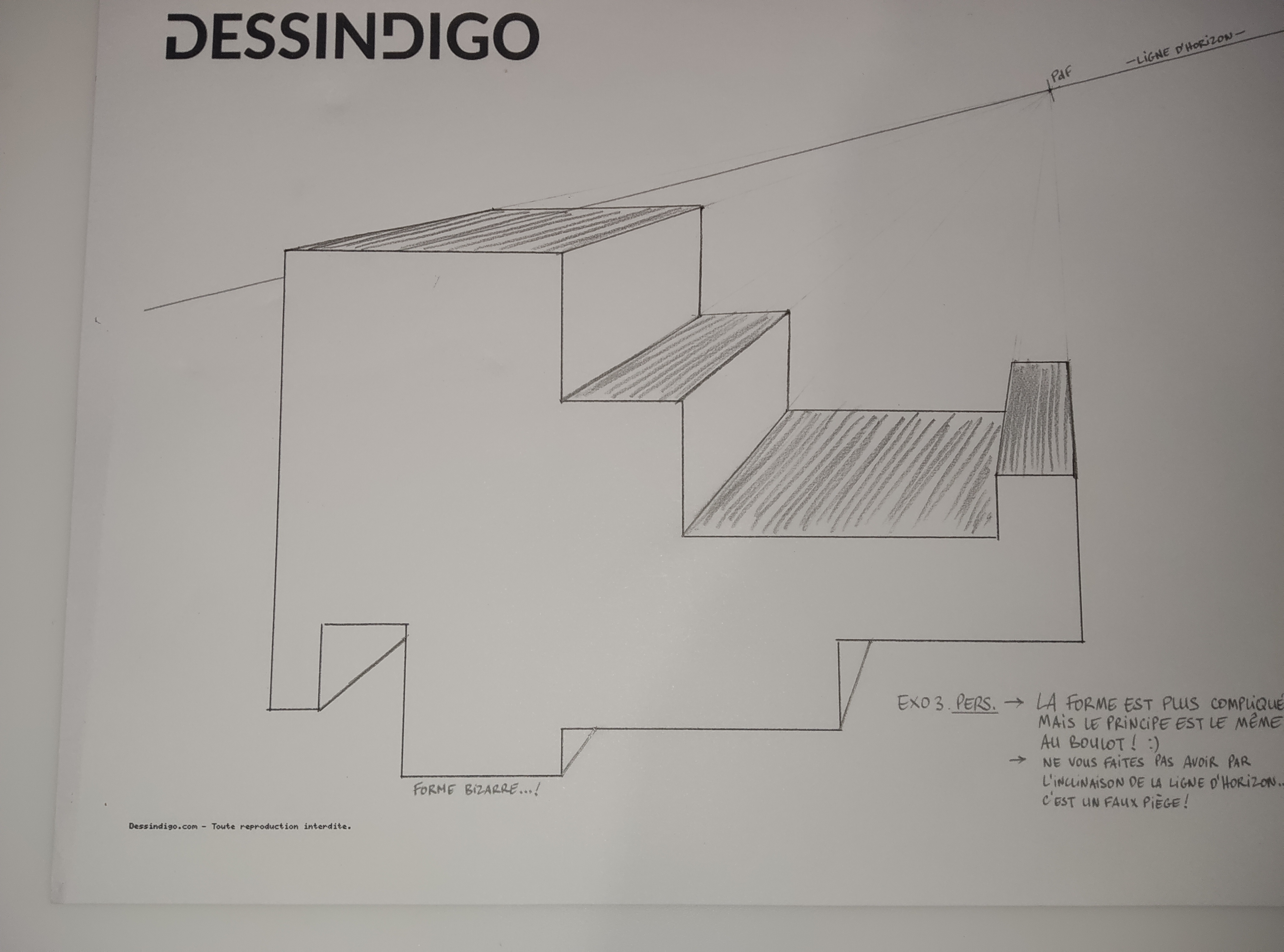 Salut Ulya, et joyeuse pâque de même! Super ton exercice, c'est quasi sans faute! Car juste pour chipoter, une de tes lignes n'est pas bien dans l'axe de ton point de fuite ;)