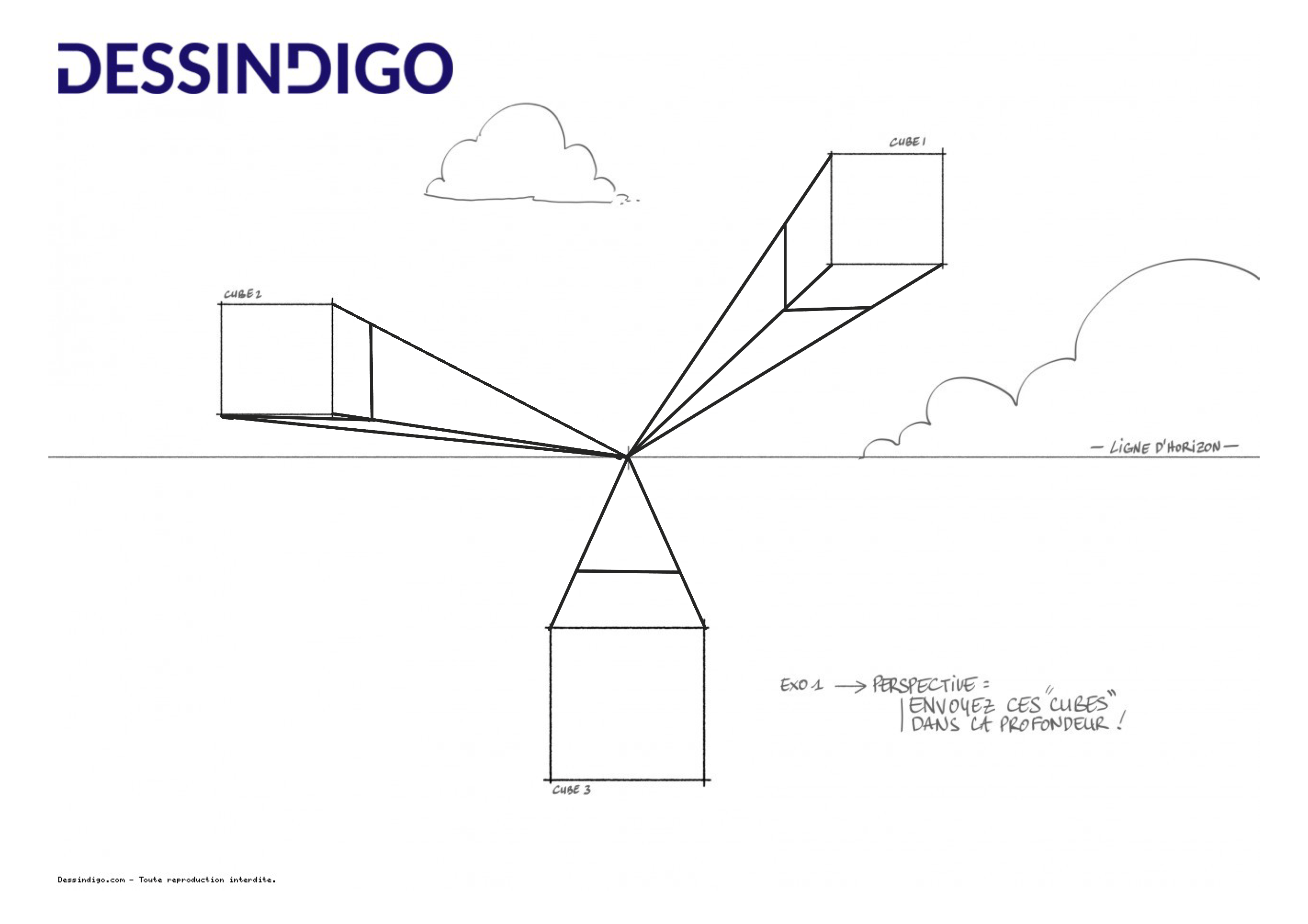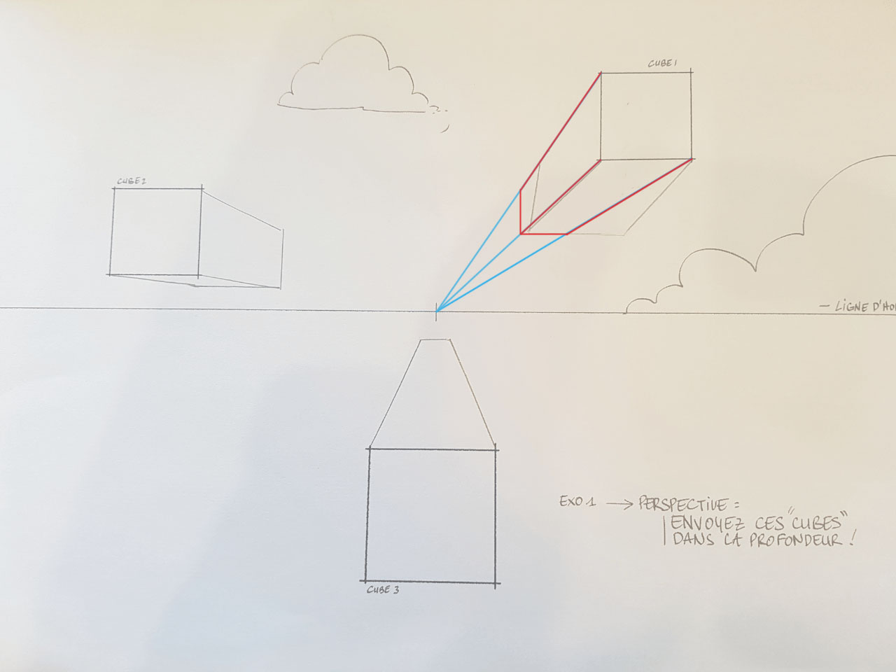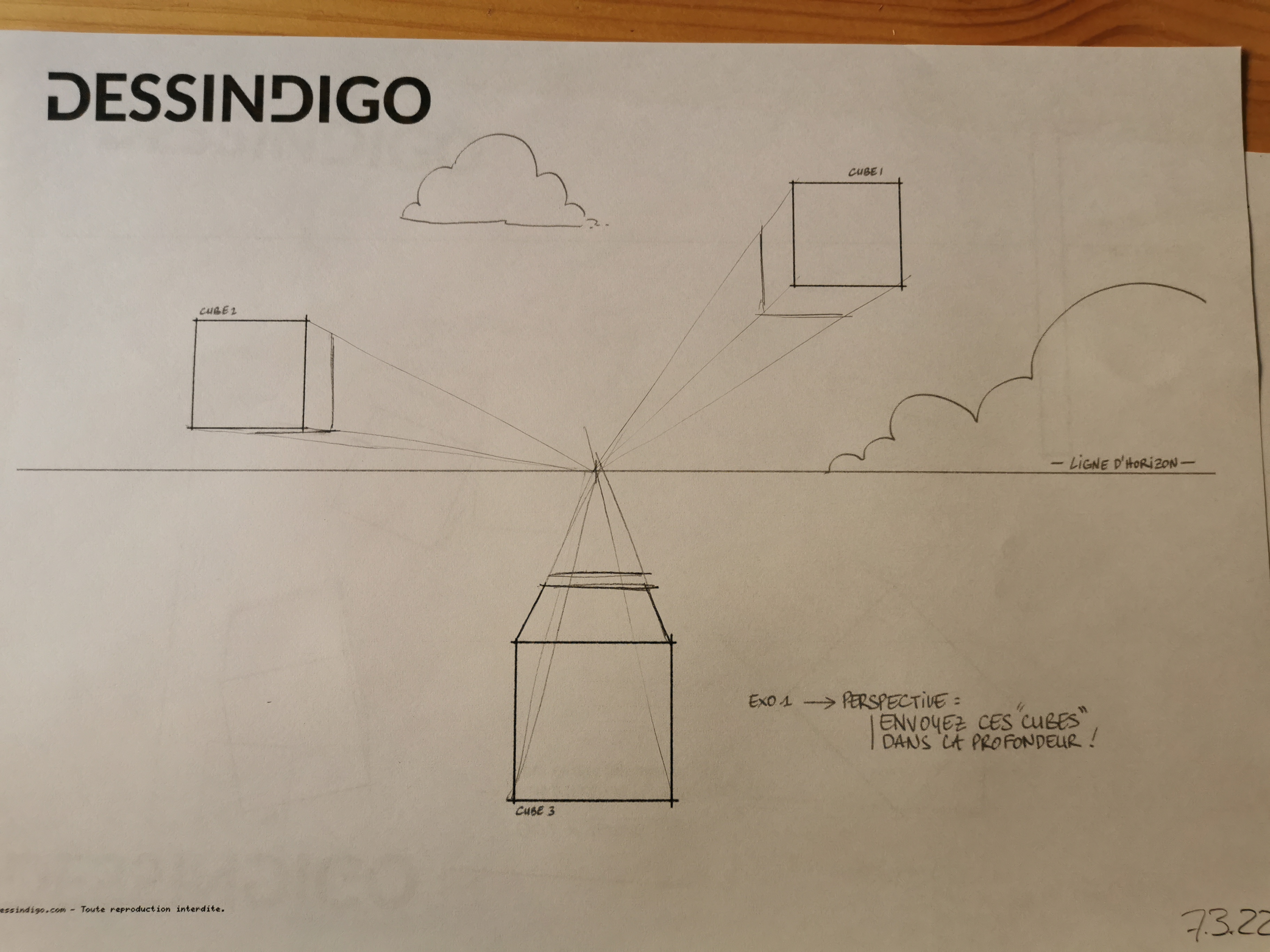 Bonjour, Tu pouvais faire la longueur que tu voulais ça pas de souci tant que ta perspective est bonne! Ce qui n'est pas le cas sur le cube 1. Je t'ai tout détaillé dans mon dessin ^^