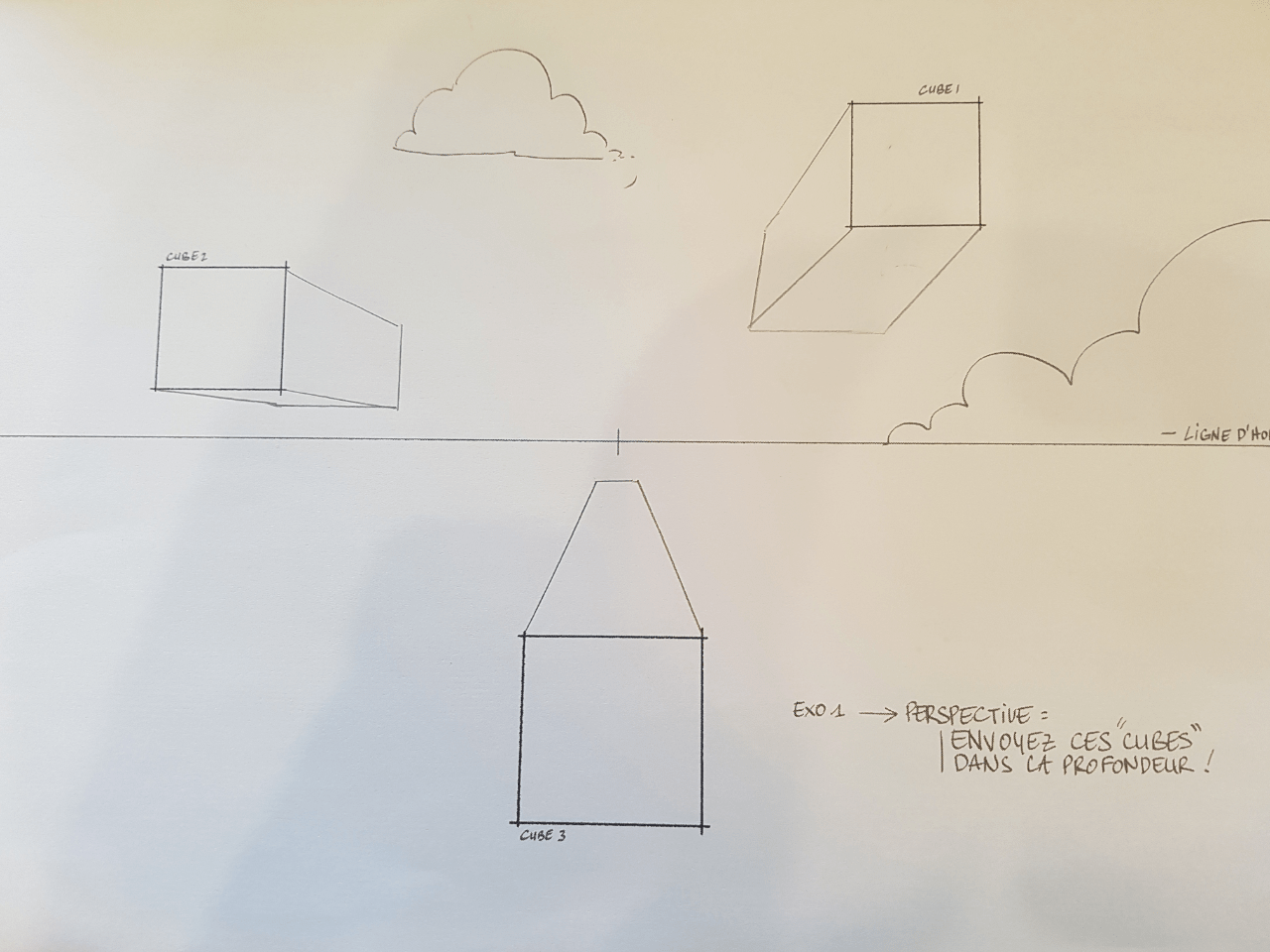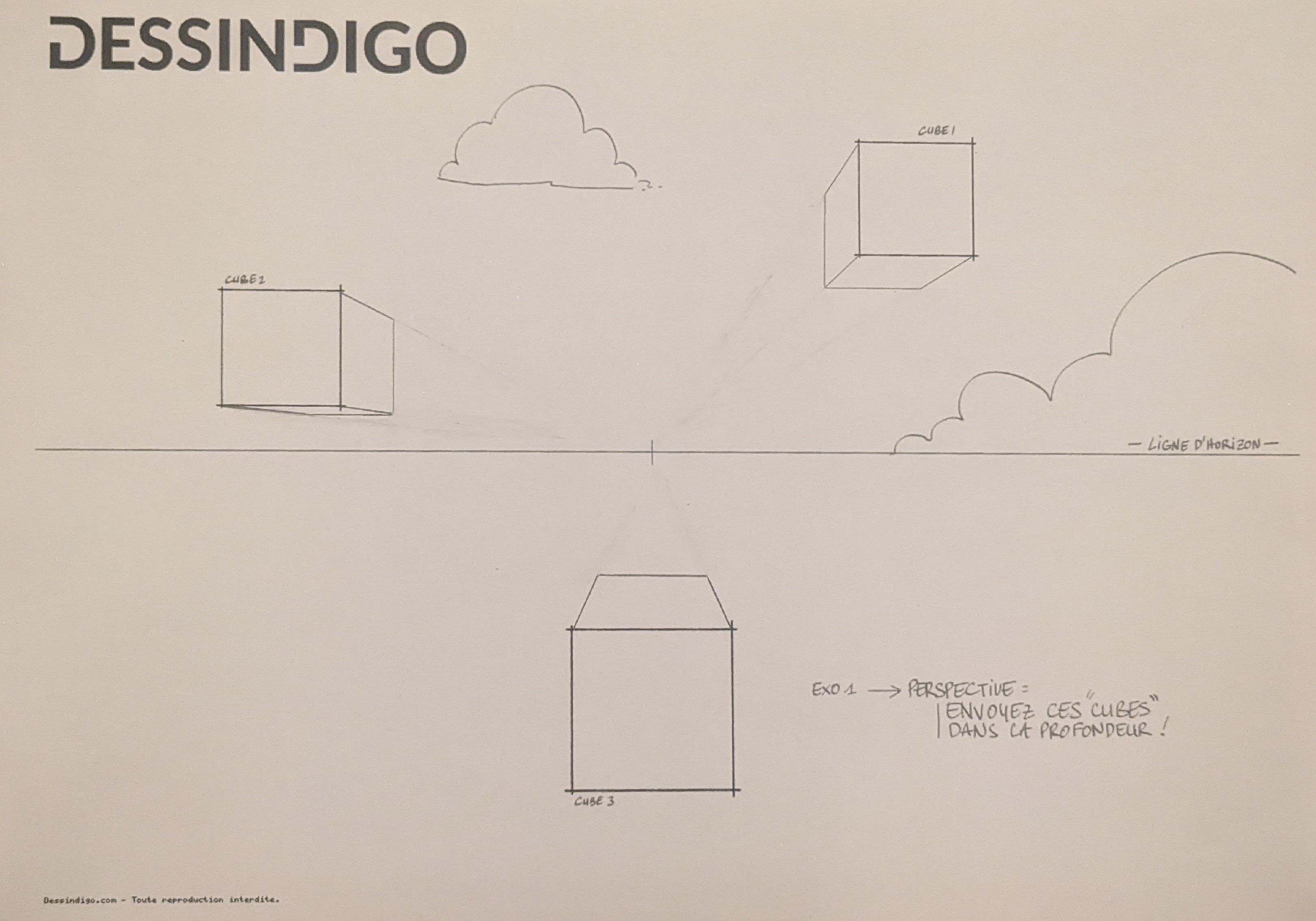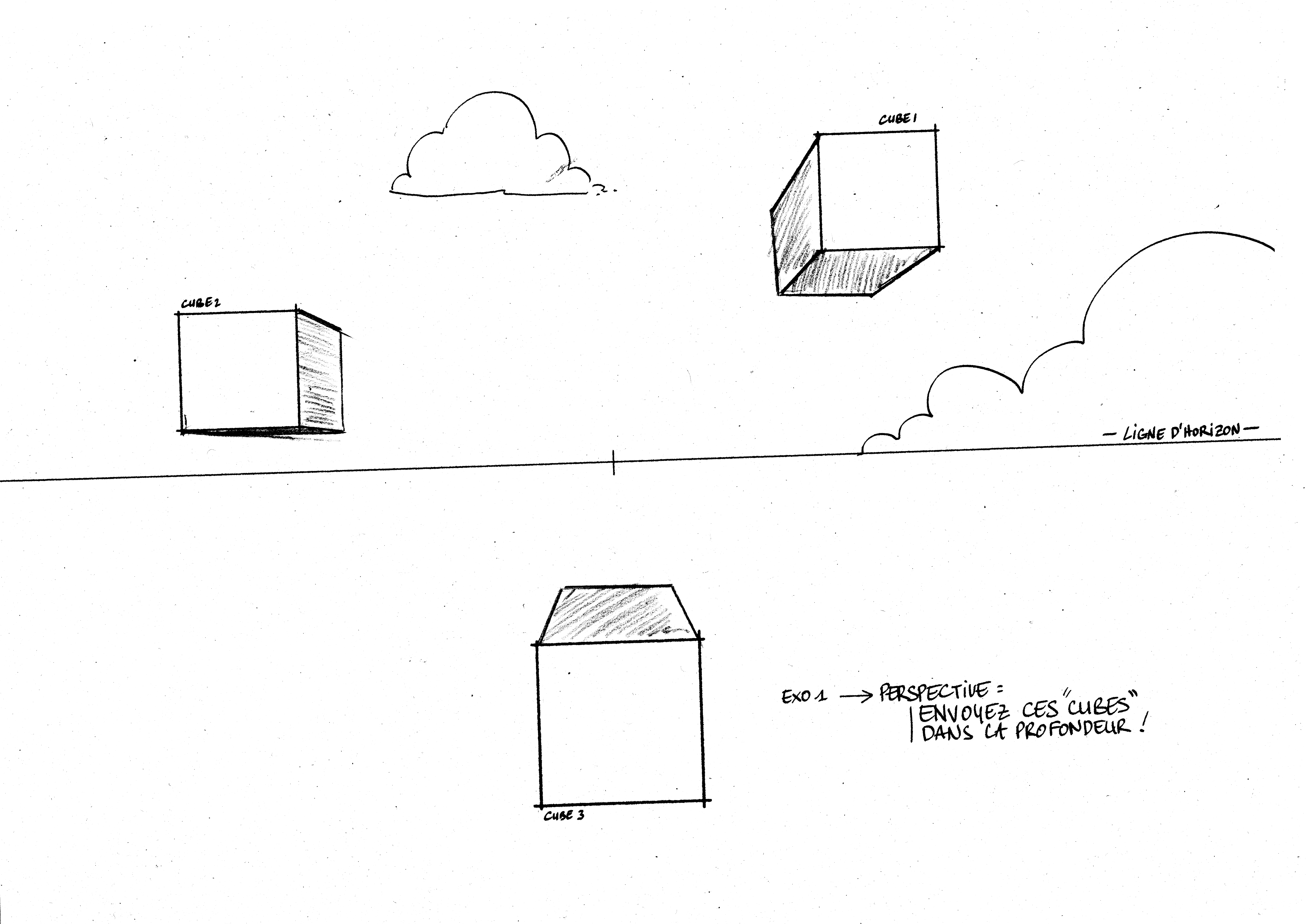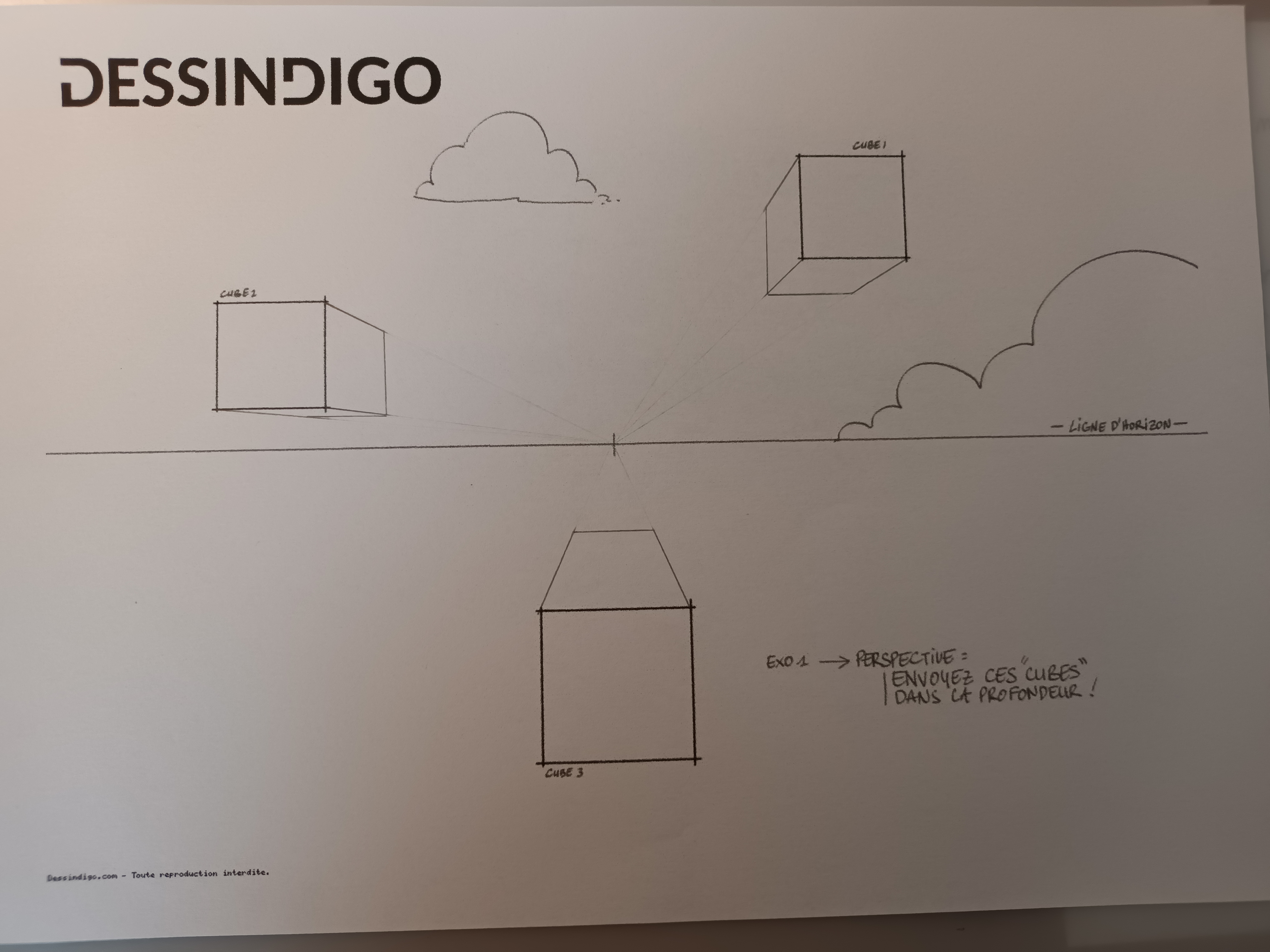 Bonjour, Tu pouvais faire la longueur que tu voulais ça pas de souci tant que ta perspective est bonne! Ce qui n'est pas le cas sur le cube 1. Je t'ai tout détaillé dans mon dessin ^^