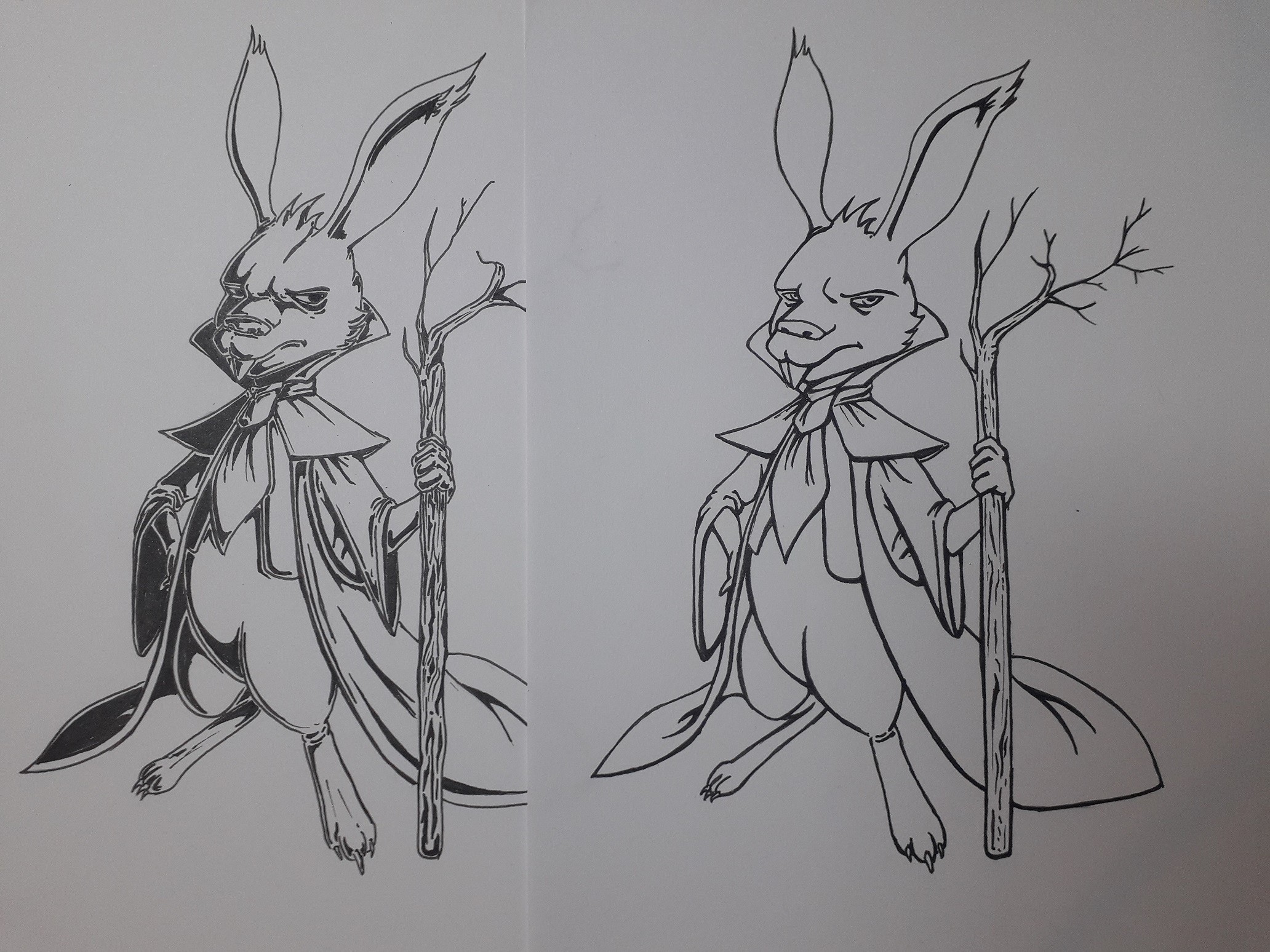 Ton essai avec les aplats de noirs est très cool aussi :3 Tu peux tester d'autres types d'encrages de trait si tu veux, mais l'exercice de droite est bon pour moi ;p