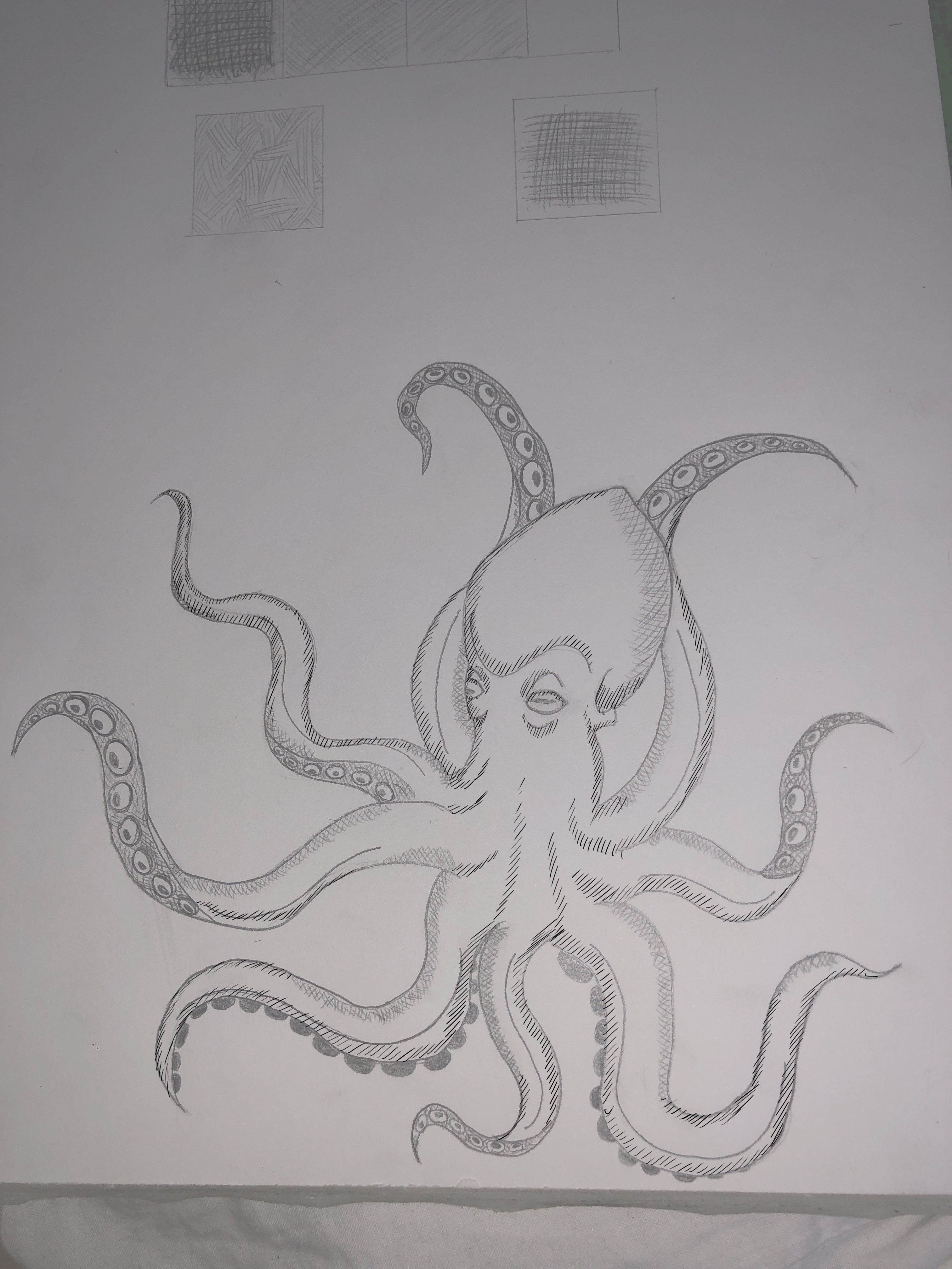 Bon je dois admettre que j'ai vraiment eu de la peine avec les hachures et c'est toujours pas ça. Du coup je me suis dit qu'il fallait que j'en fasse un maximum mais j'ai pas l'impression de trouver la bonne technique. J'ai même essayé des rondures (pas super concluant). Je sais pas si c'est parce que je vais trop vite (il faudrait que ce soit plus paralèlle?) et j'ai spécialement de la peine pour faire 1. les grandes surfaces 2. les tons clairs.