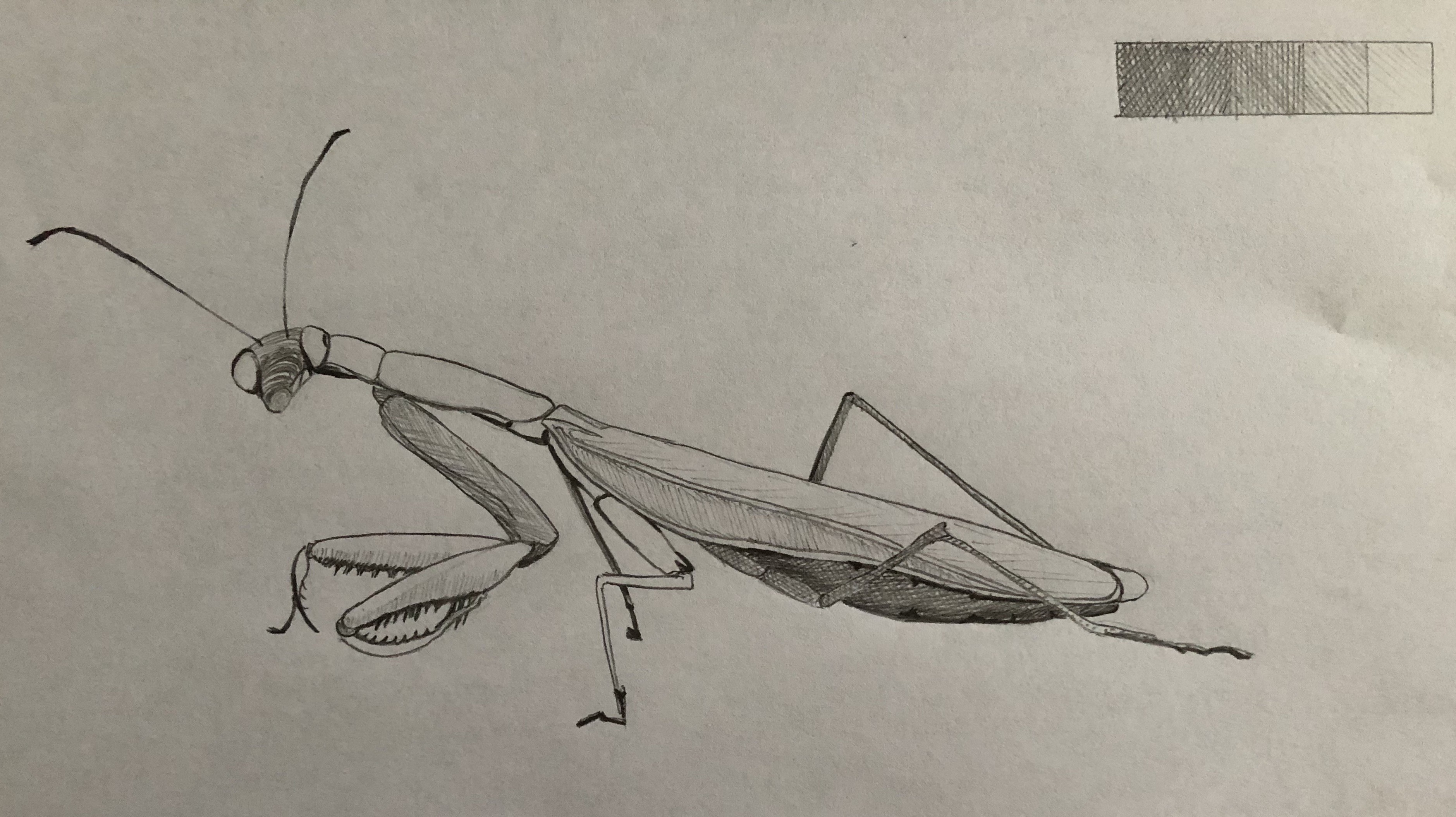 Ça marche plutôt bien, mais attention à toujours utiliser le même système de hachures : sur la tête tu fais des hachures qui suivent le volume, alors que tu ne l'as pas fait sur le reste. Sinon c'est cool 👍