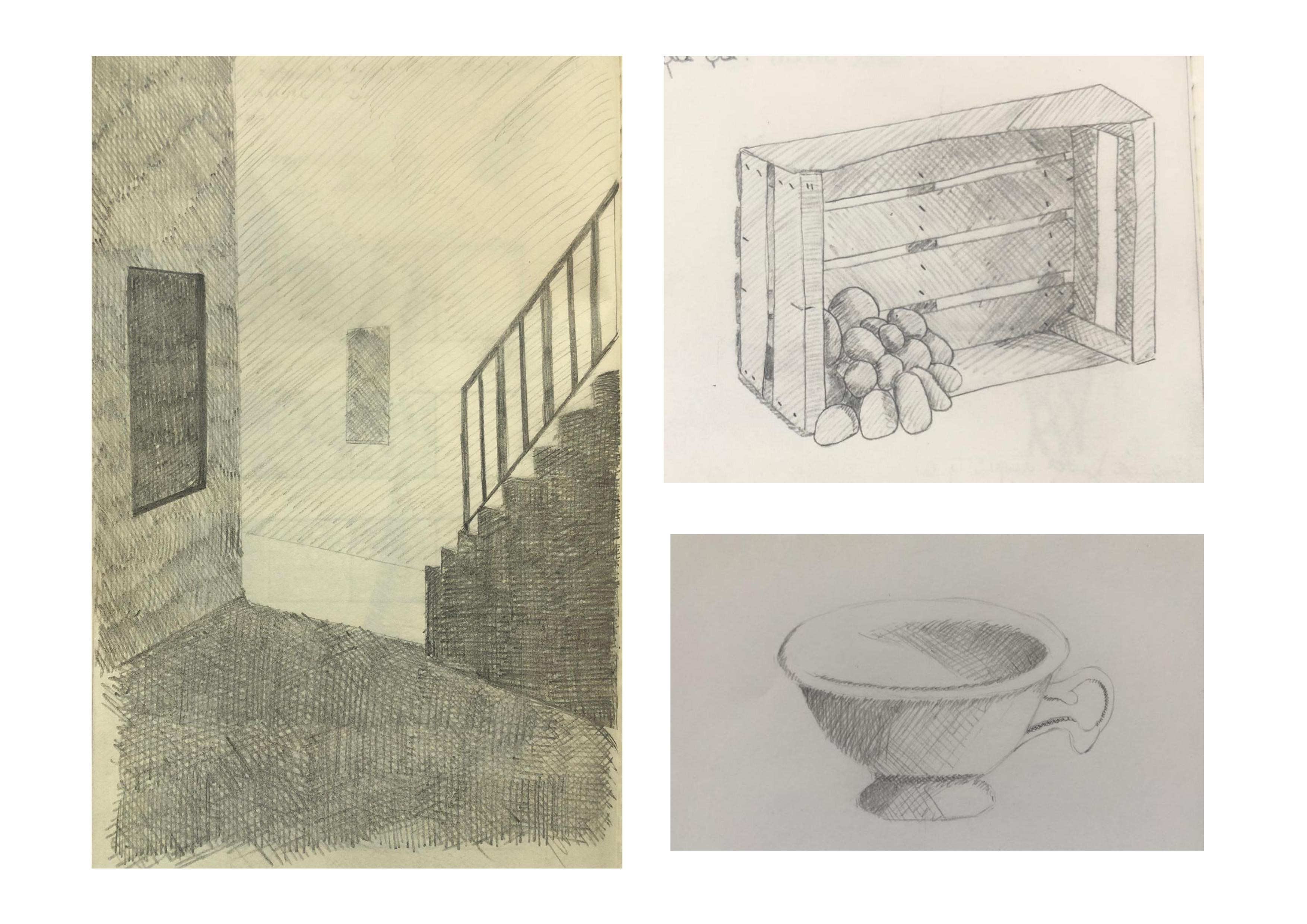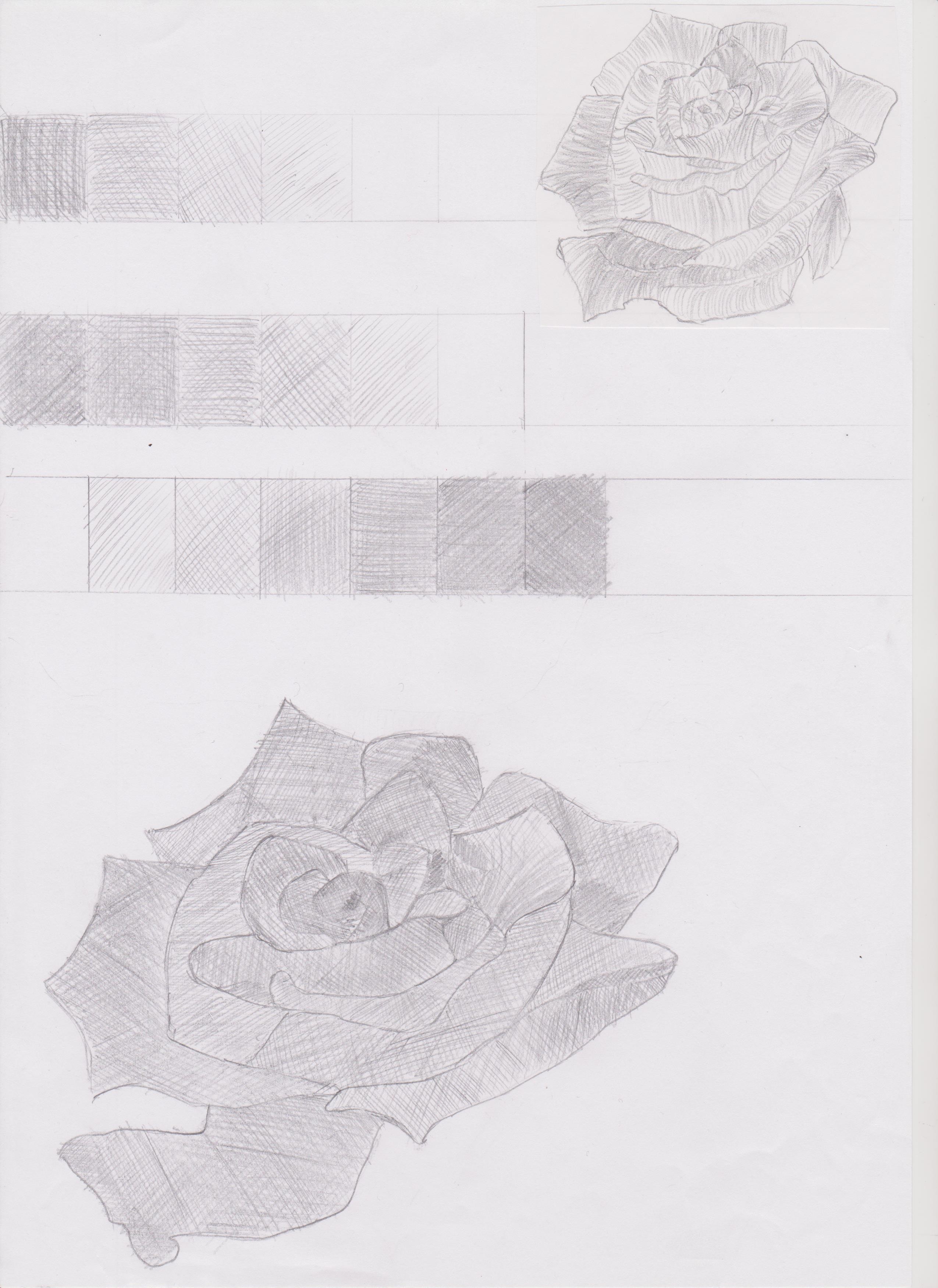 > On ne croise jamais les hachures de manière perpendiculaire. On les incline un peu plus à chaque fois.
