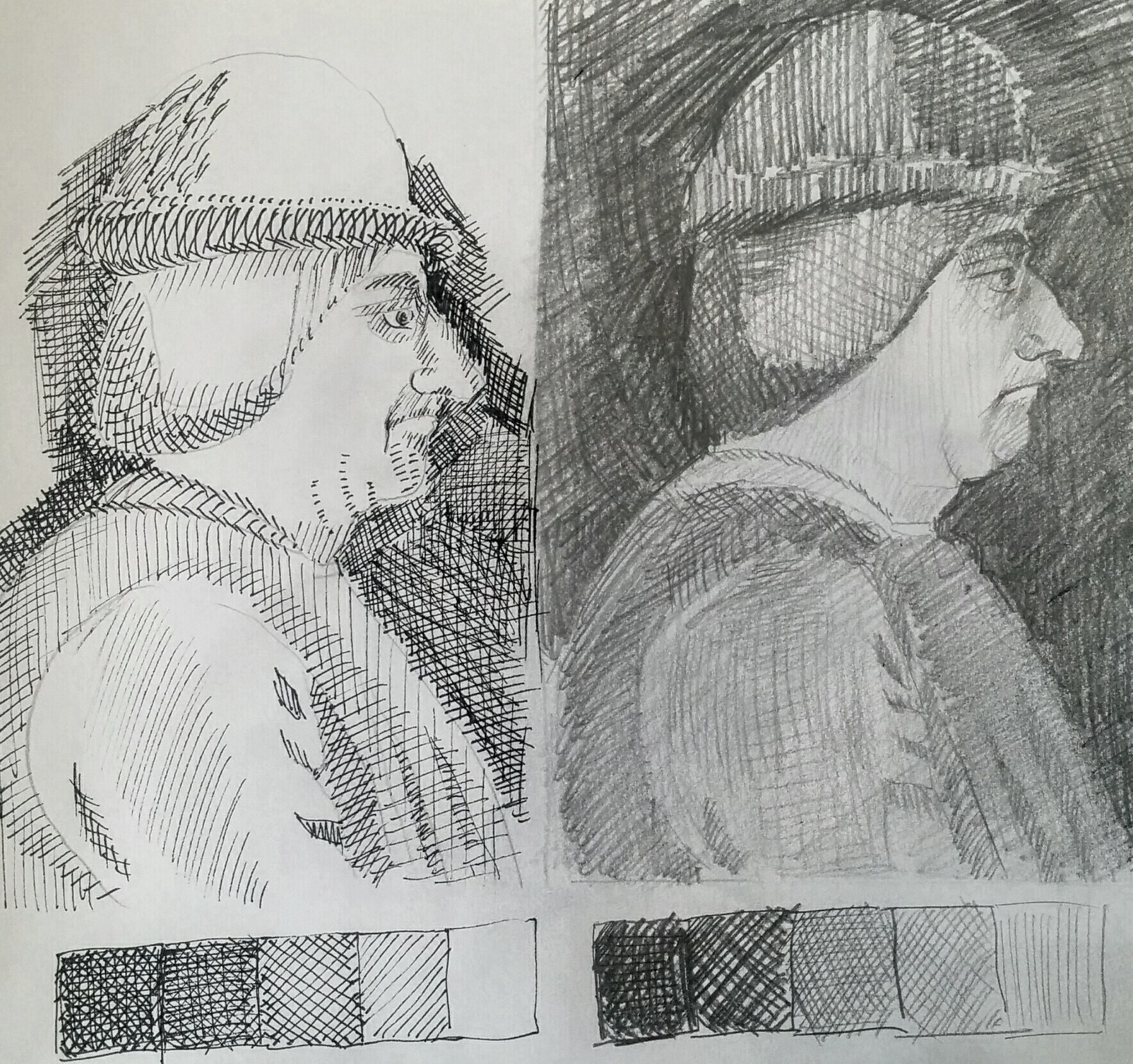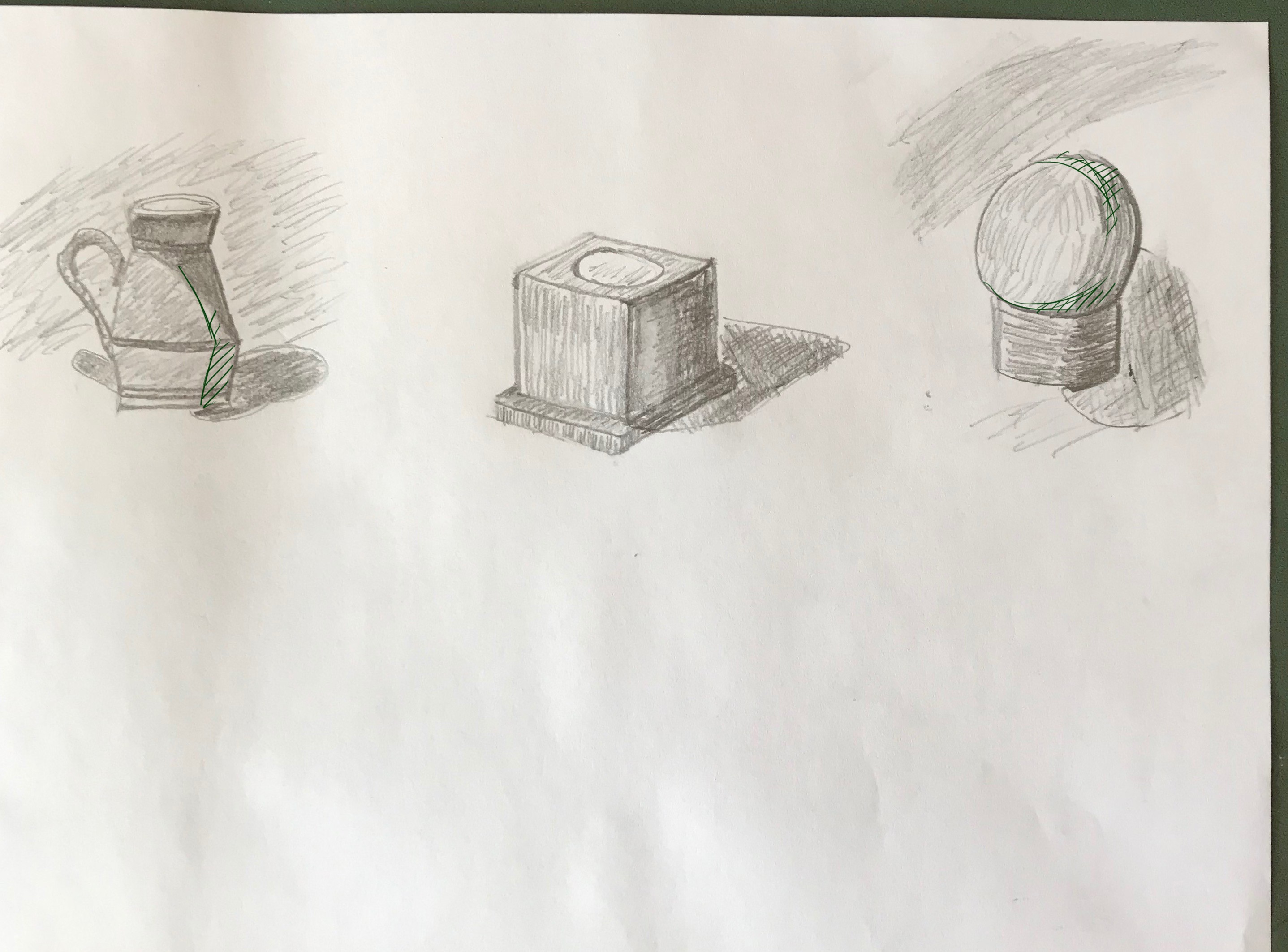 Tu sembles bien placer les quelques valeurs que j'aperçois, mais je te joins malgré tout ce petit tuto sur les hachures pour tes futurs dessins ;p