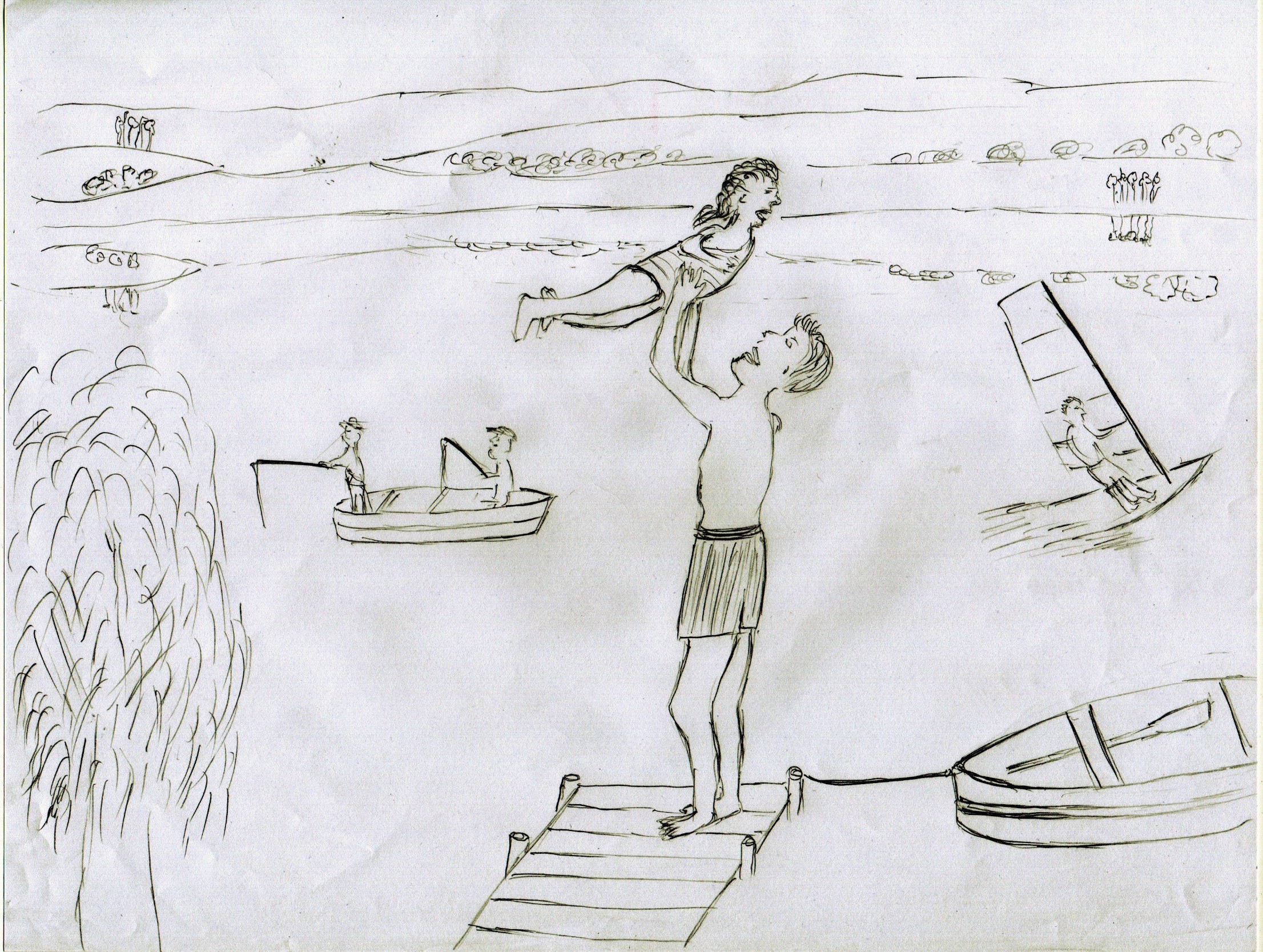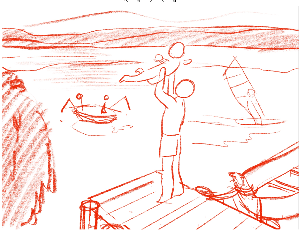 La composition en elle-même fonctionne, mais je vois ici plutôt un problème de structure et notamment de perspective. Ça manque de rigueur en terme de perspective et à cause de ça, le plan de l'eau est très indéfini, et de ce fait les éléments qui sont dans l'eau n'ont pas l'air d'être sur le même plan...