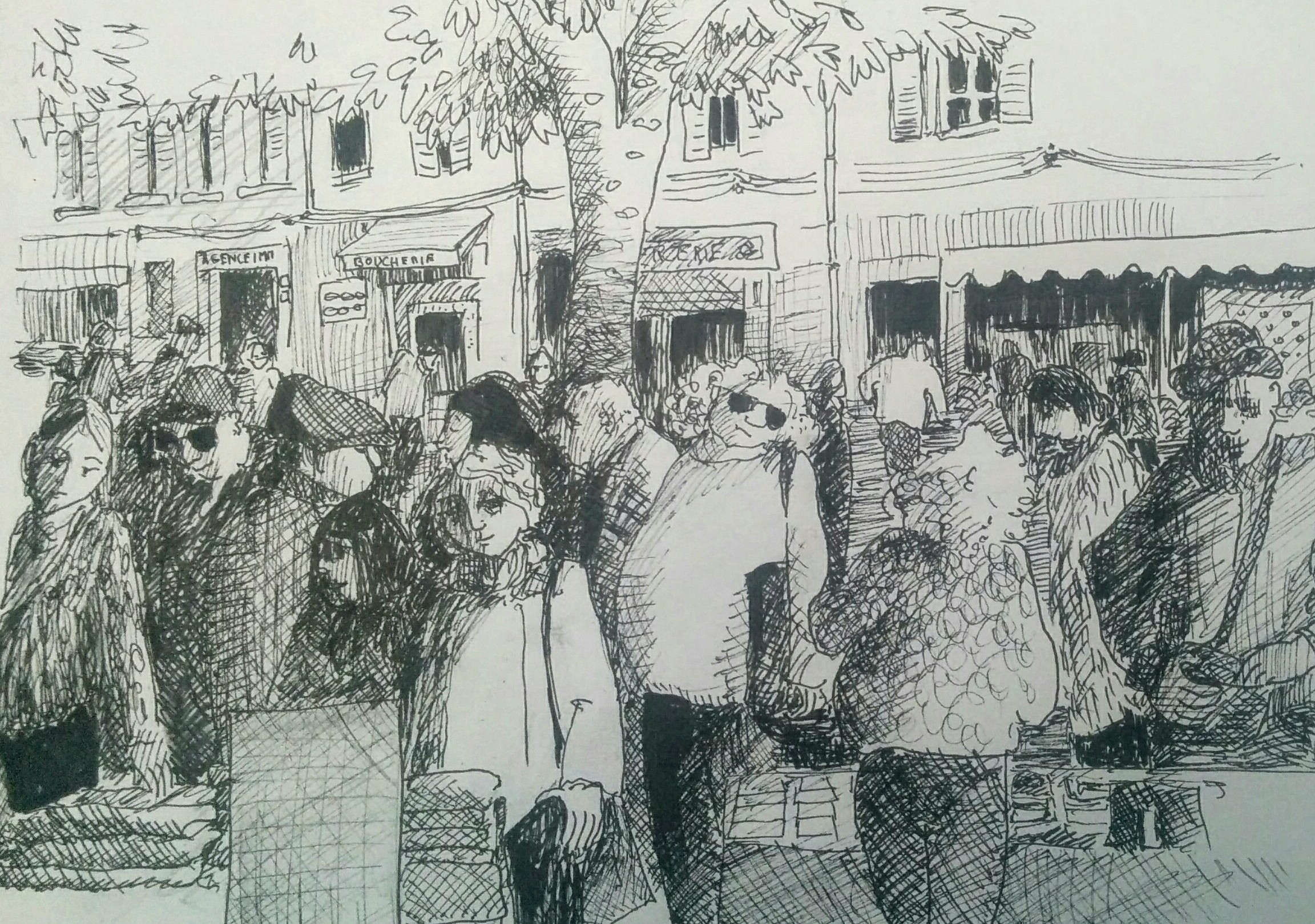 bonjour, j'ai essayé de faire un mix de croquis et du lieu où ça se passe. Erreur de proportion évidente sur le personnage de droite, perspective presque faciale et sans doute manque de contrastes dans les plans. Je pense que j'ai choisi un ensemble trop compliqué, du coup j'en ai fait deux versions après des pochades pas assez poussées. Voilà merci de me dire tous les défauts que je ne vois pas. Jamais travaillé comme ça, difficile