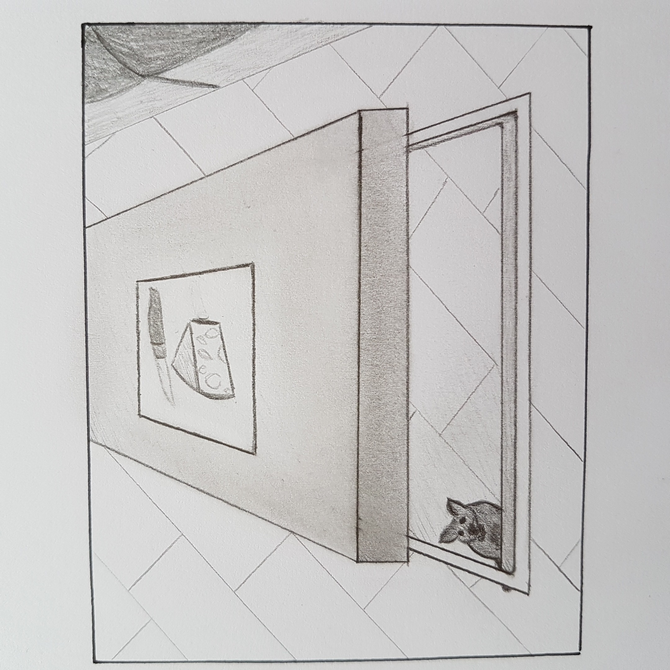 Je ne suis pas sûre de comprendre ce que ça représente exactement. C'est une trappe, avec une souris en dessous ? Pourquoi le pavage continue à l'intérieur ?