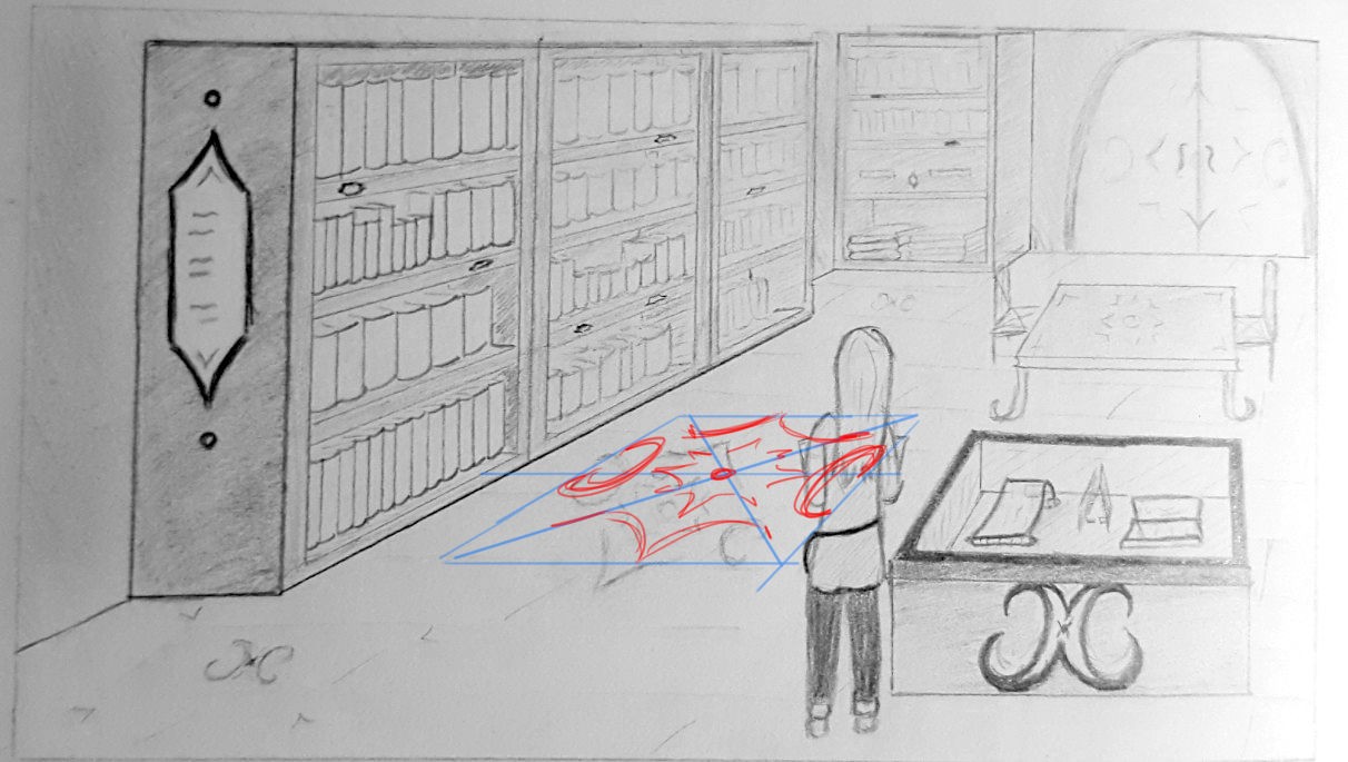 Oui je comprends ce souci, qu'on puisse se sentir un petit peu "restreint" par la perspective : Parfois on dessine quelque chose de mathématiquement juste mais concrètement le rendu est très bizarre car les limites de la feuilles font qu'on ne met pas les points de fuite aussi loin qu'il faudrait pour un rendu "naturel" (=vision humaine), ou qu'on "continue" la perspective trop loin en profondeur (créant une bibliothèque trèèèès longue par exemple :p )... C'est pour ça que limiter les déformations trop intenses et les lignes de fuite très longues peuvent aider à avoir ce rendu plus naturel, surtout pour des scènes d'intérieur. (On est plus enclin à voir de grandes déformations de perspective dans les grands espaces, comme les vues de ville par exemple).