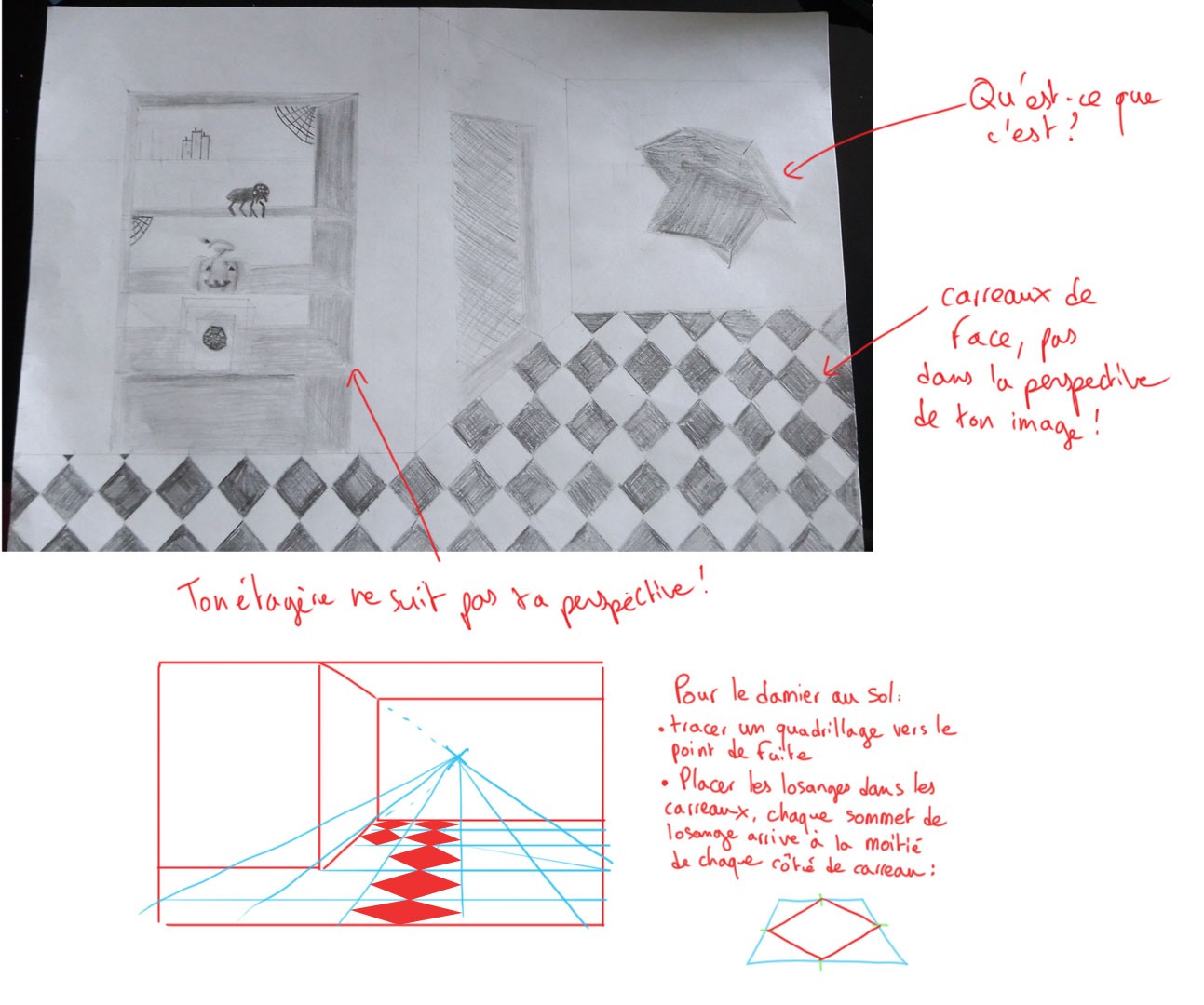 Je t'explique dans ma correction comment mettre ton carrelage en perspective.