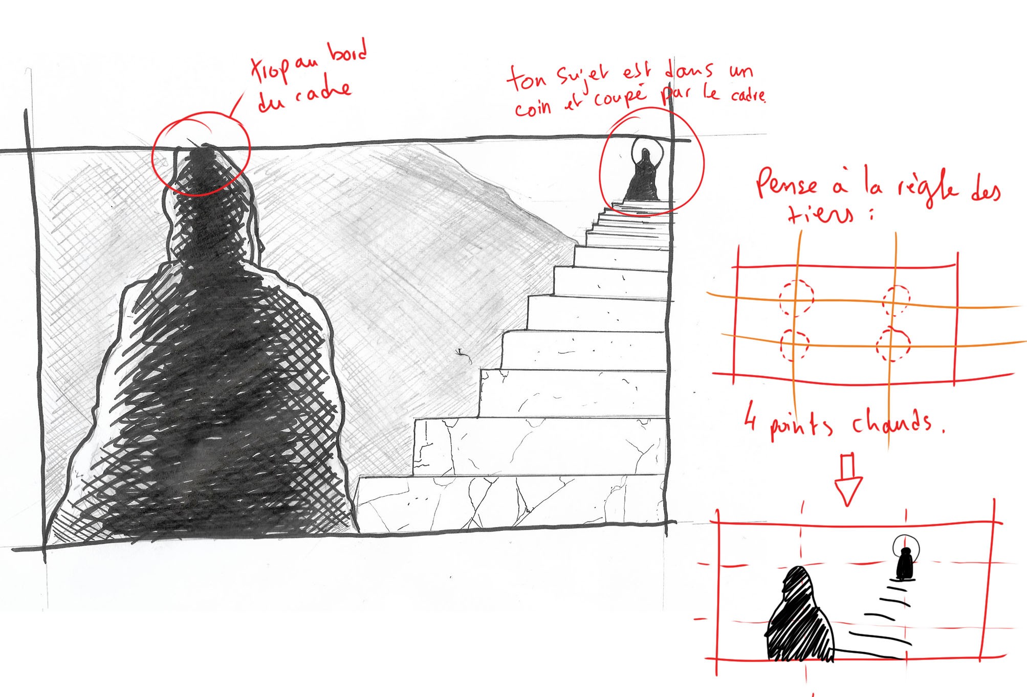 Penses à mettre tes sujets sur les lignes ou points chauds de la règle des tiers.