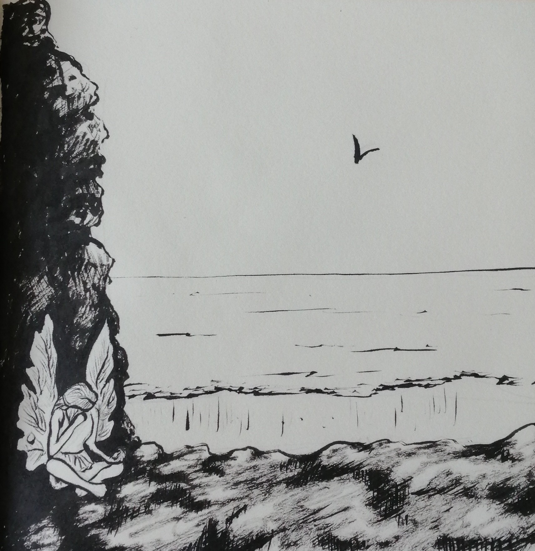 On ne comprends pas bien également si la partie en dessous de l'au est une plage? Ou le dessous d'une vague? Les traits verticaux apportent de la confusion.