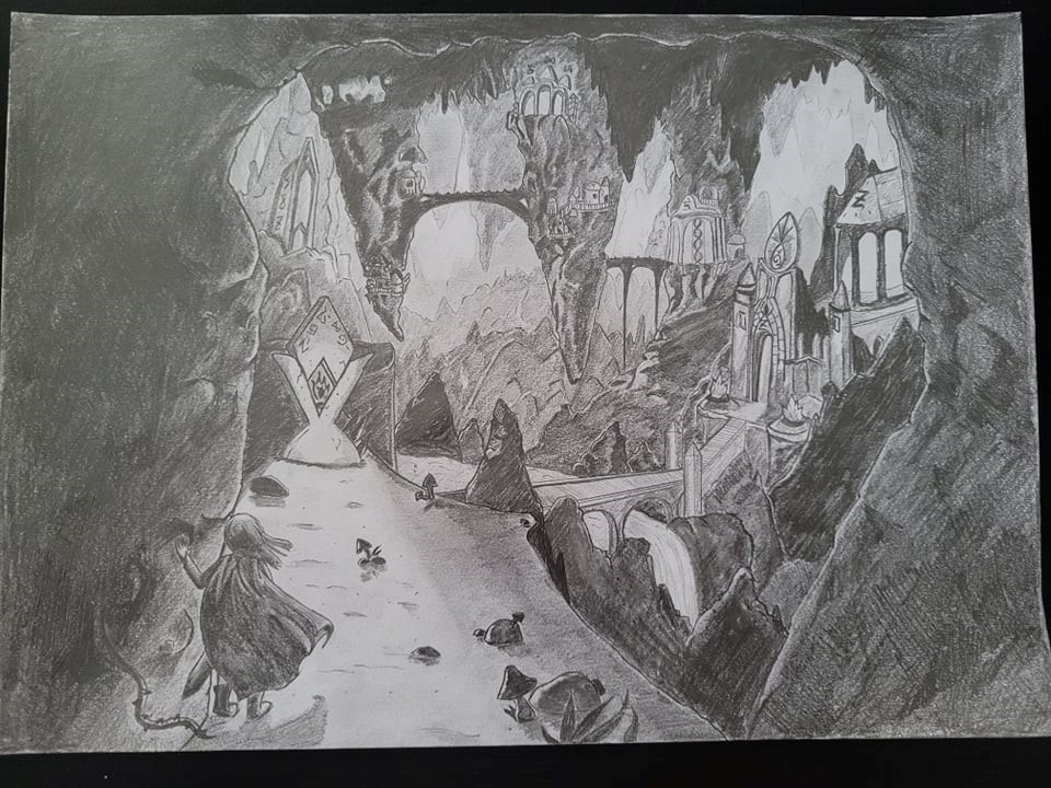 Bonjour Dayonis, Tu as fait un très joli dessin et très poussé dans les ombrages, bravo! Quelques points à améliorer cependant : ta perspective du bâtiment dans le fond, c'est pour celà qu'il est bancal :) Il n'est pas dans la meê perspective que ton premier plan. Pense à bien construire ton dessin et les éléments principaux avant d'aller dans le détail et les ombrages. Pour ce qui est de la composition, tout ton bord gauche est un peu "inutile" dans le sens que c'est un gros amat de pierres noires qui gêne un peu la lecture. Tu aurais également pu placer ton personnage principal sur un point chaud, là il est un peu trop bas dans ton image je trouve. Continue comme ça c'est super :)
